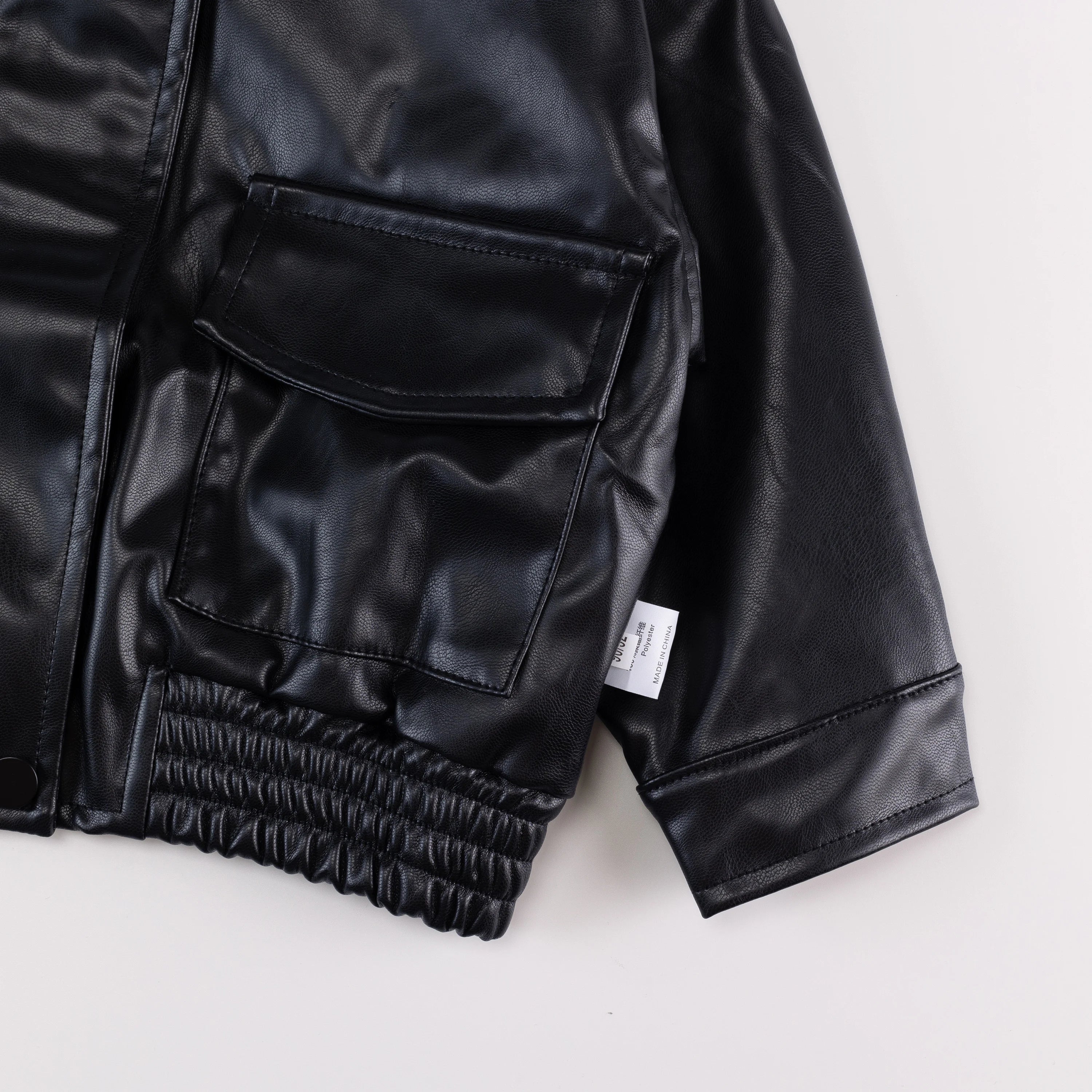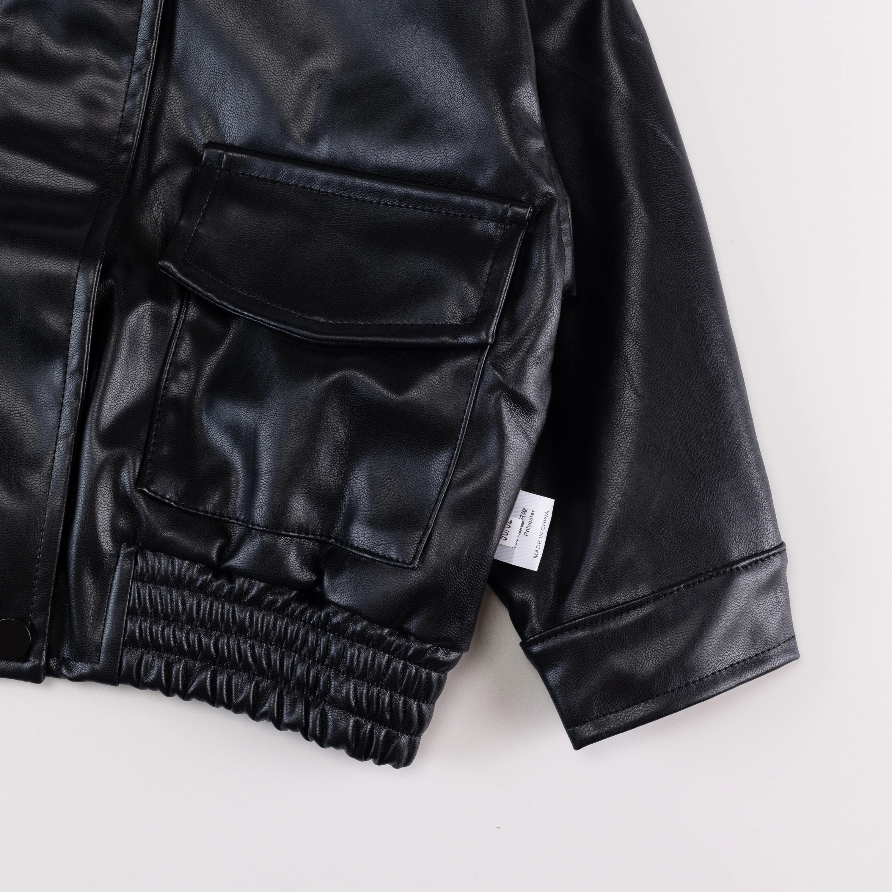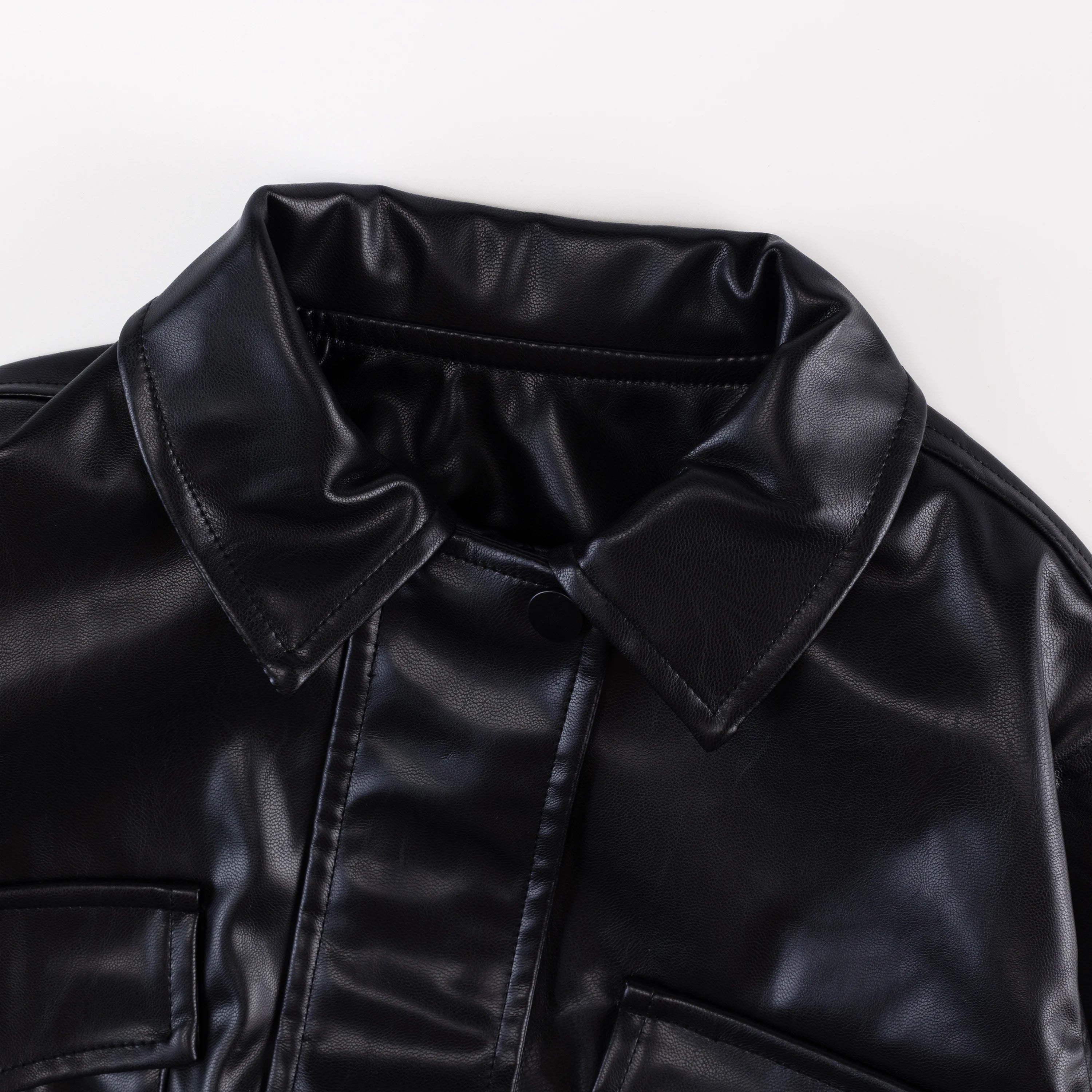 MQTIME - Autumn & Winter New Arrival Baby & Toddler Clothing 2-4 Years Old Girl Baby Flared Collar Leather Jacket
