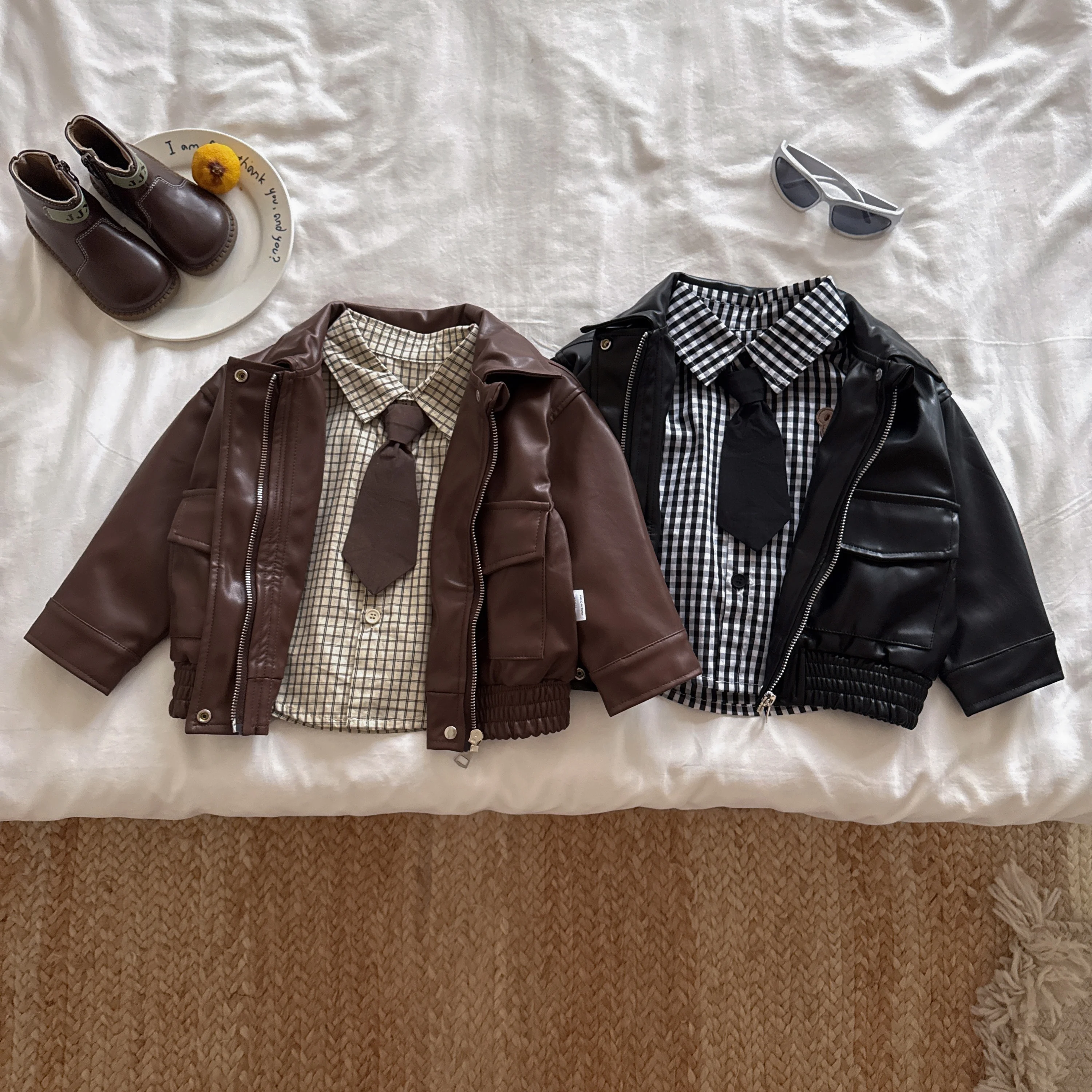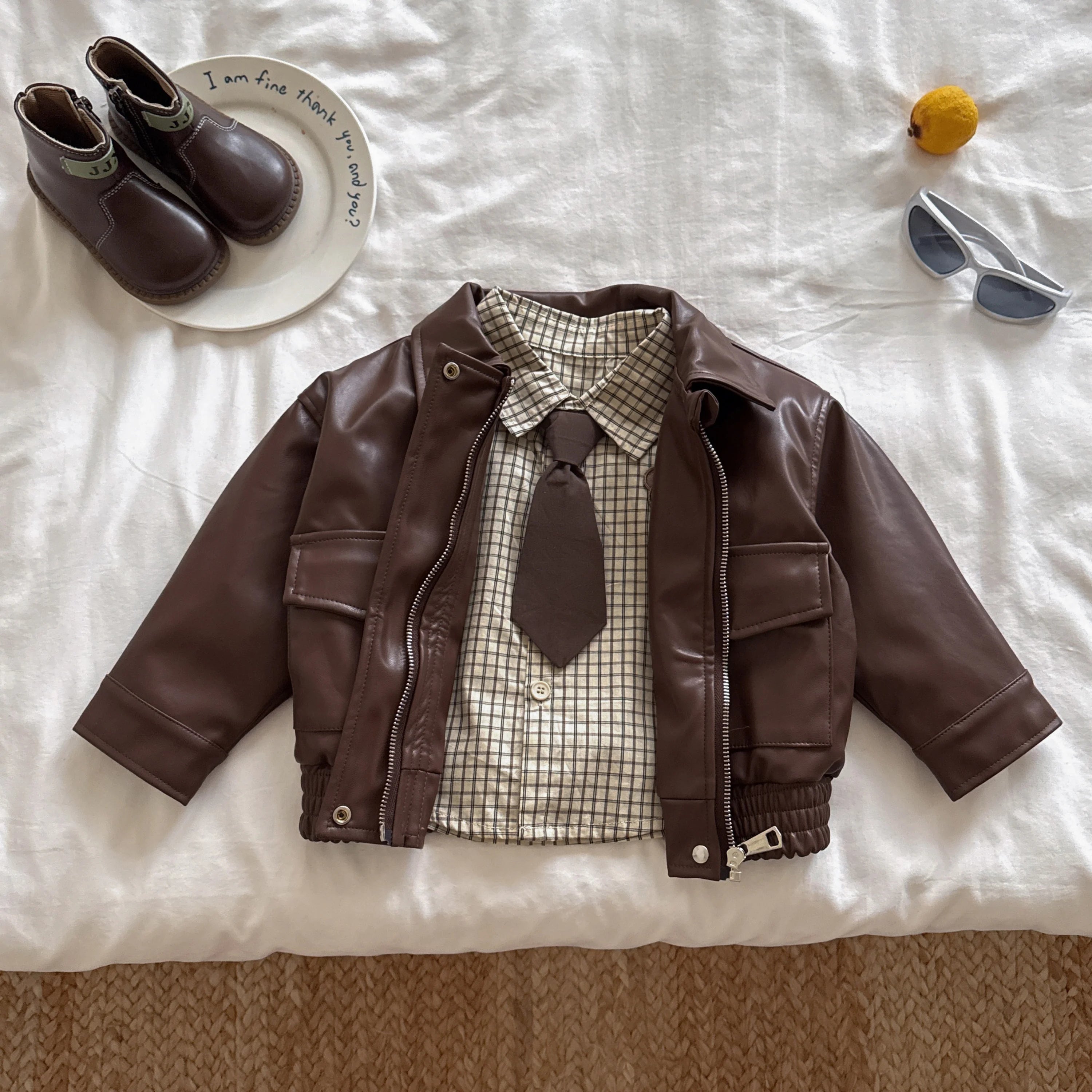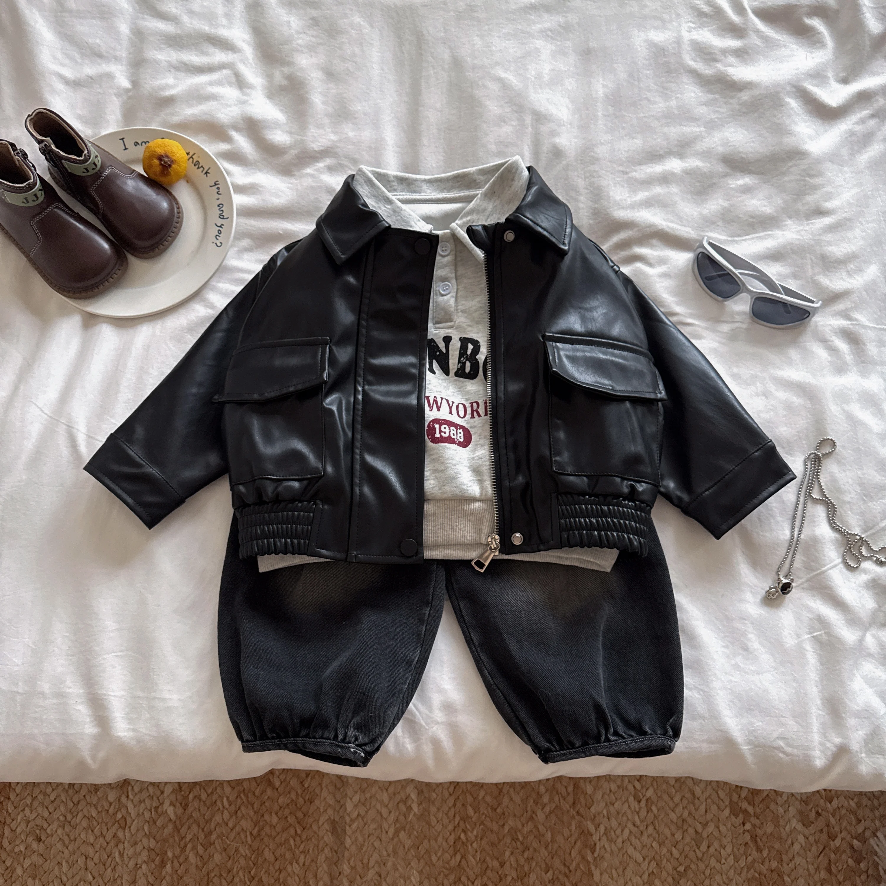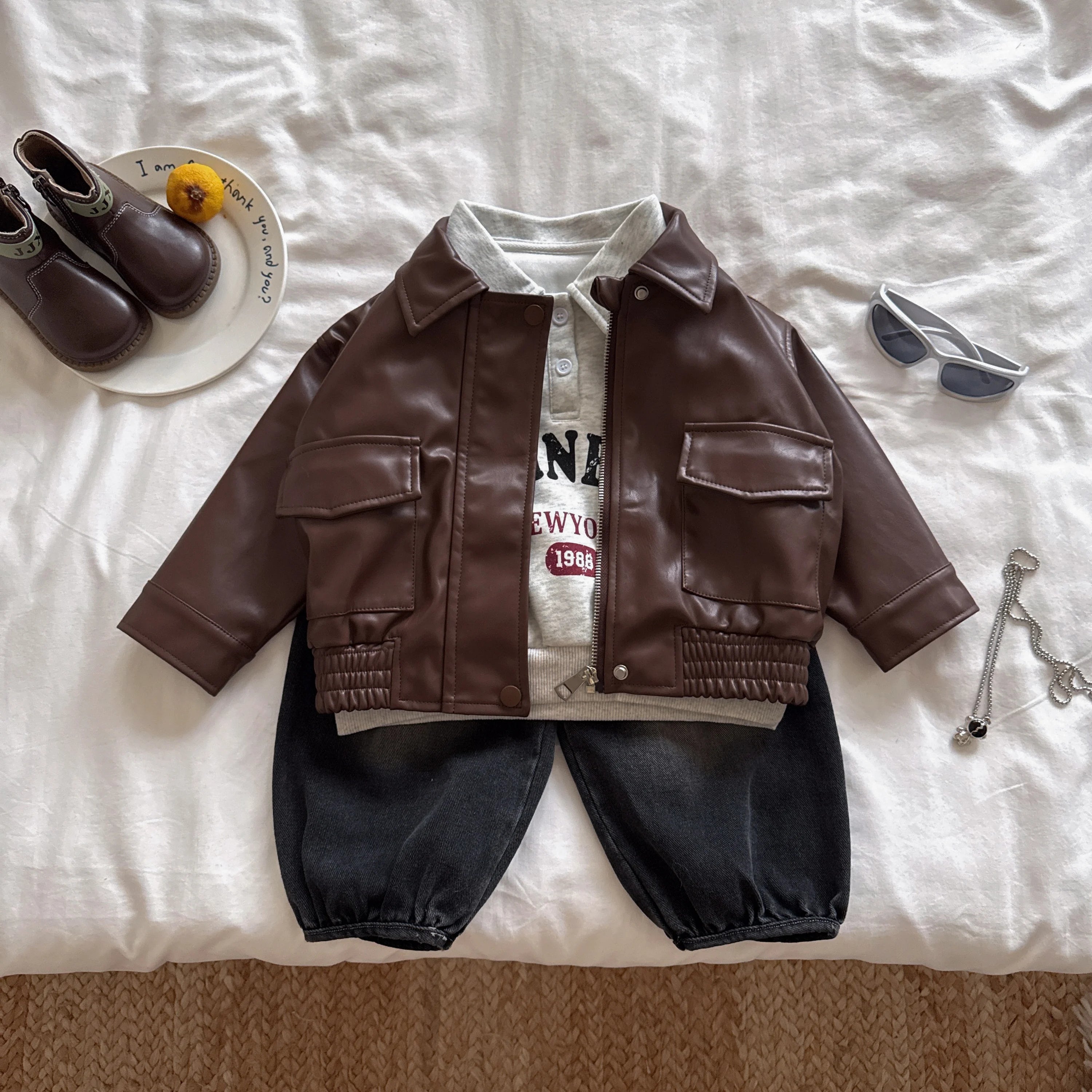 MQTIME - Autumn & Winter New Arrival Baby & Toddler Clothing 2-4 Years Old Girl Baby Flared Collar Leather Jacket