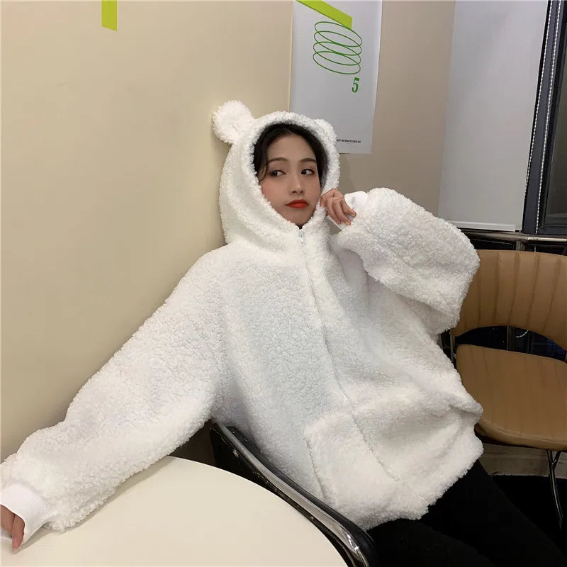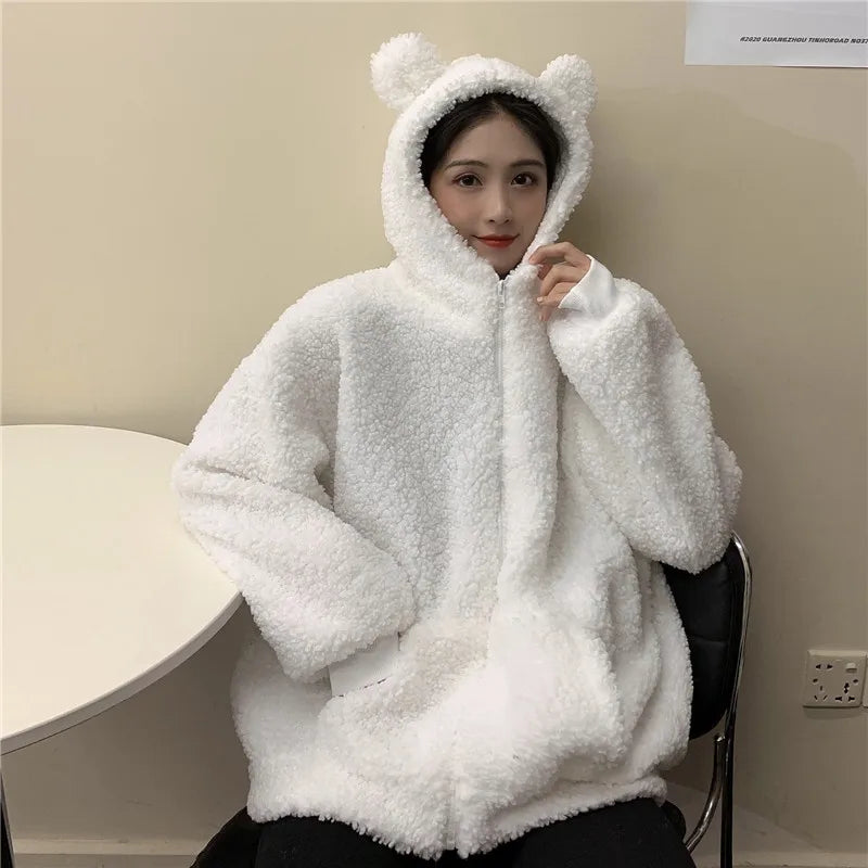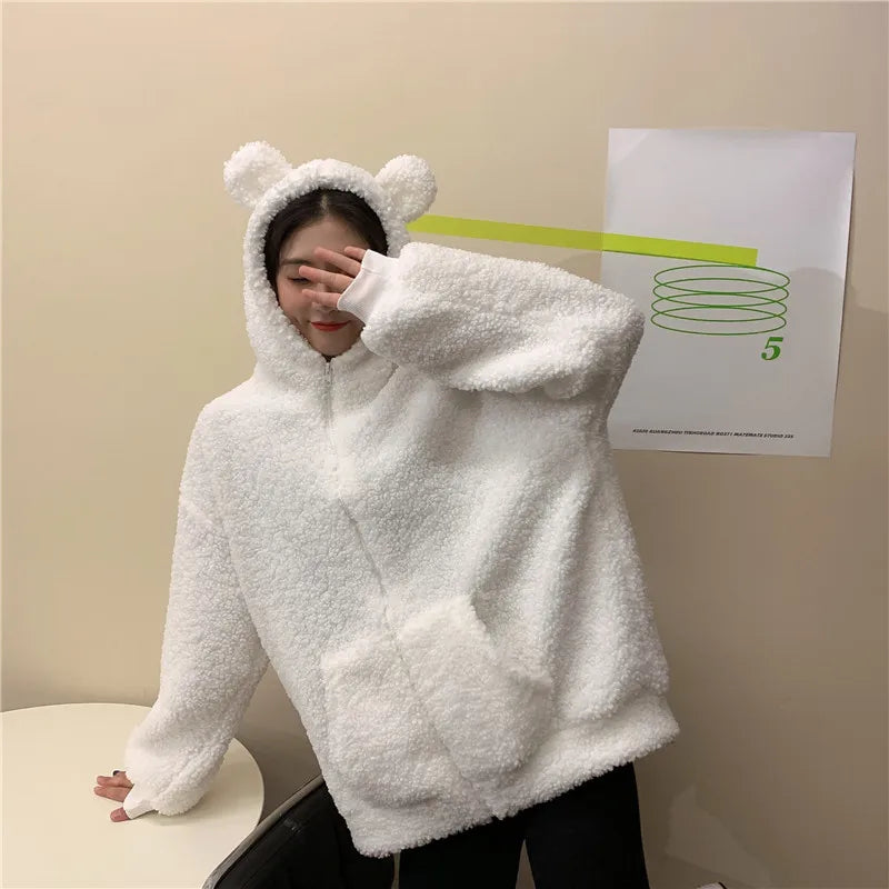 MQTIME - Autumn Winter Women Hoodies Solid Color Thicken Warm Jackets Casual Hooded Coats Zipper Sweatershirt Female Lamb Wool Outerwear