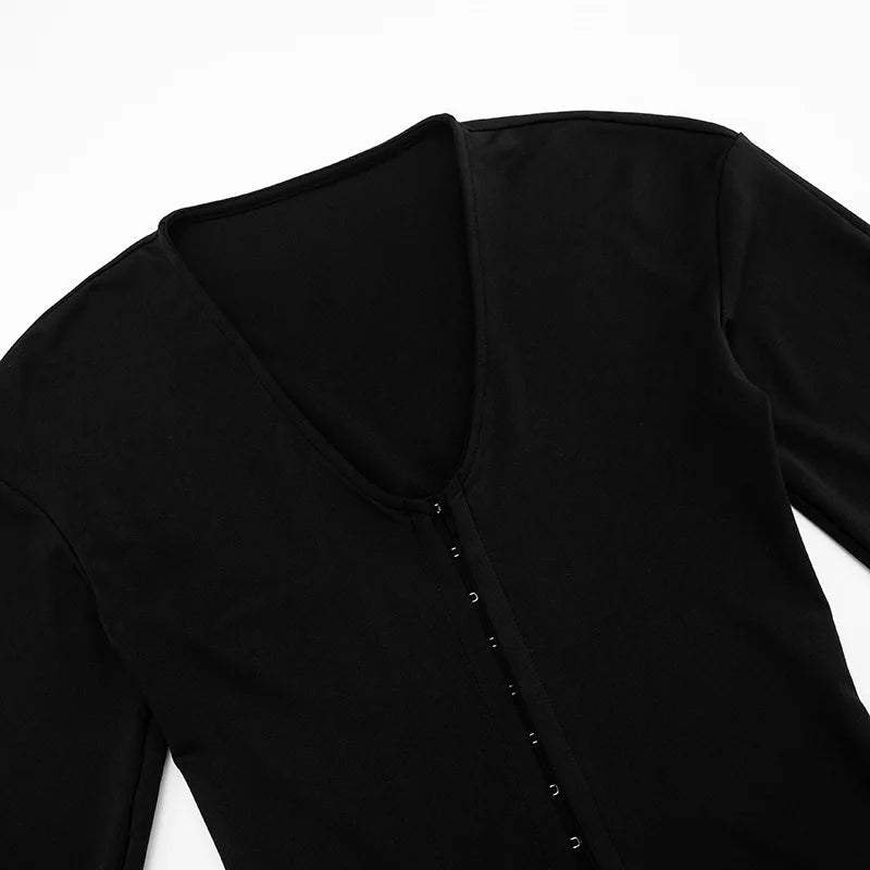 MQTIME - Autumn Women Solid 2 Piece Set Sexy V Neck Long Sleeve Metal Single Breasted Cardigan Tops + Shorts Slim Casual Suits