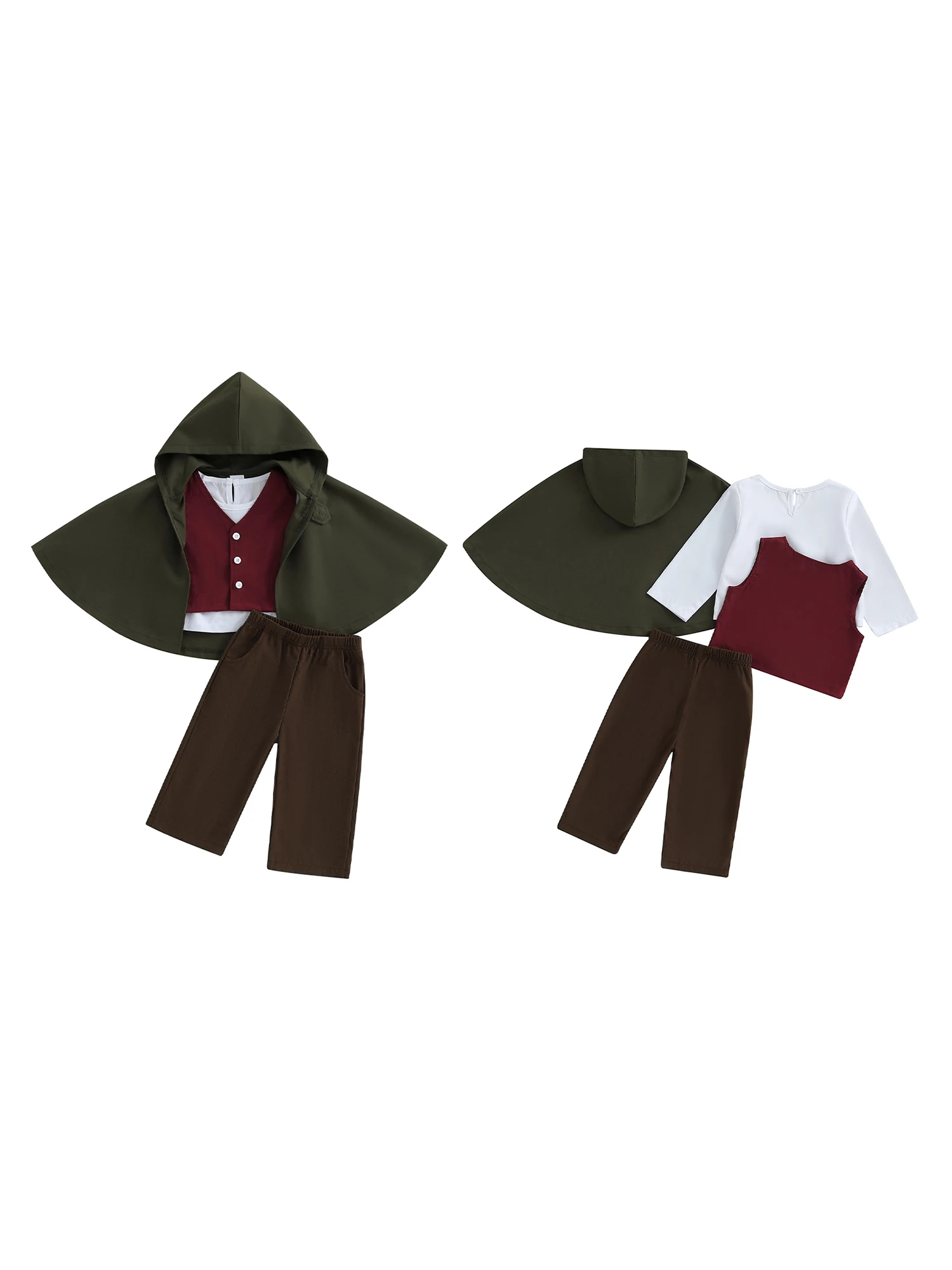 12-18M Tops Length: 12.6 Bust: 24.02 Pants Length: 18.11 Waist: 16.54 Cape Length: 14.96 Vest Bust: 24.02 Vest Length: 11.02 Advised Age: 12-18 Months