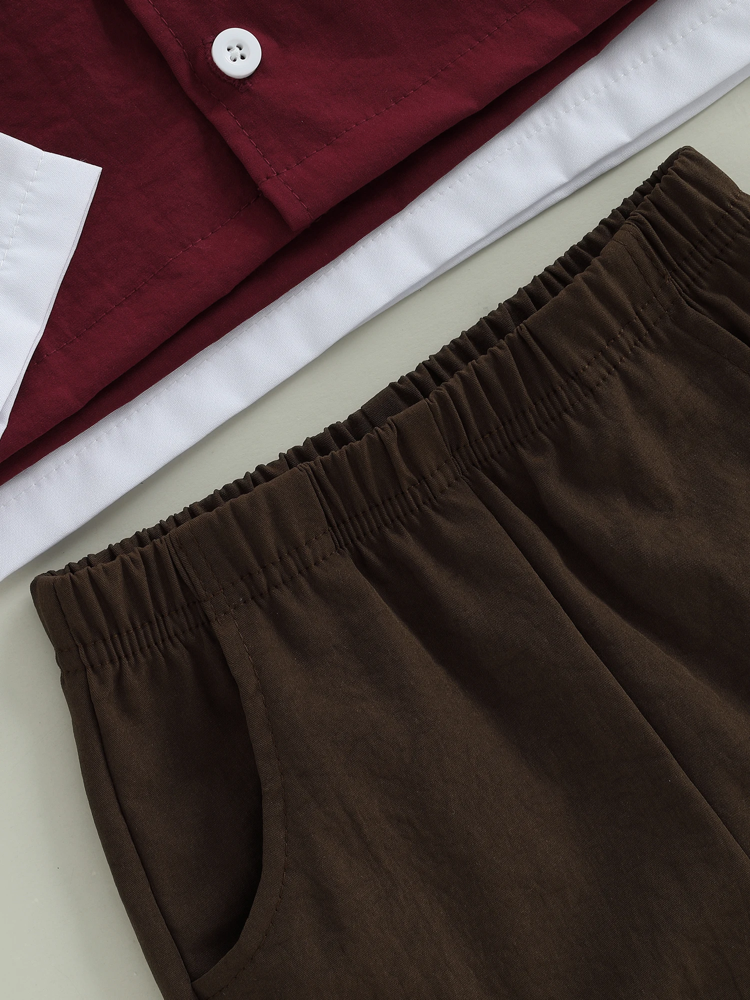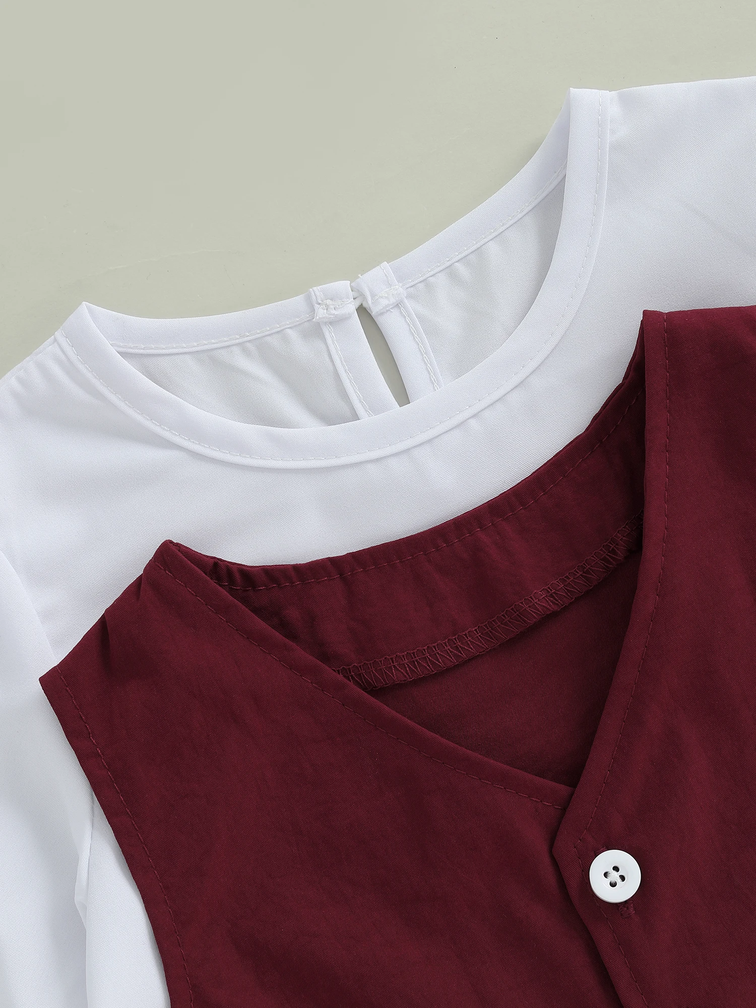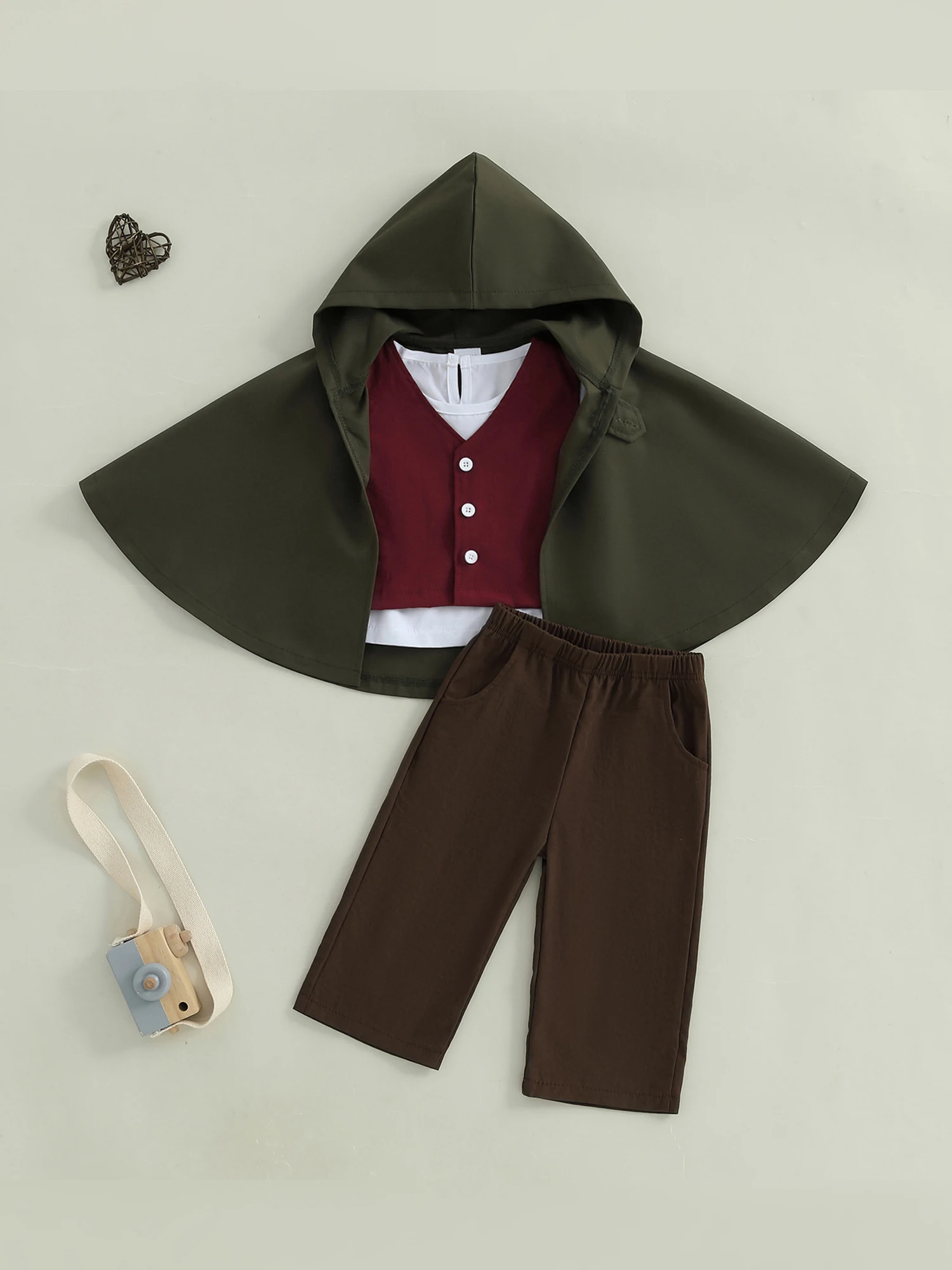 MQTIME - Baby Boy Formal Wear Set Solid Color Long Sleeve Round Neck Top Elastic Waist Pants Cape Vest 4 Piece Outfit
