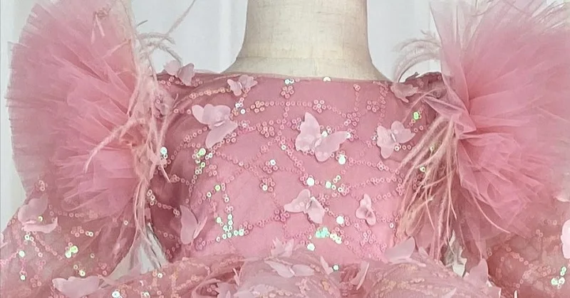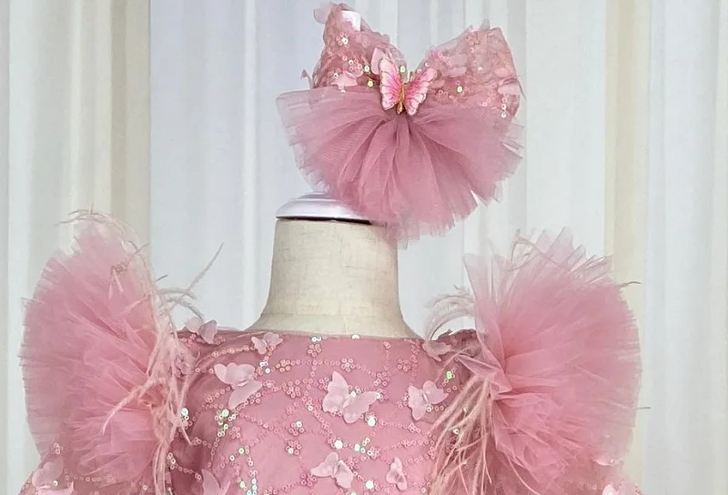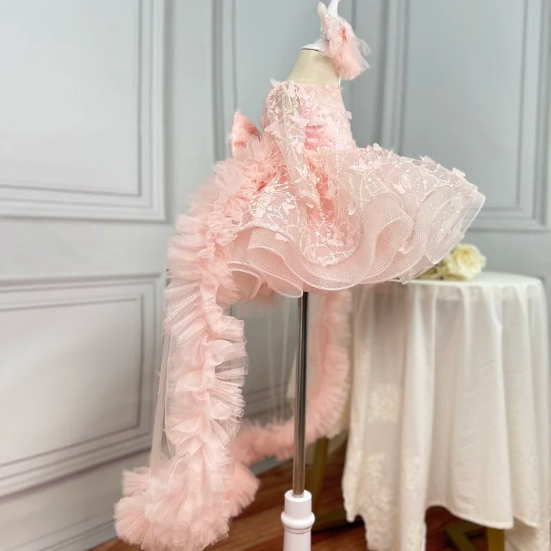 MQTIME - Baby dress first birthday party trailing bow with small flying sleeves elegant high-end mesh girl princess dress
