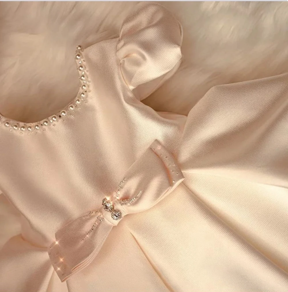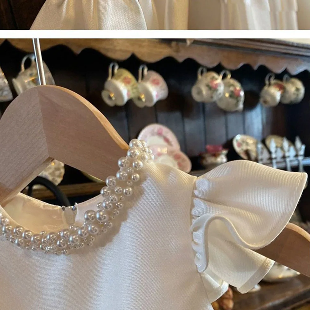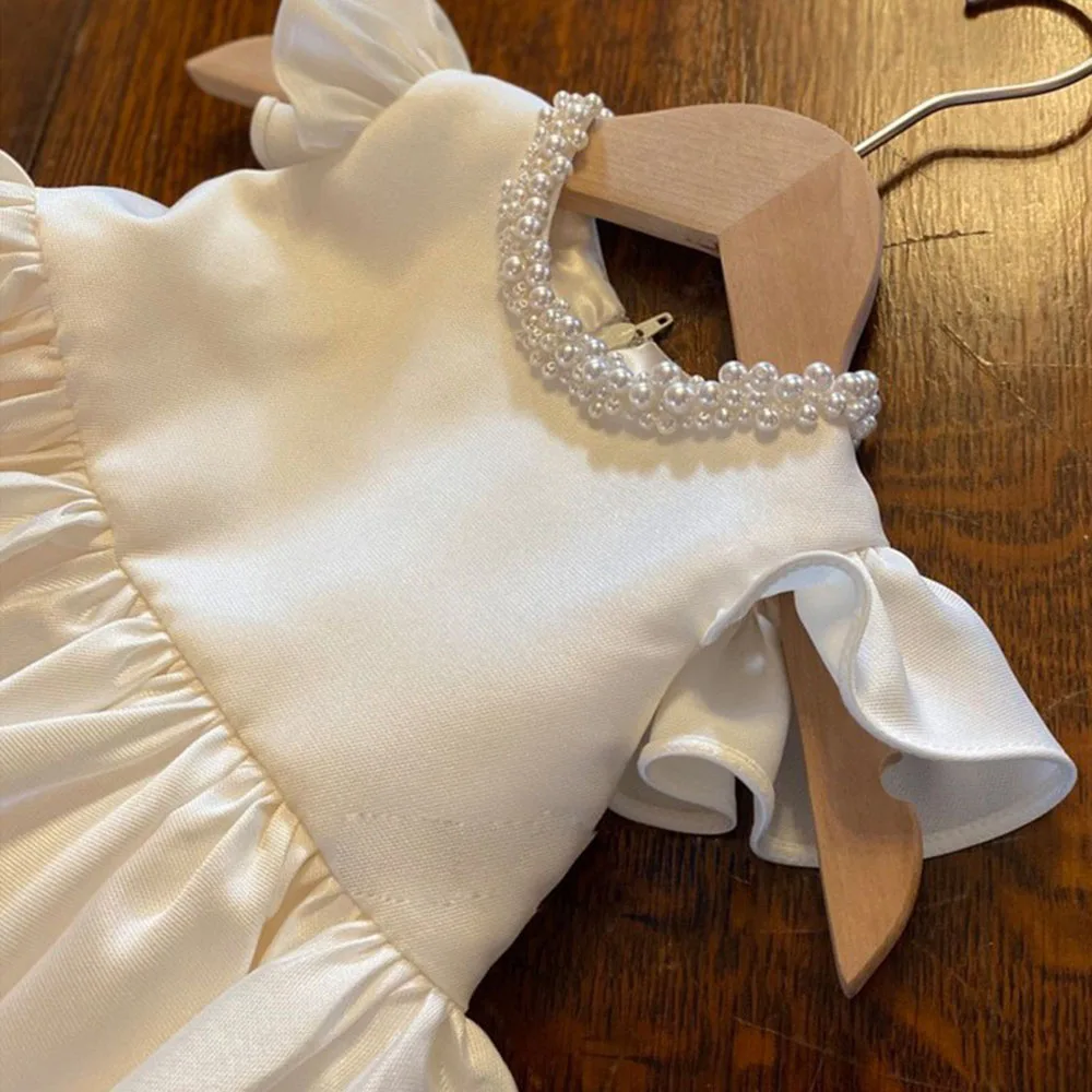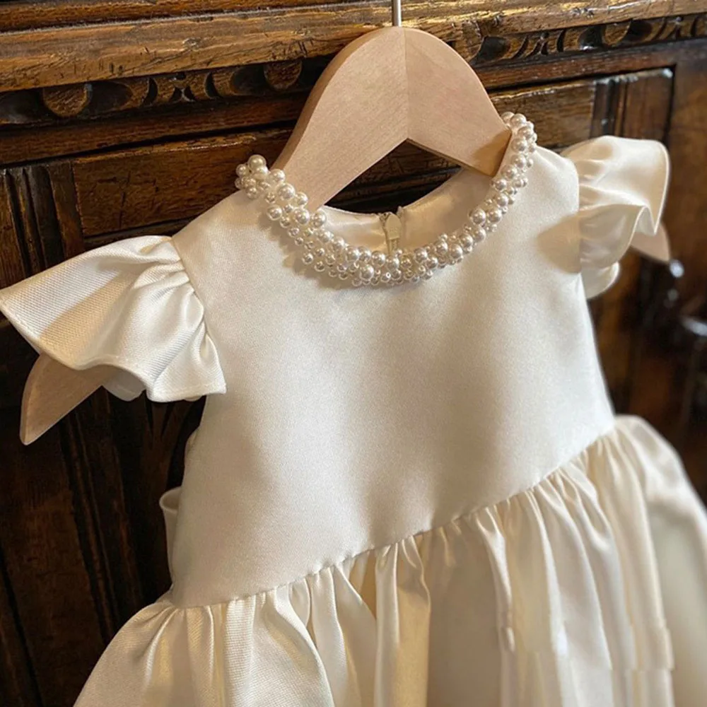 MQTIME - Baby Dresses for Wedding Pearl Necklace Girl Kid's Dress White Toddler Clothes Elegant Birthday Gown 1-8 Years
