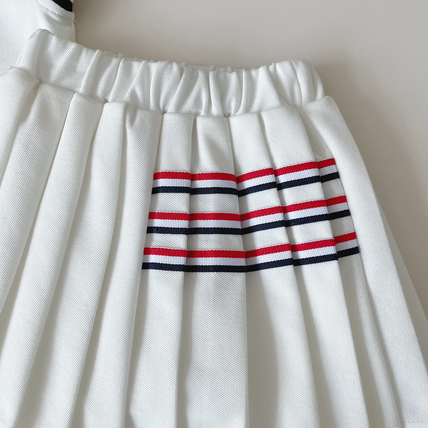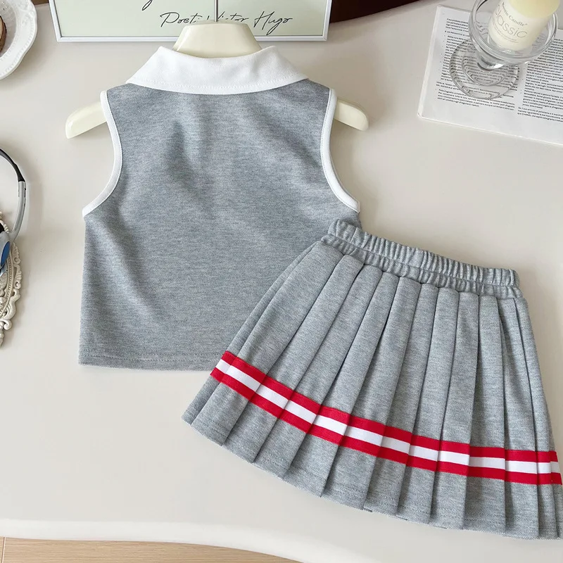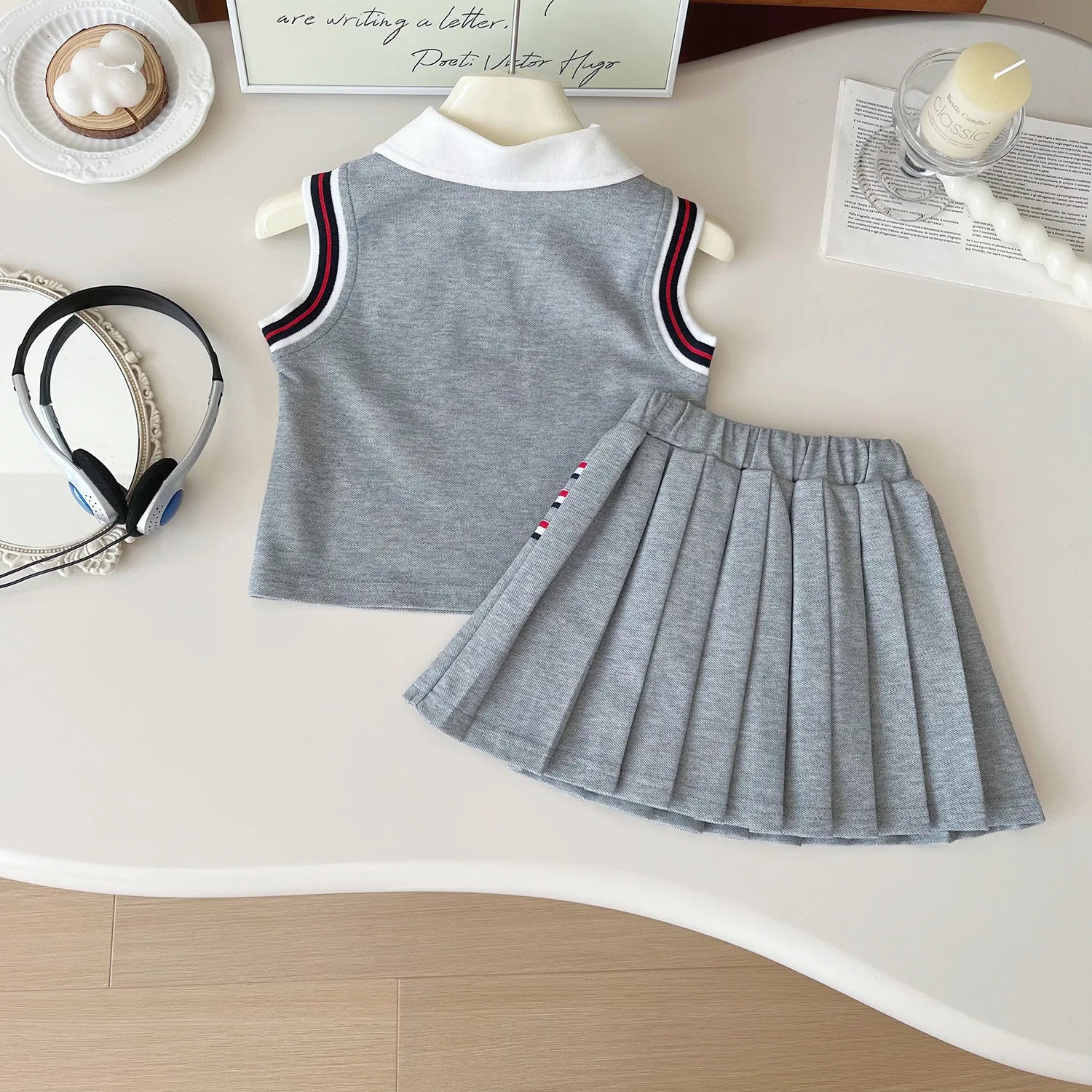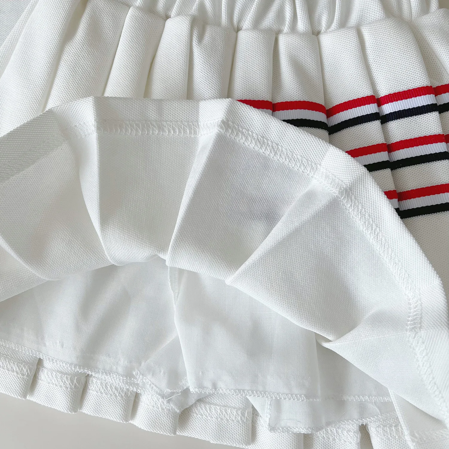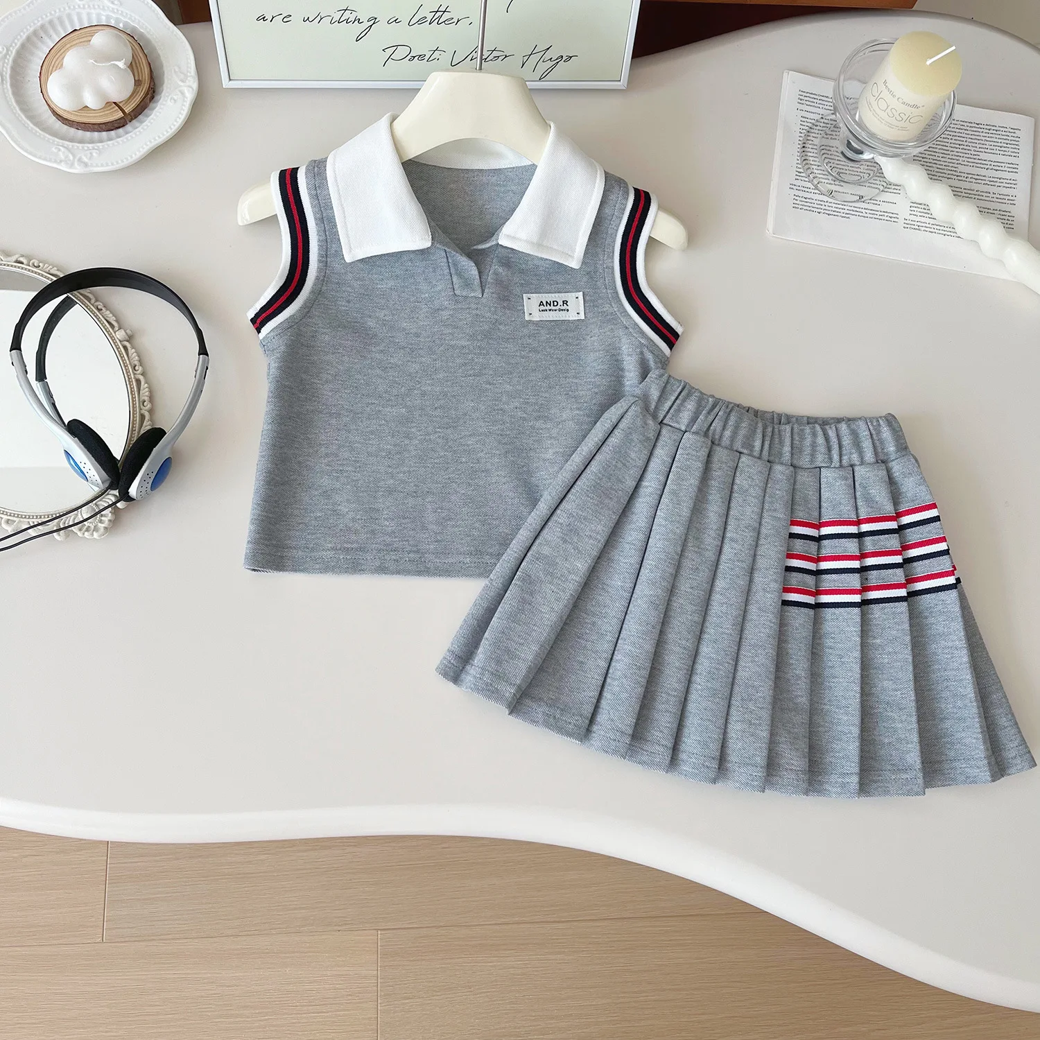 MQTIME - Baby Girl College Style Summer 2PCS Clothes Set Polo Collar Kid Girl Vest Top Set Thin Stylish Stripe Pleated Skirt Belle Outfit