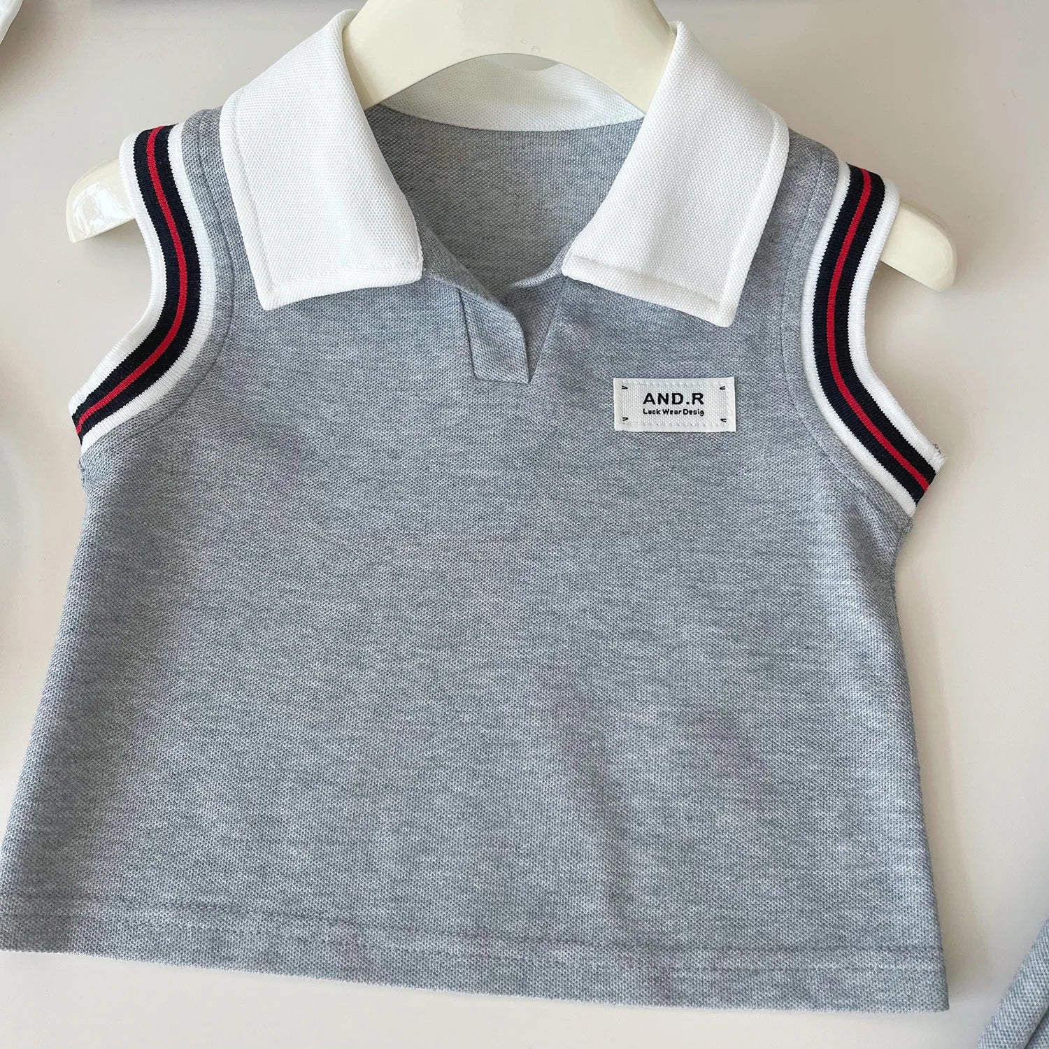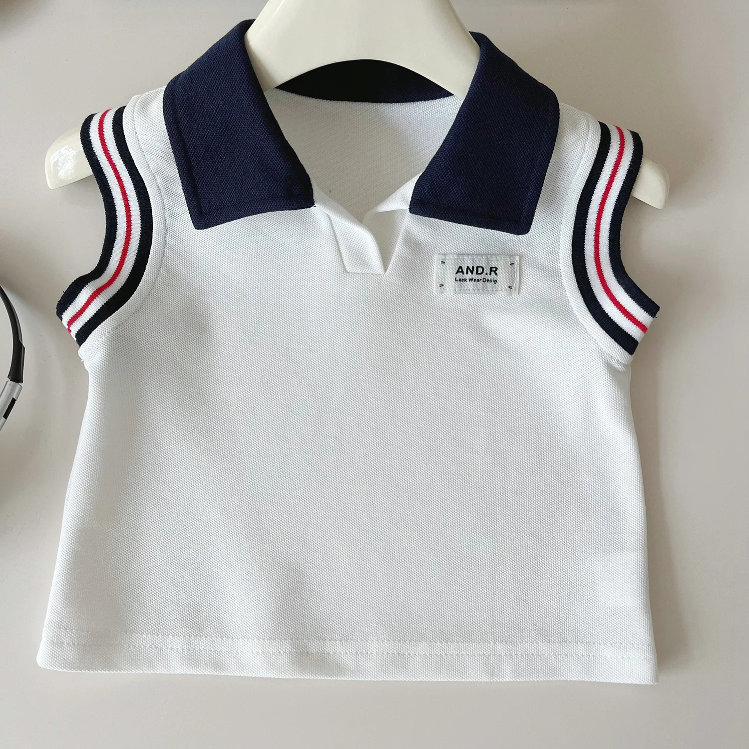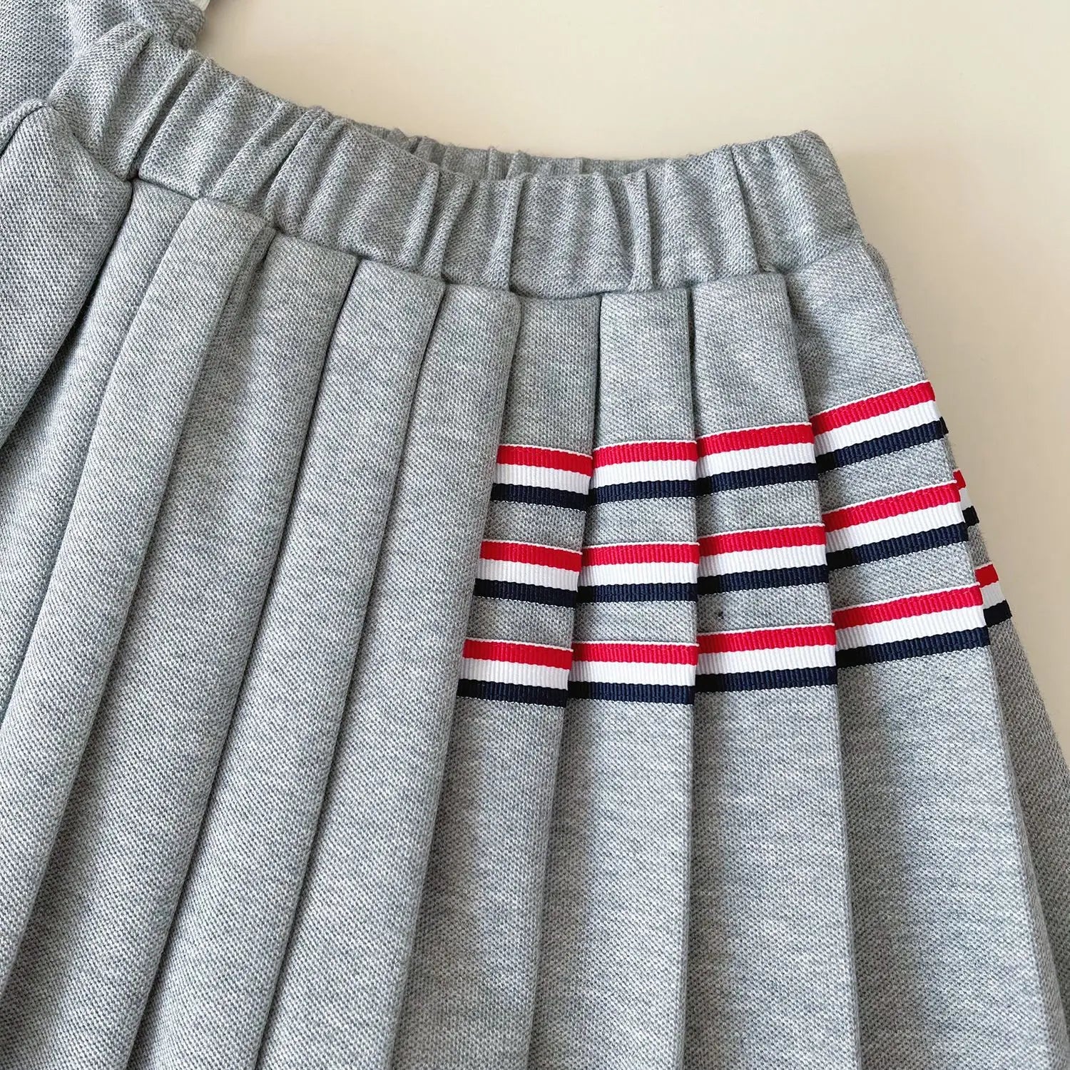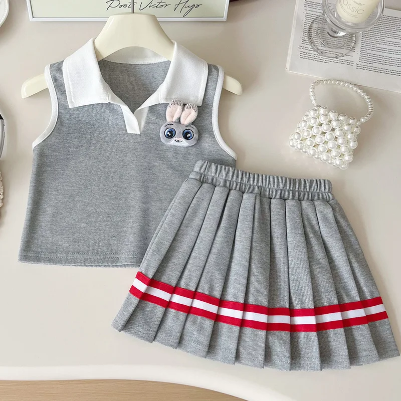 MQTIME - Baby Girl College Style Summer 2PCS Clothes Set Polo Collar Kid Girl Vest Top Set Thin Stylish Stripe Pleated Skirt Belle Outfit