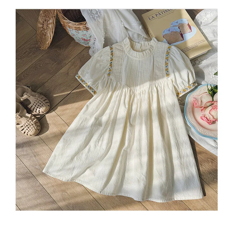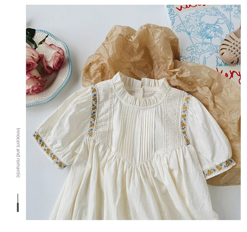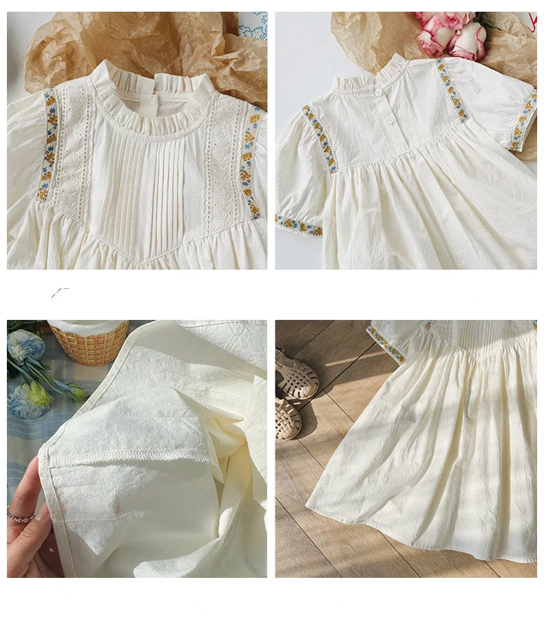 MQTIME - Baby Girl Princess Cotton Ruffled Dress Infant Toddler Child Flower Embroidery Vestido Spring Casual Baby Clothes
