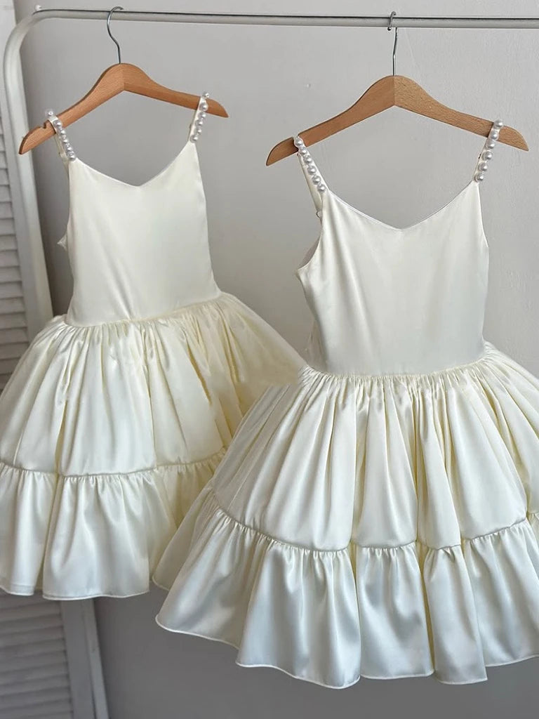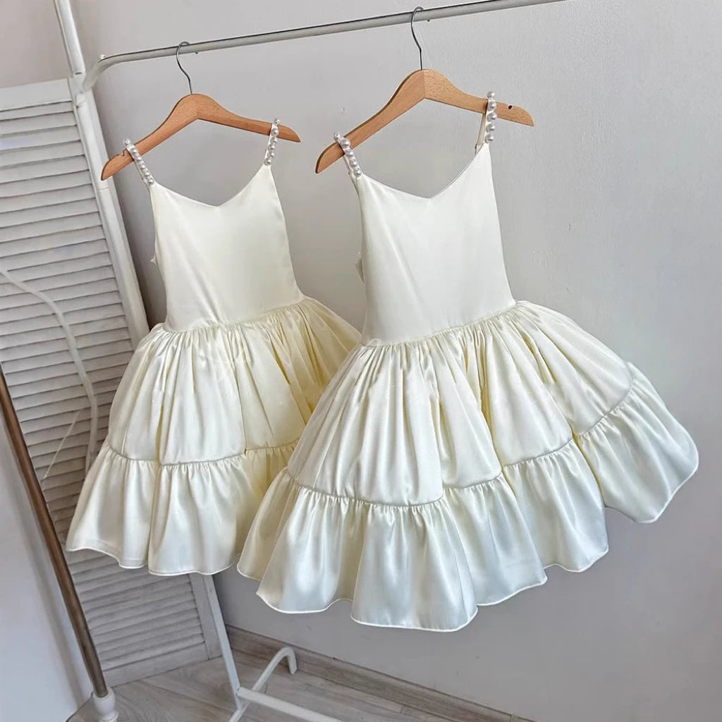 MQTIME - Baby Girl Princess Pearl Strap Dress Back Tie Toddler Child Vintage Bow Vestido Wedding Party Dance Birthday Baby Clothes 2-10Y