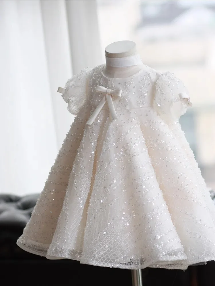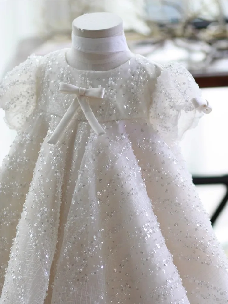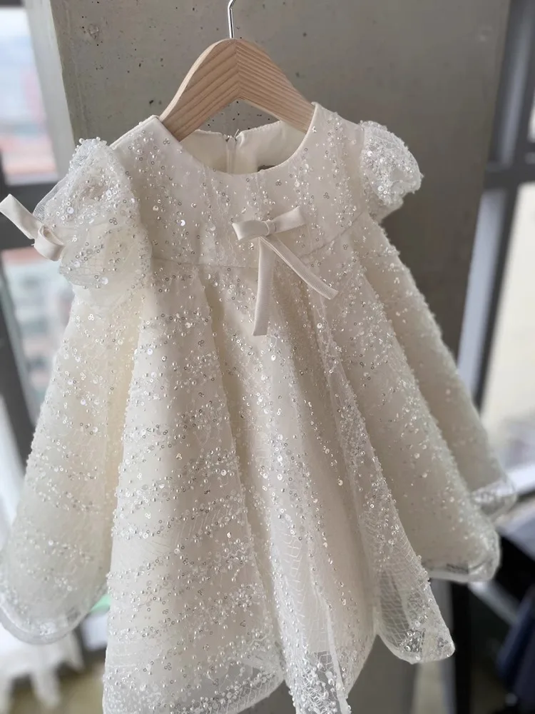MQTIME - Baby Girl Princess Sequins Tulle Dress Infant Toddler Boutique Bow Vestido Puff Sleeve Party Pageant Birthday Baby Clothes 1-7Y