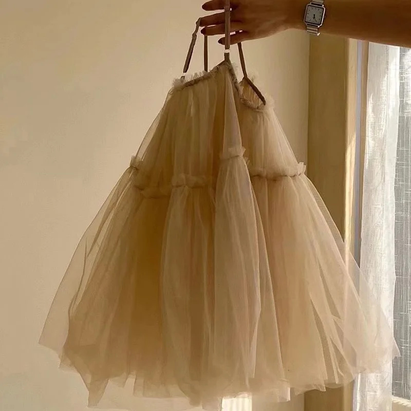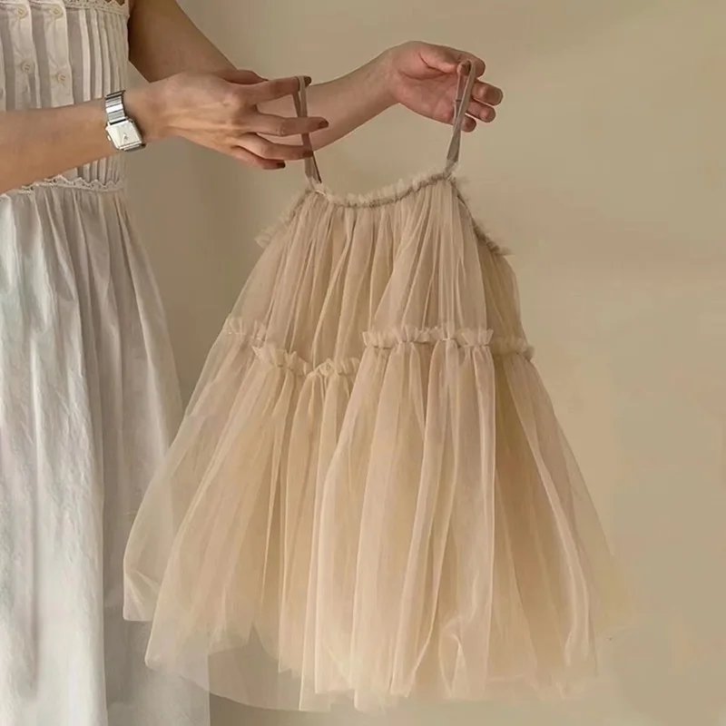 MQTIME - Baby Girl Princess Strap Tulle Dress Infant Toddler Child Summer Gauze Vestido Birthday Party Baptism Solid Baby Clothes 0-5Y