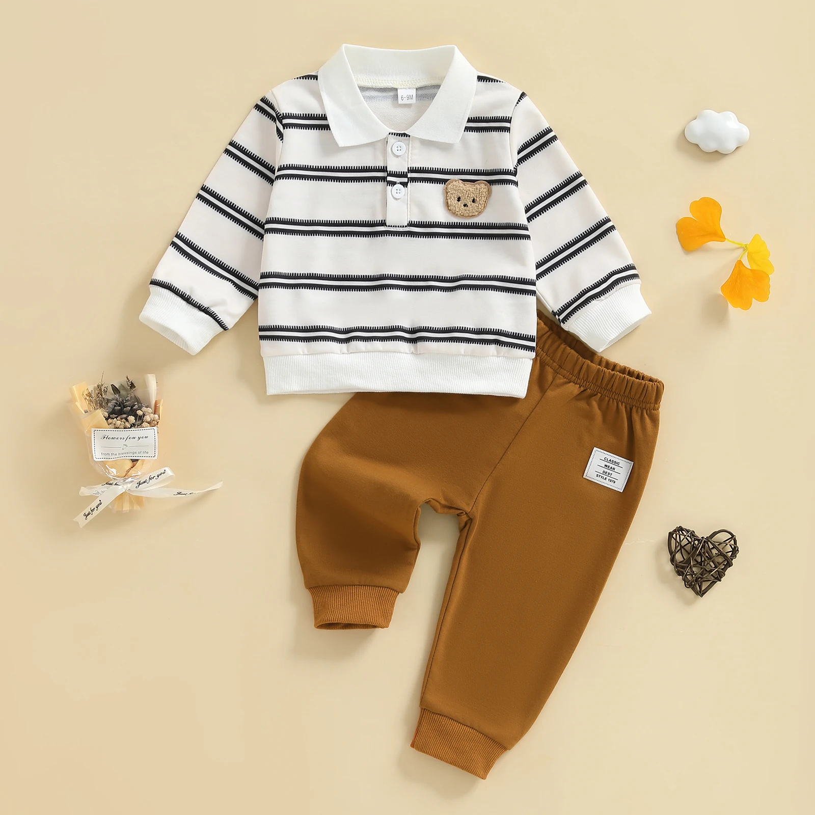 6-9M Tops Length: 12.01 Bust: 22.05 Shoulder: 9.06 Pants Length: 15.94 Waist: 15.94 Advised Age: 6-9 Months
