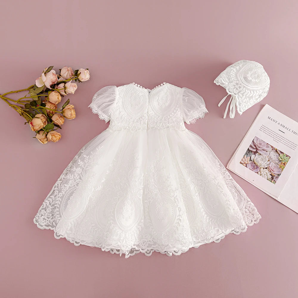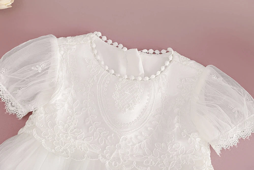 MQTIME - Baby Girls Elegant Embroidery Long White Christening Dress with Banner Toddler Birthday Party Gown 1 2 Years