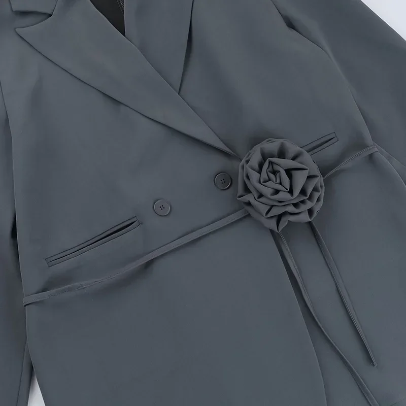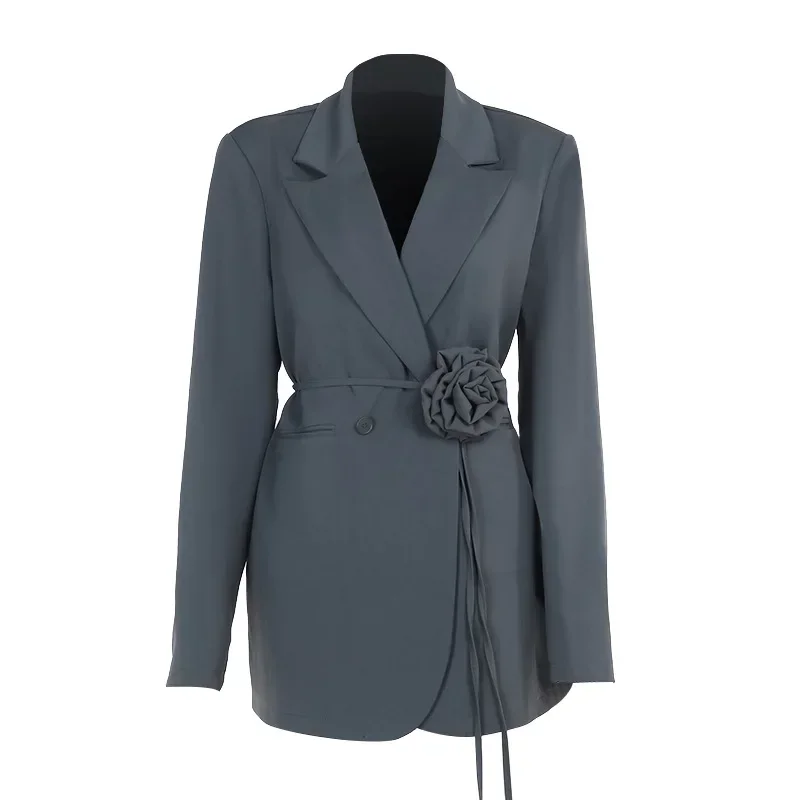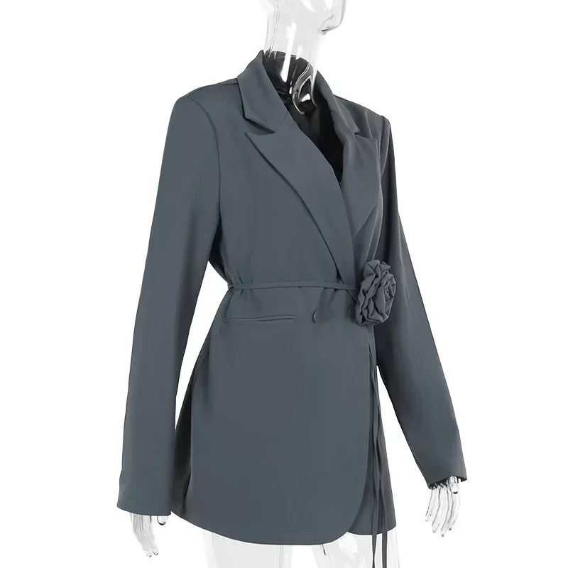 MQTIME - Bandage Flower Blazer Dress Female Fashion Lace Up Loose Casual Street Cardigan Blazers 2024 Autumn Vintage New Dress