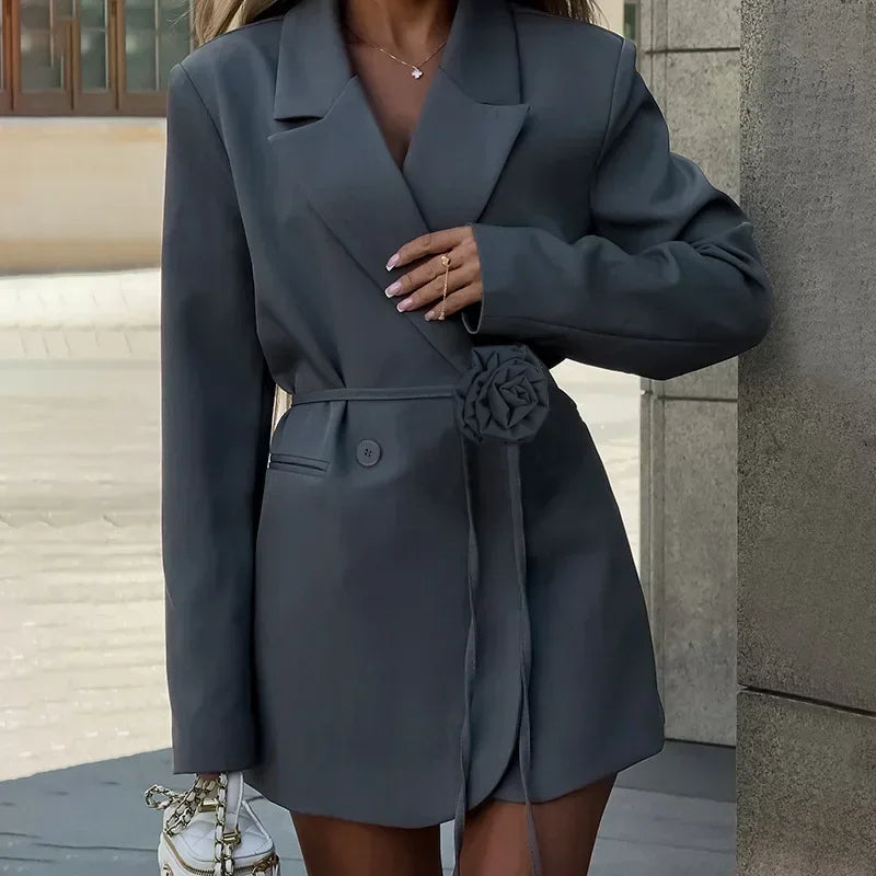 MQTIME  -  Bandage Flower Blazer Dress Female Fashion Lace Up Loose Casual Street Cardigan Blazers 2024 Autumn Vintage New Dress