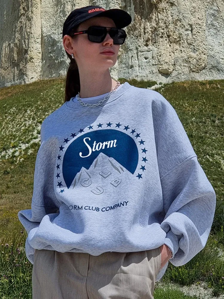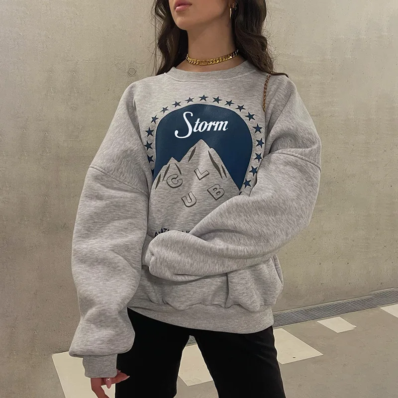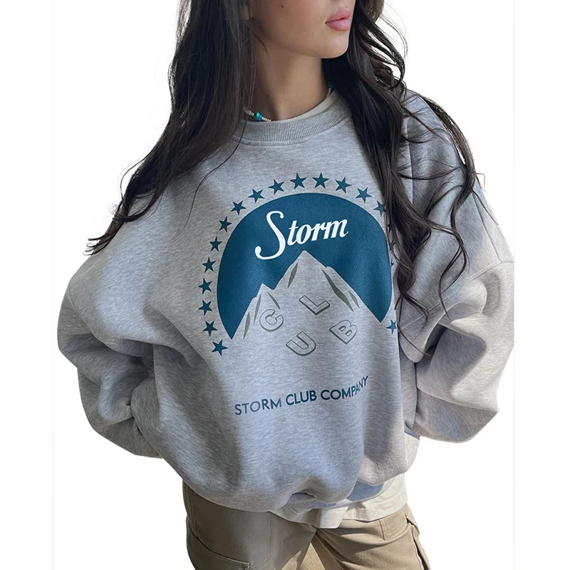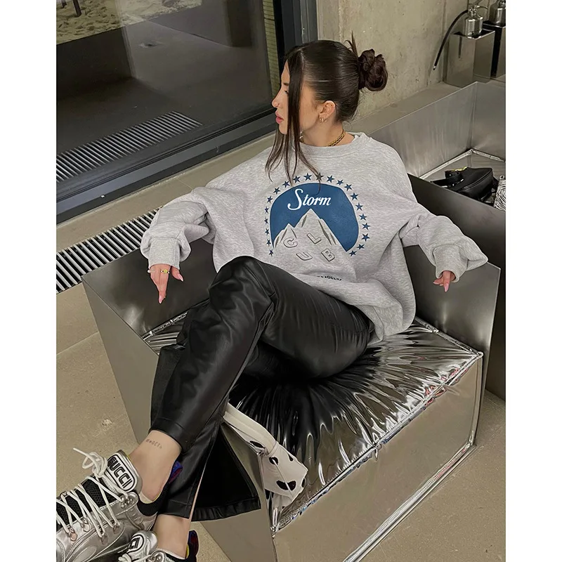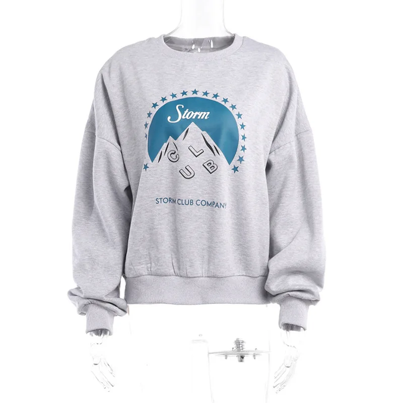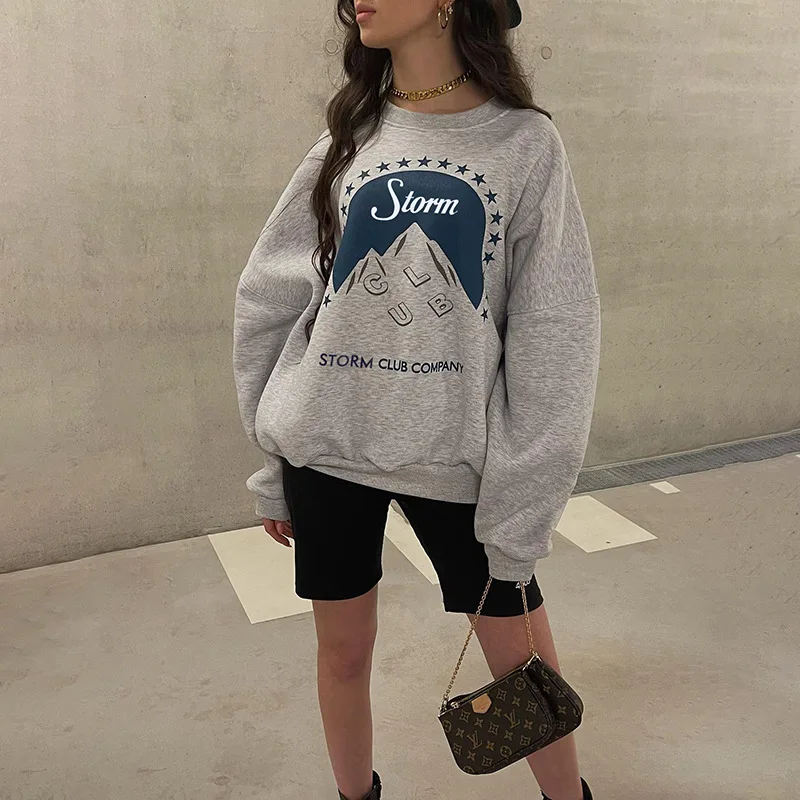 MQTIME - Basic Letter Print O Neck Y2K Long Sleeve Loose Women'S Sweatshirt Streetwear Wholesale Club Sporty Casual Clothing