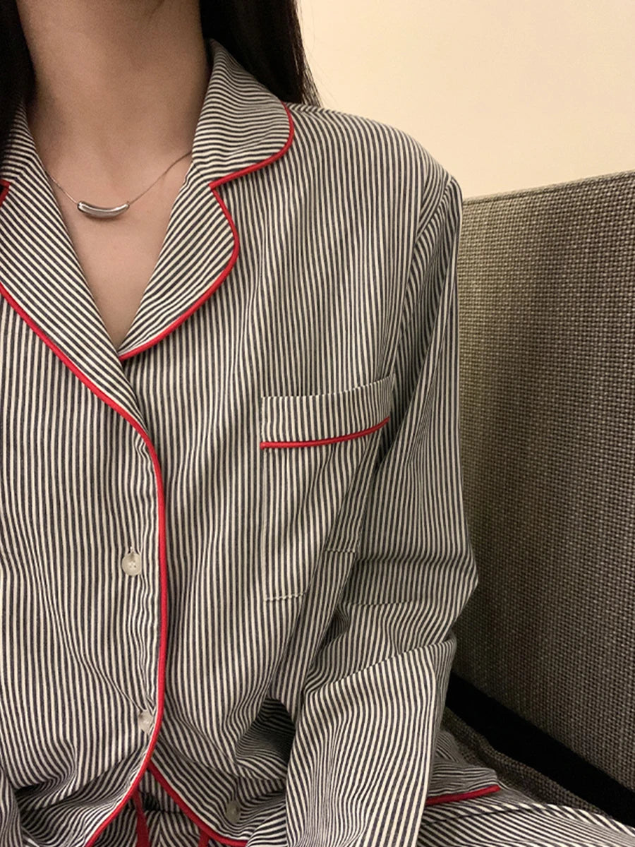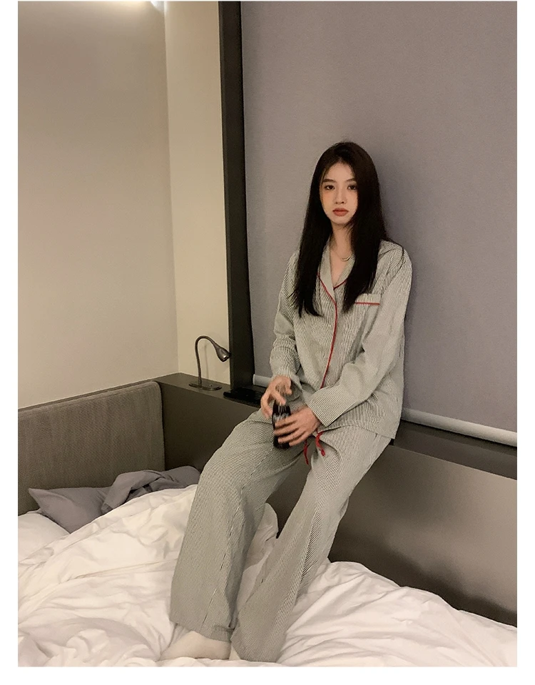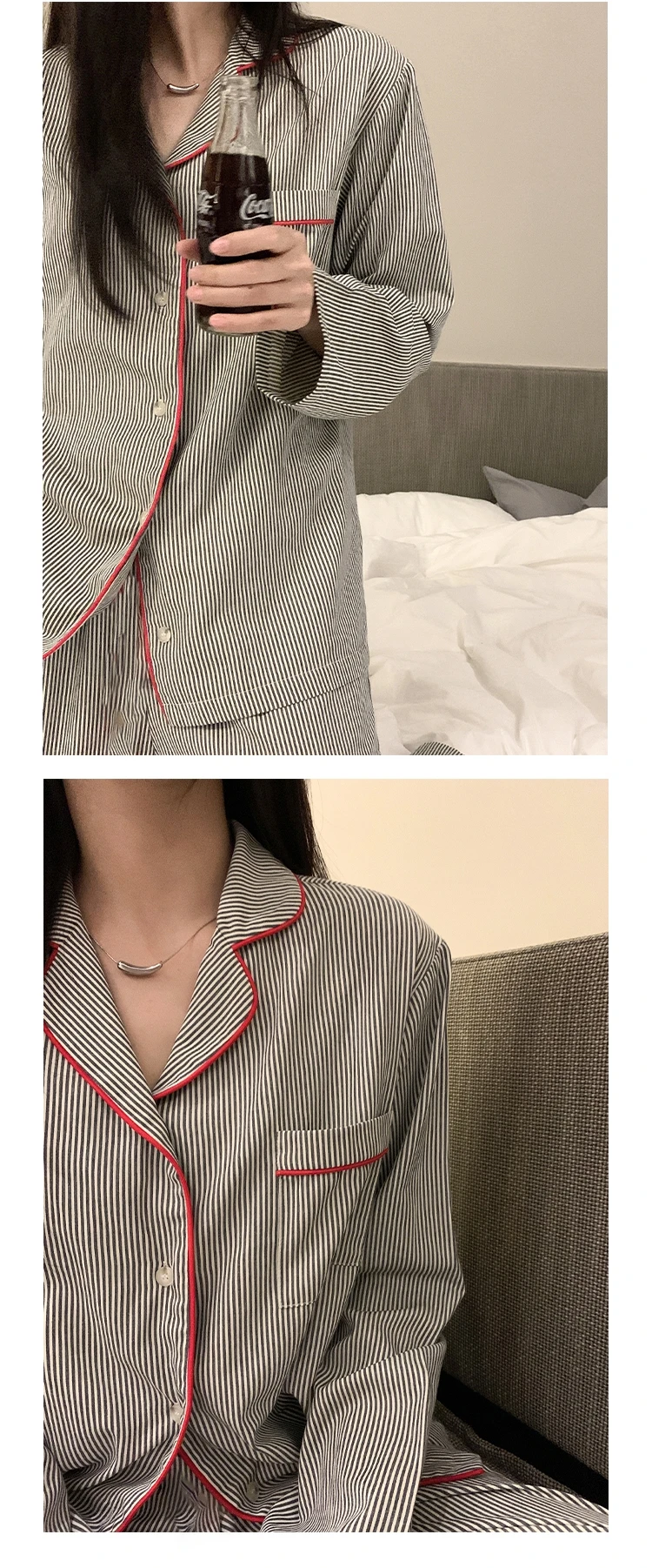 MQTIME - Bla Stripe Spwear Women's Long Sve Home Clothes Spring Autumn New Sle Internet Celebri Sle Girl Outdoor Wear