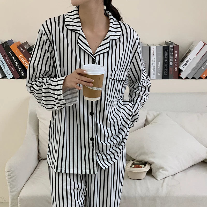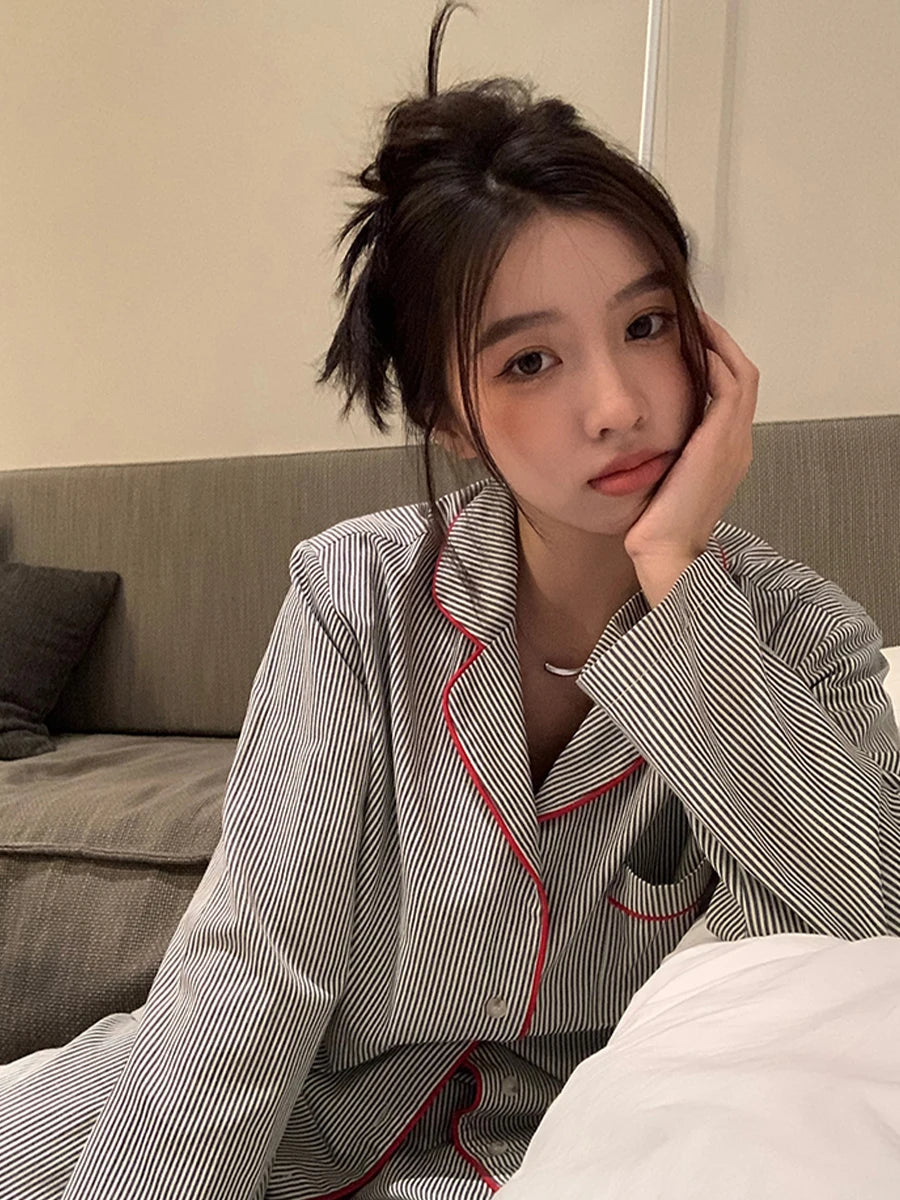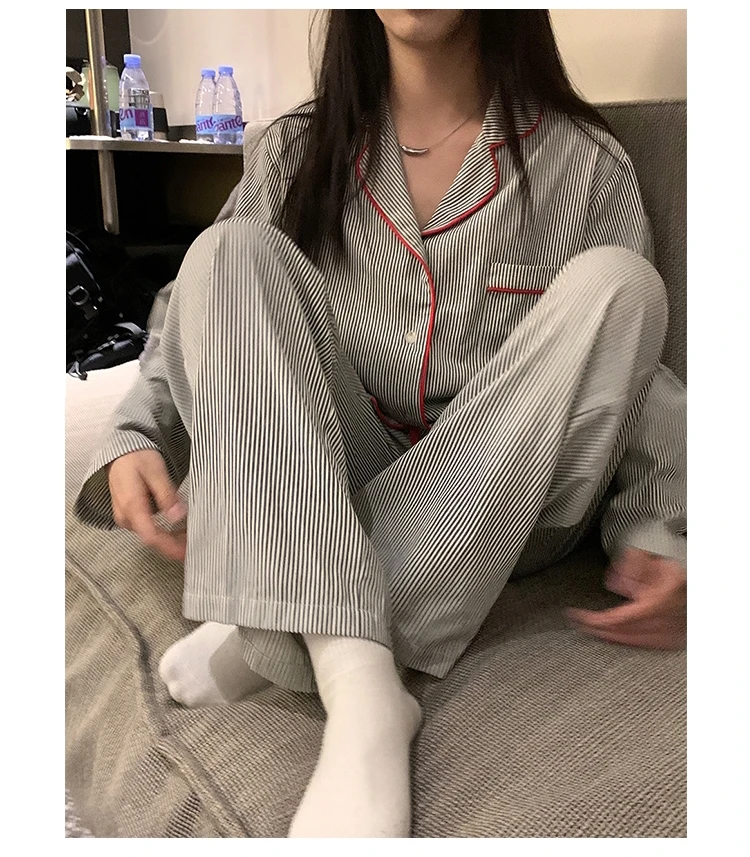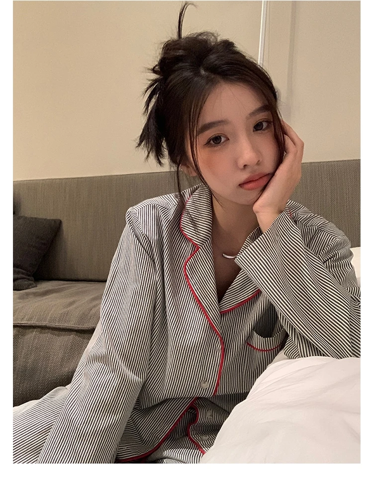 MQTIME  -  Bla Stripe Spwear Women's Long Sve Home Clothes Spring Autumn New Sle Internet Celebri Sle Girl Outdoor Wear