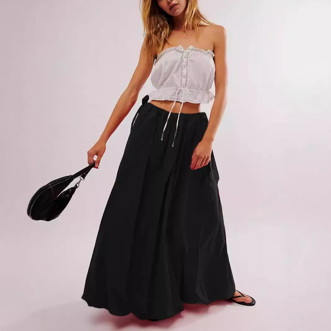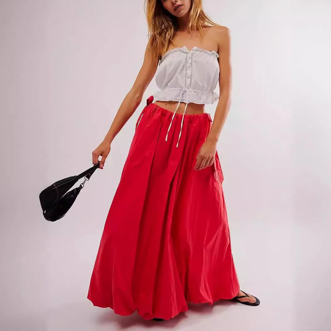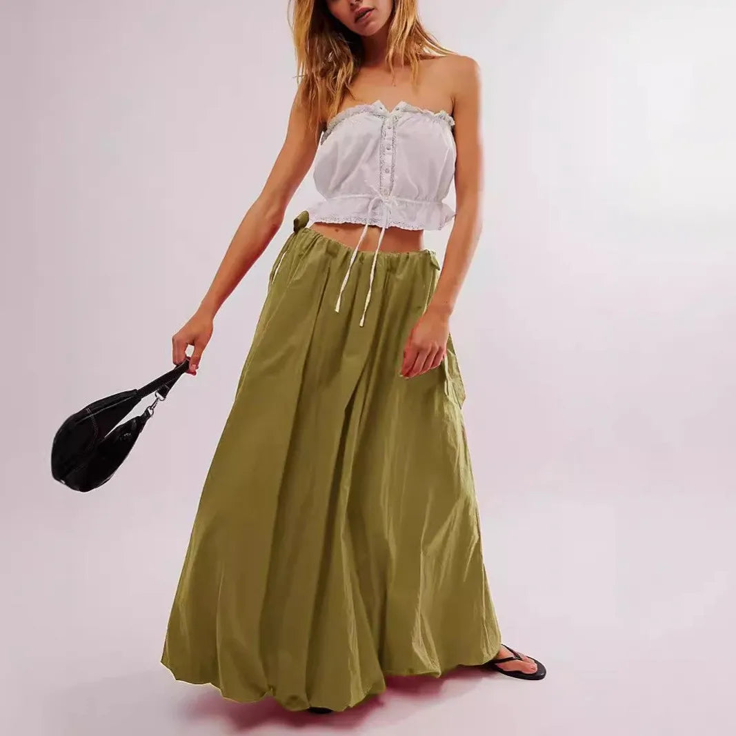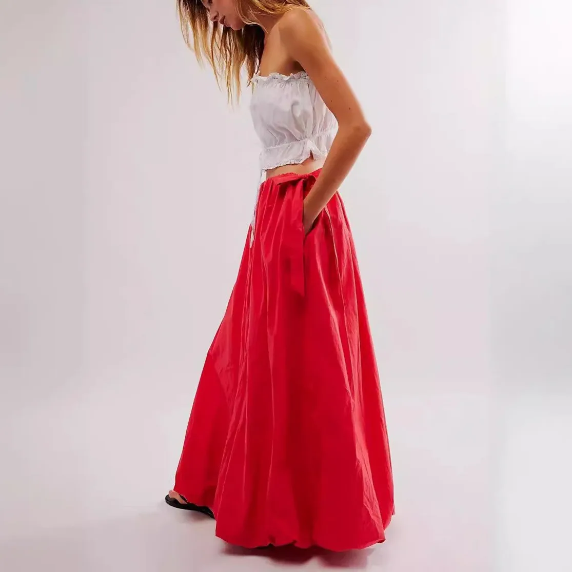 MQTIME  -  Boho Skirts Low Waist Holiday Style Bud Skirts Femme Solid Color Lace-up Bow Maxi Skirts Women Vacation Bottoms