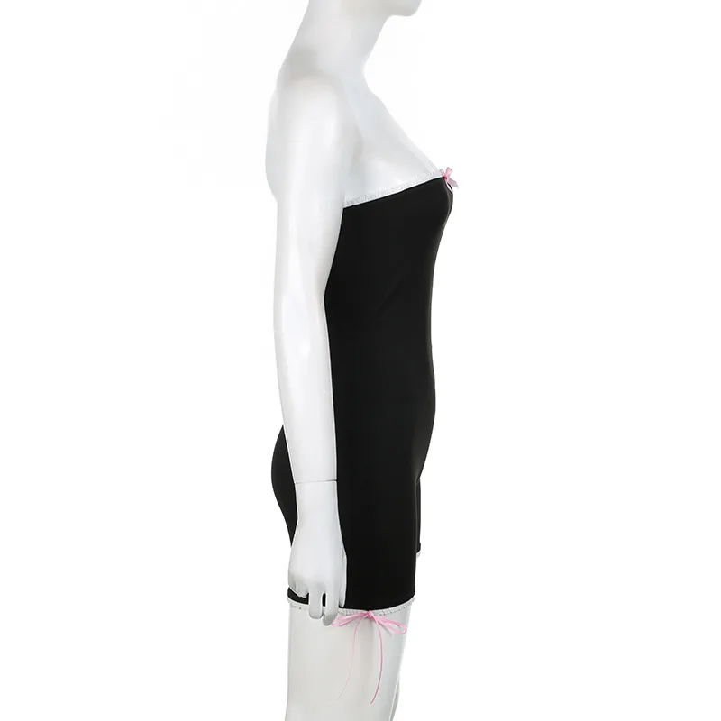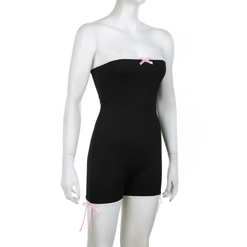 MQTIME - Bow Decor Lace Patchwork Strapless Rompers Women Summer Sexy Sleeveless Backless Skinny Casual Streetwear Playsuits Overalls