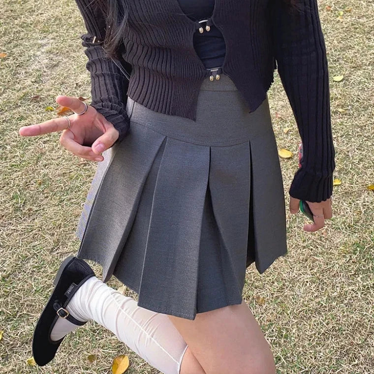 MQTIME - Boxy Pleated Mini Skirt High Waist Skirt Miniskirt for Women Teengirl Preppy Style Y2K Aesthetic Outfit
