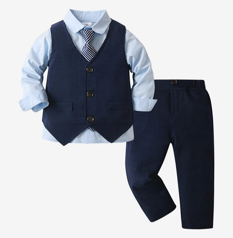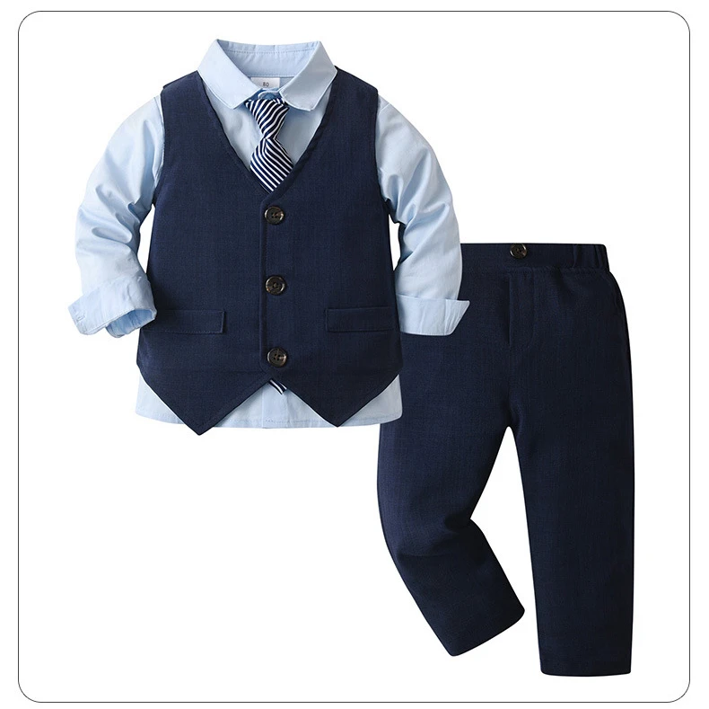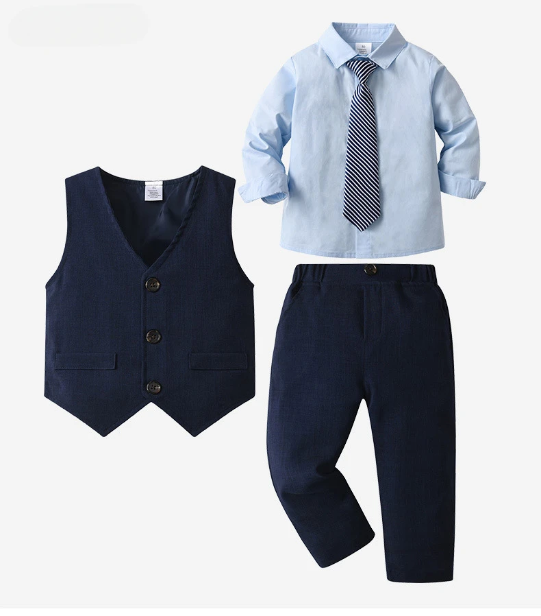 MQTIME - Boys' 4-Piece Formal Suit Set, Vest, Pants, Collared Dress Shirt and Tie Baby Toddler Kid Wedding Outfits Children Dresswear Set
