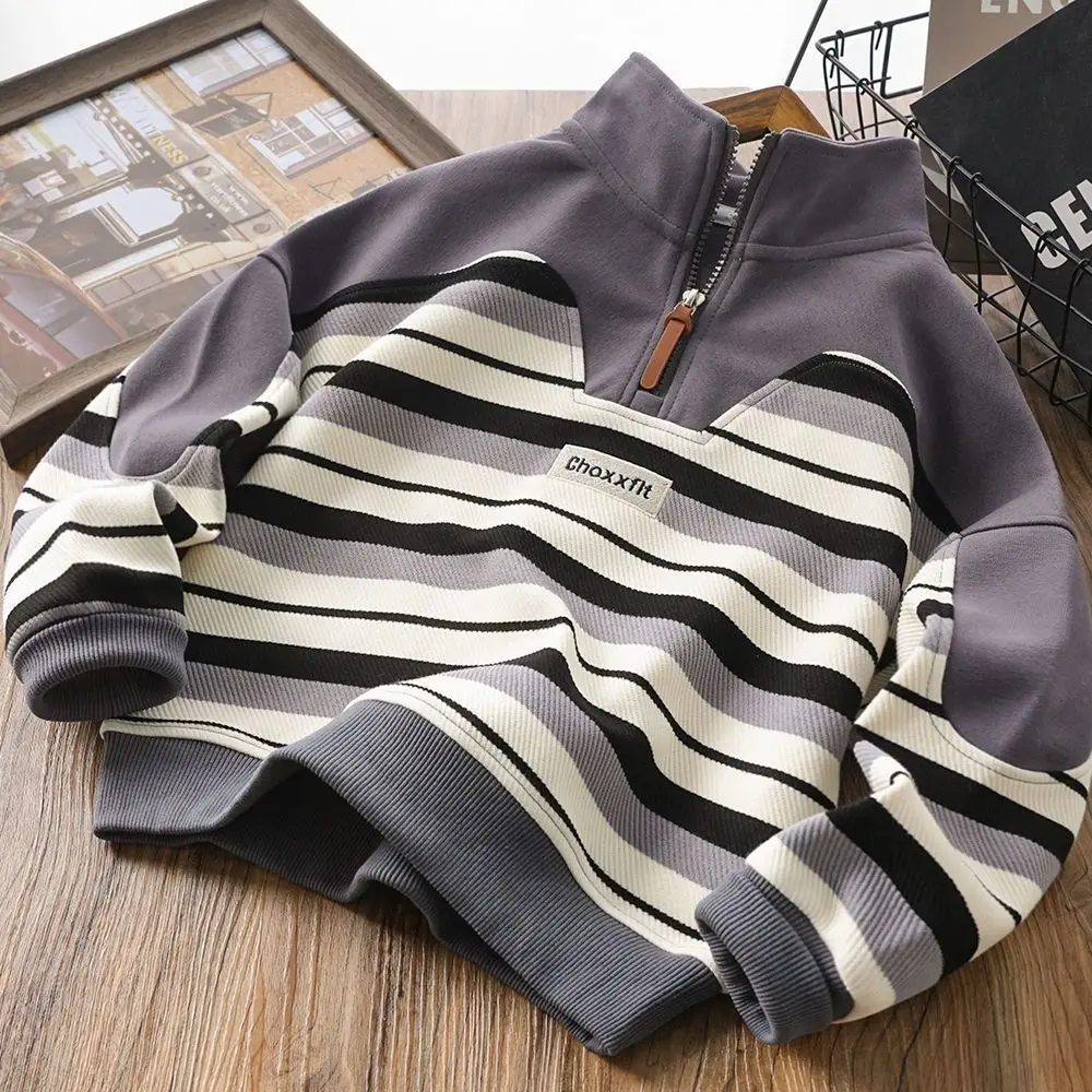 MQTIME - Boys Autumn Striped Sweatshirt Children Wrm Pullover Kids casual Loose Tops Teenage Fashion Warm Jumper 4-14 Years Old