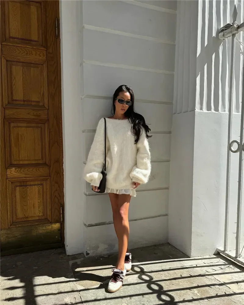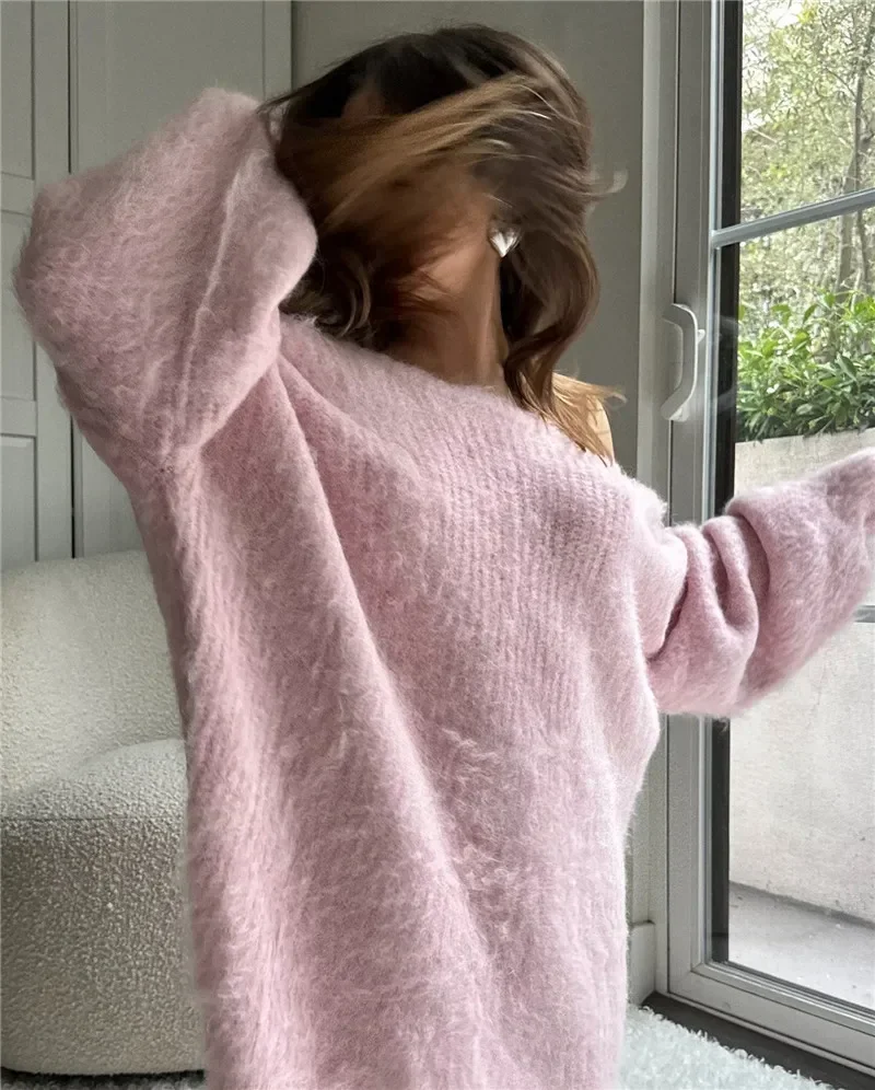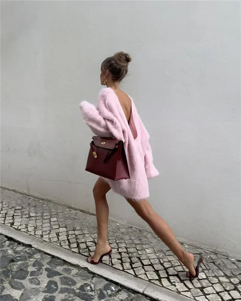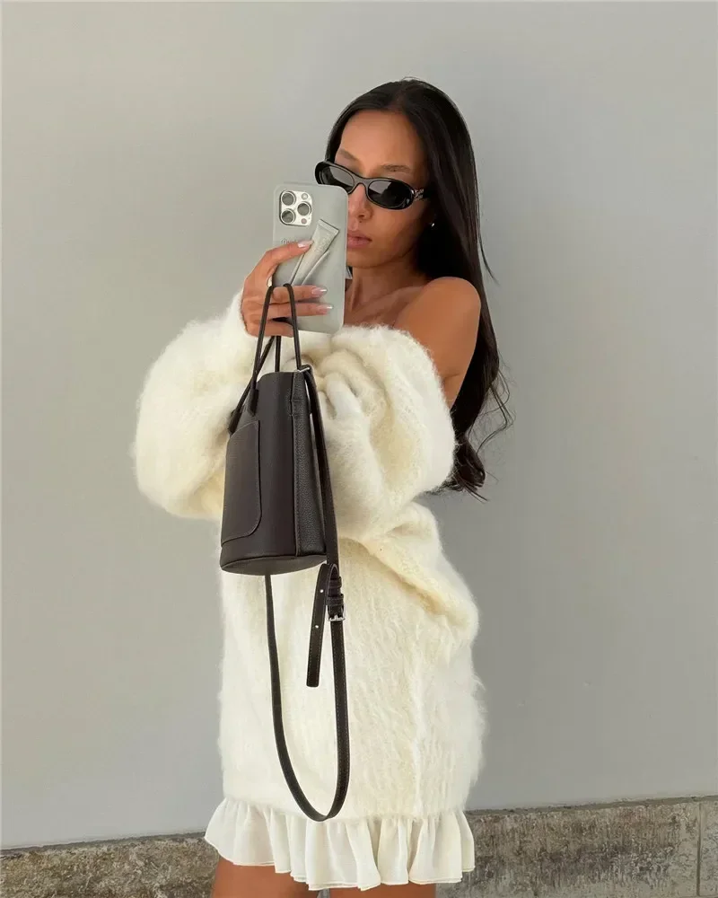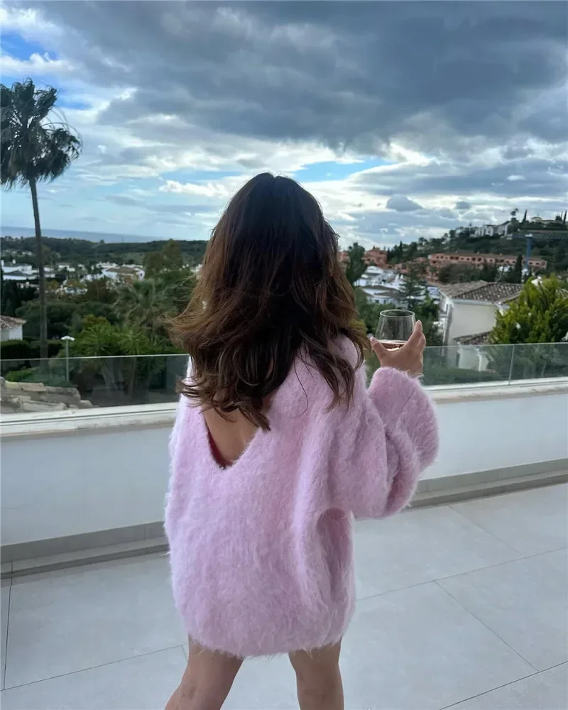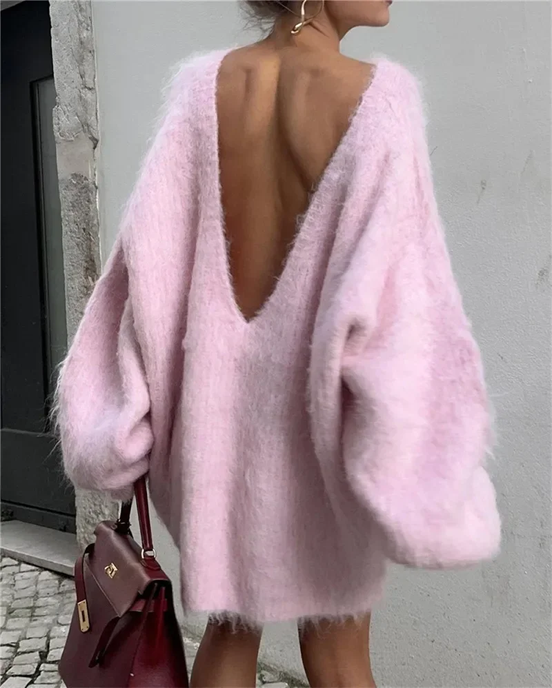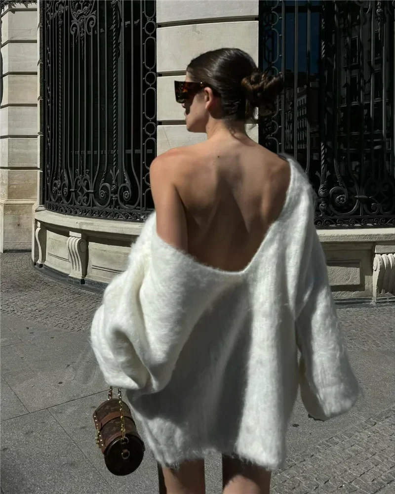 MQTIME - Casual Knitwear Backless Dress Oversized Sweater Female Loose Patchwork Autumn Knit Solid Fashion Y2k Mini Dress 2024 New