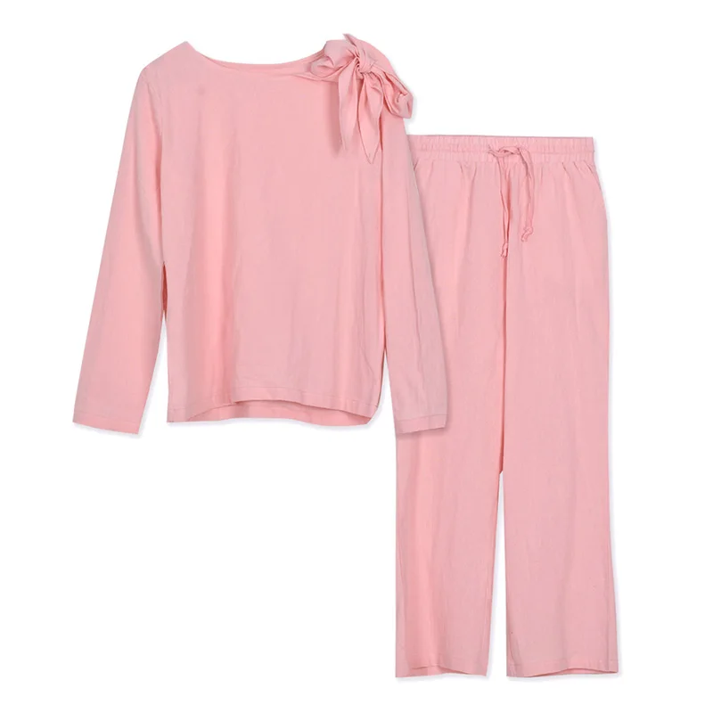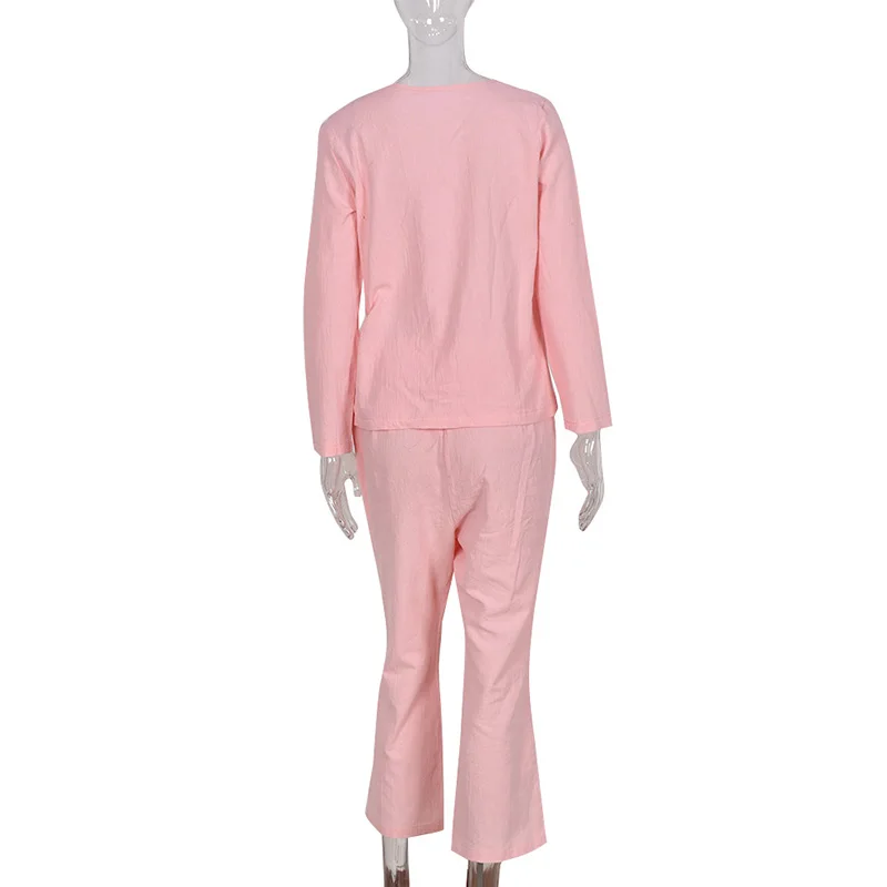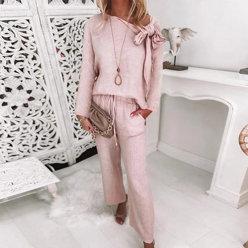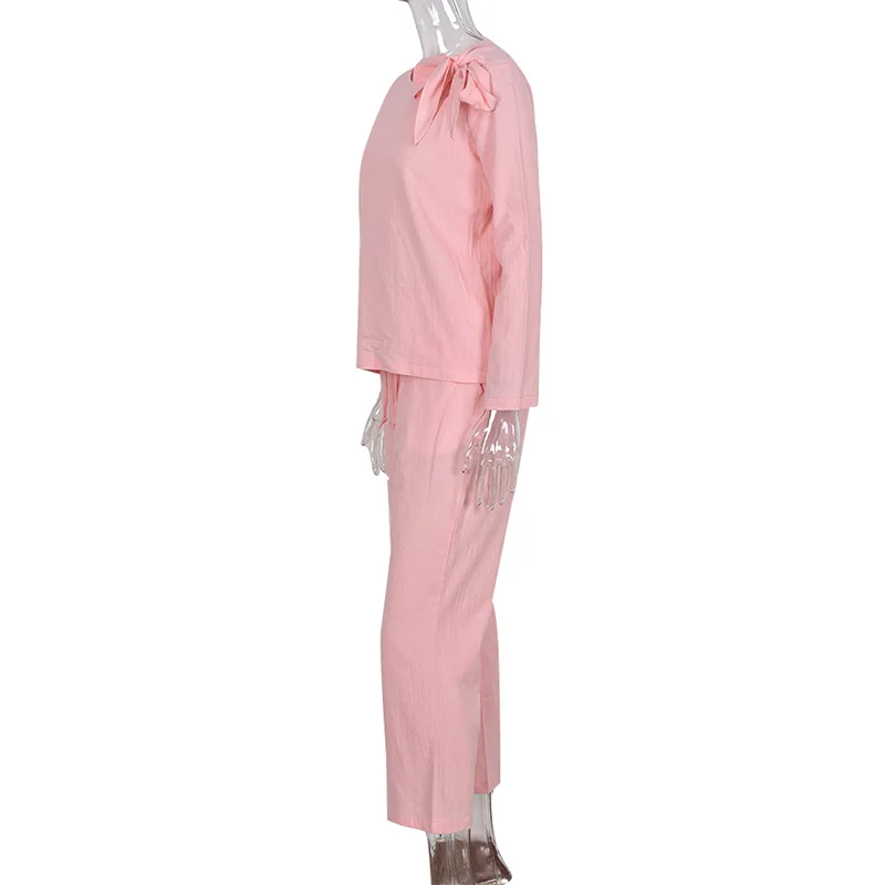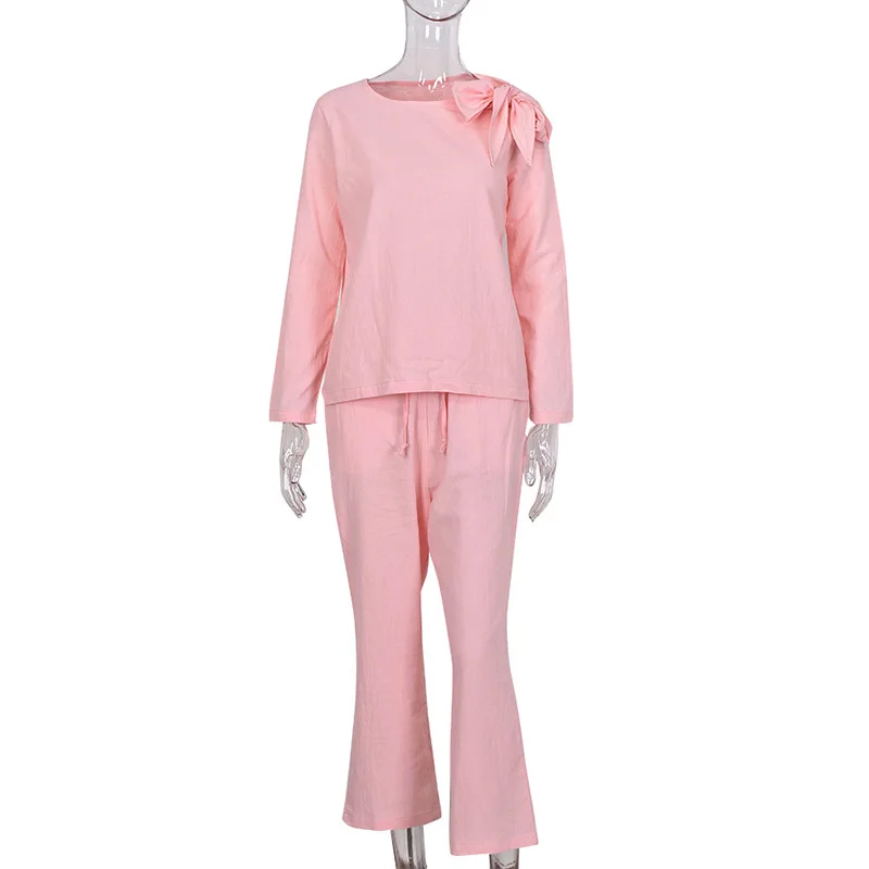 Mqtime Casual O-Neck Bowknot Khaki Pant Suits Elegant Long Sleeve Two Piece Set Women Flare Pantalones De Mujer Fall Tracksuit
