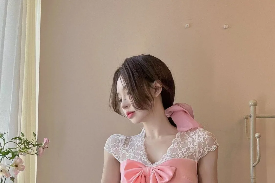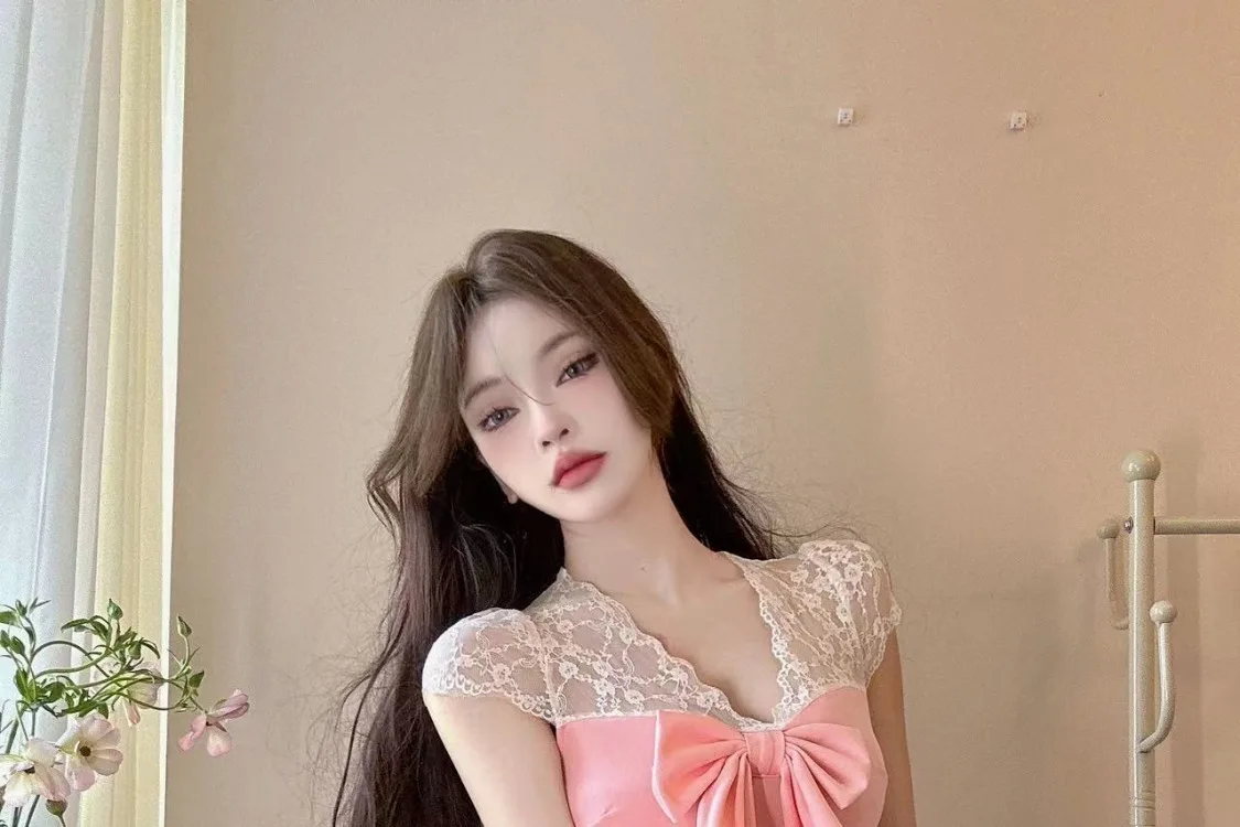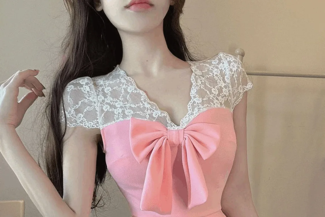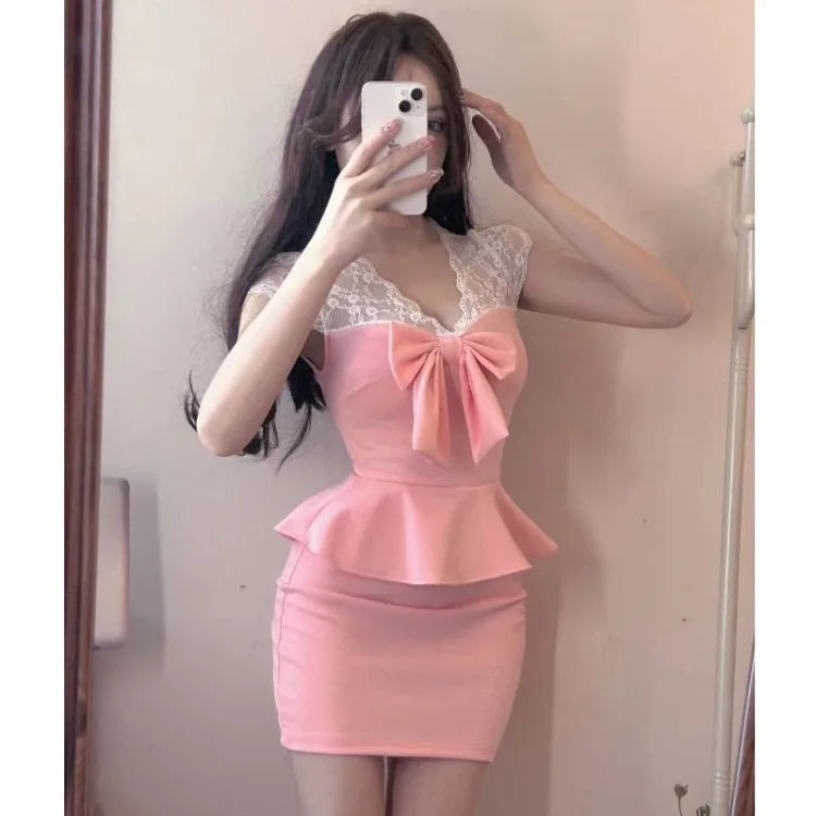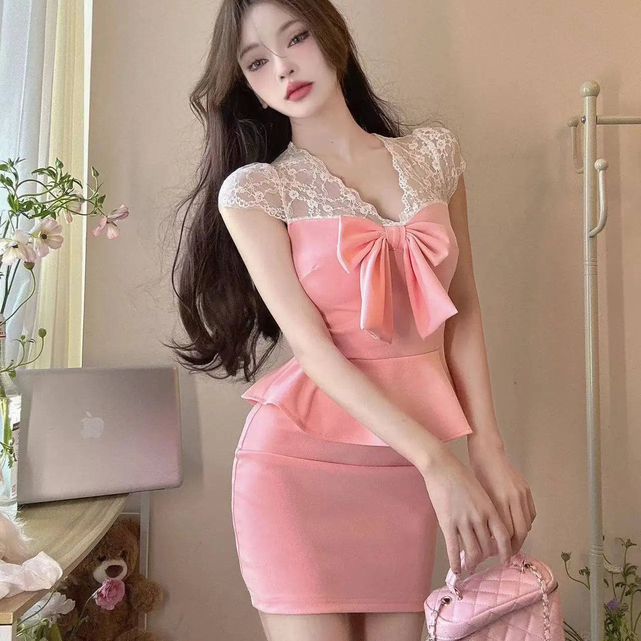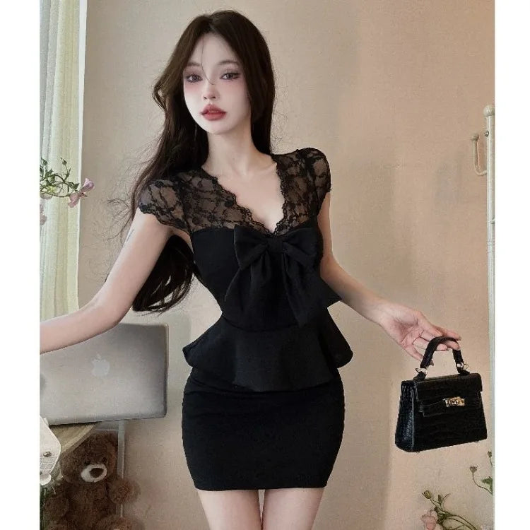 MQTIME - Celebrity Girl Sexy Dresses Fake Two Pieces Perspective Lace Splicing Short Sleeve Ruffle Edge Hip Wrap Dress Tide