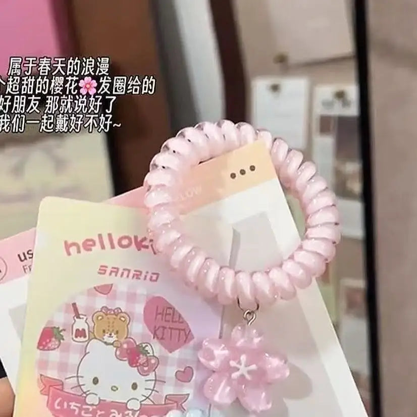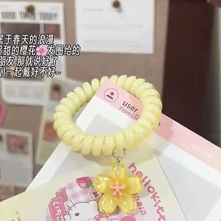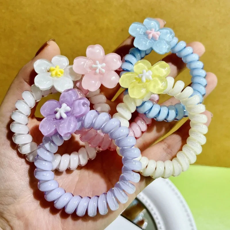 MQTIME  -  Cherry Blossom Candy Color Jelly Phone Line Hair Band Children's Spring New High Elasticity Seamless Hair Girl Headdress