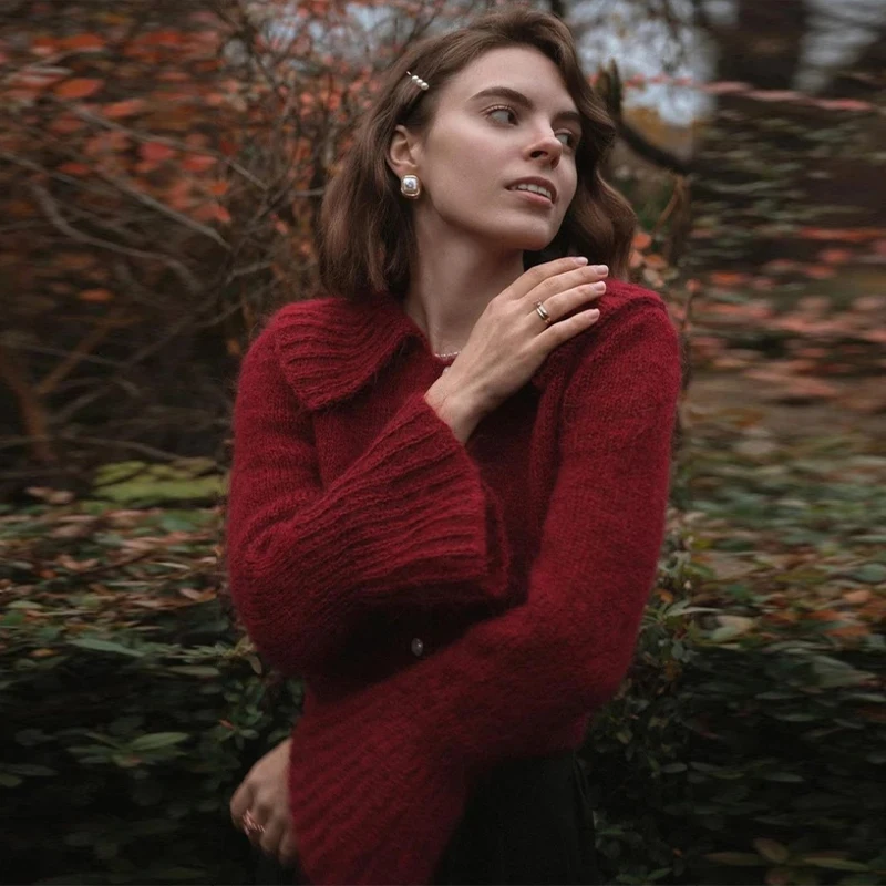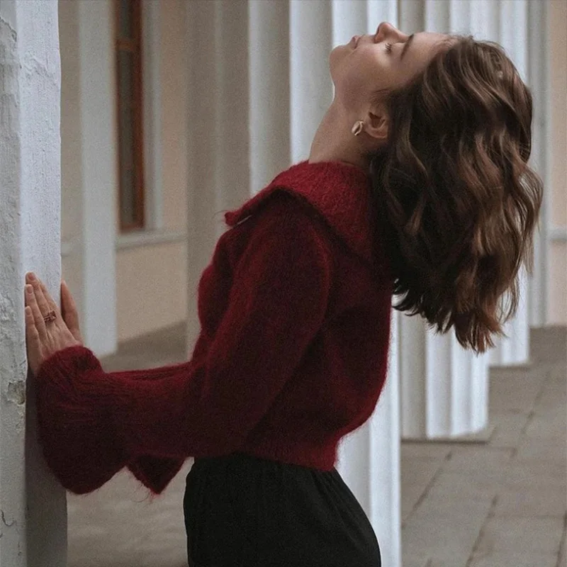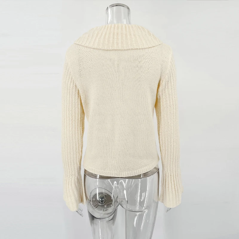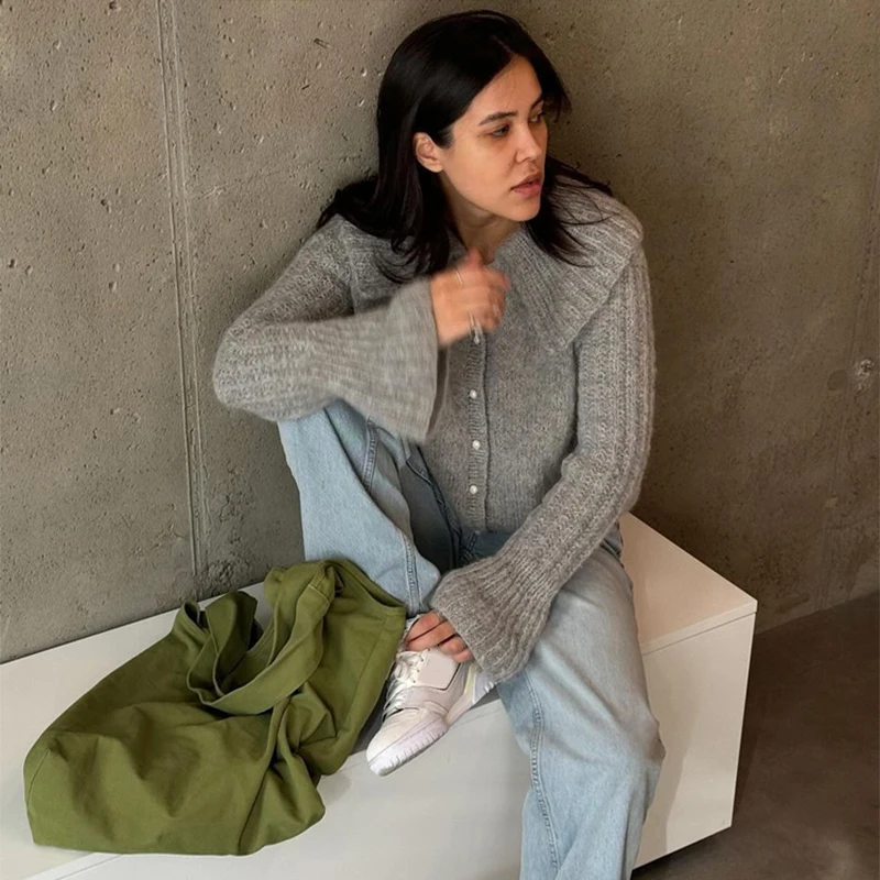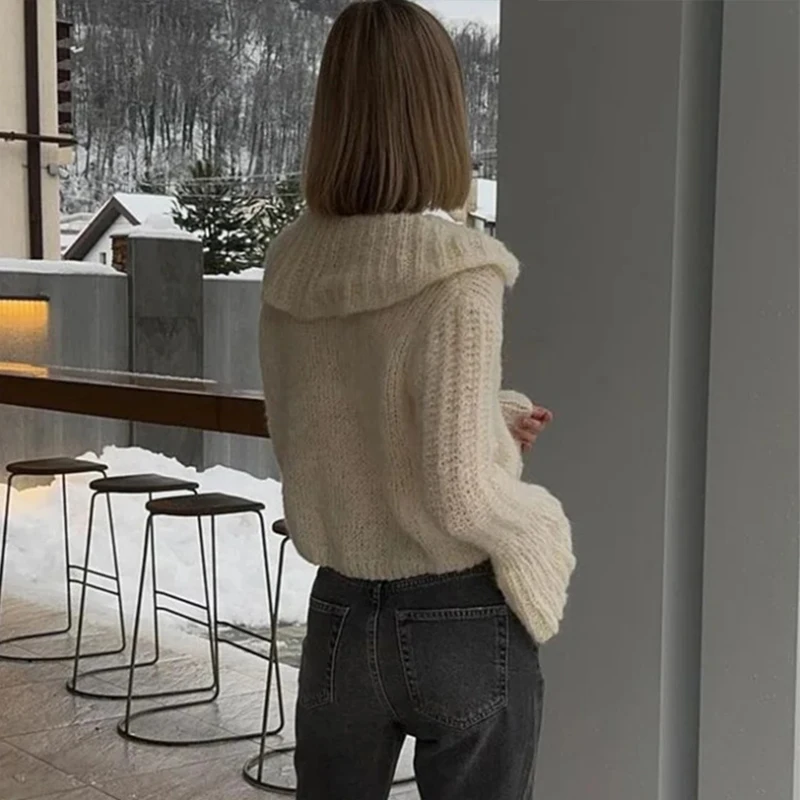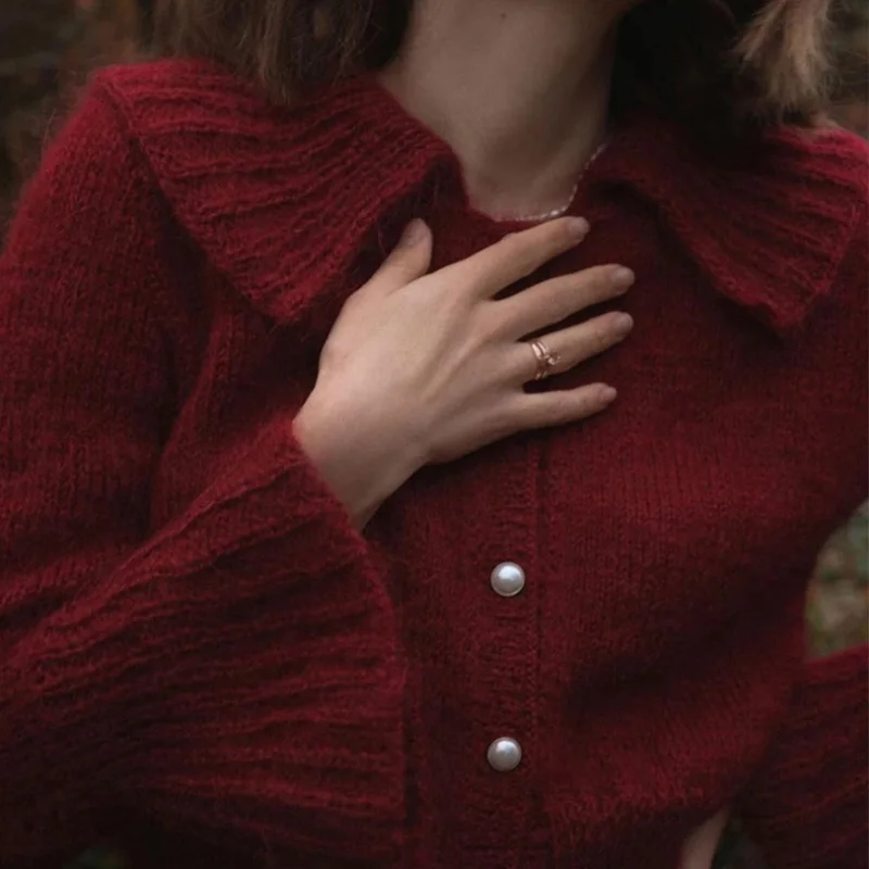 MQTIME - Chic Doll Collar Knitted Cardigan for Women Solid Single Breasted Female Sweater 2024 Autumn Long Flare Sleeves Lady Knitwear