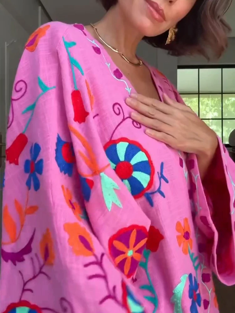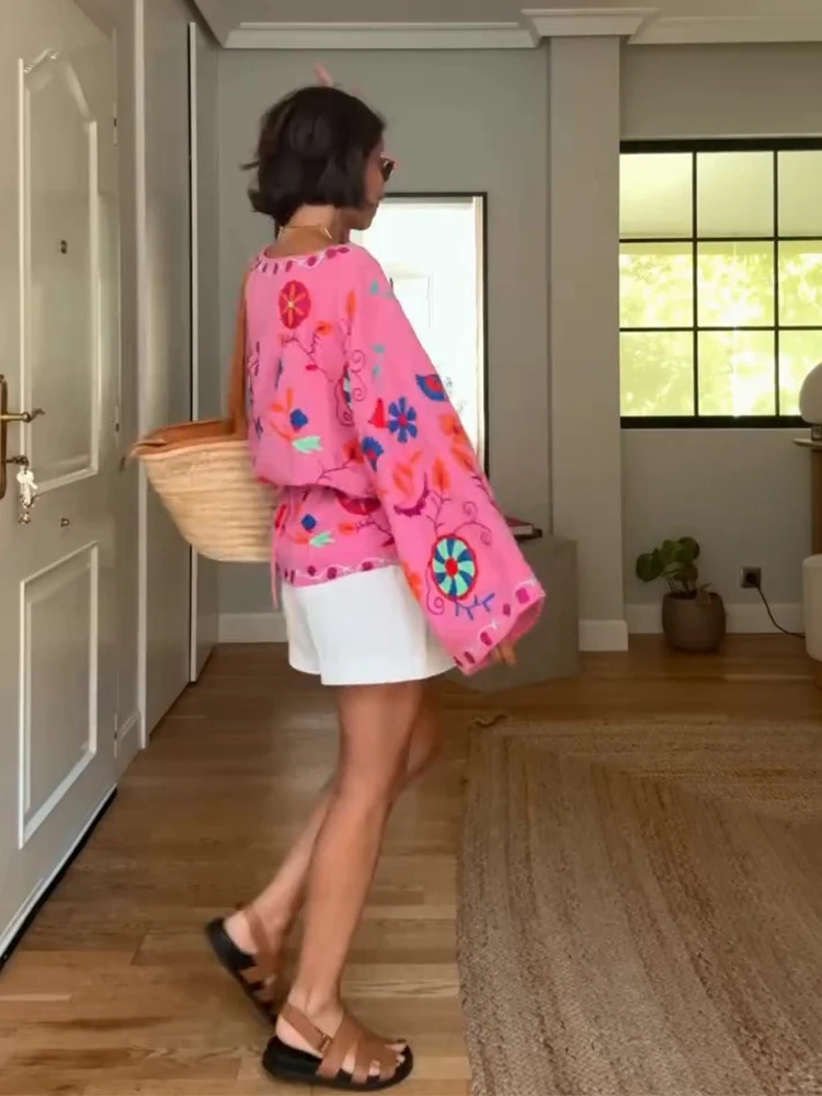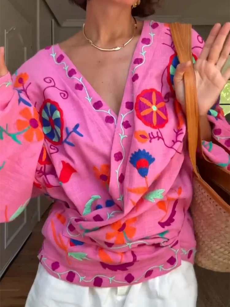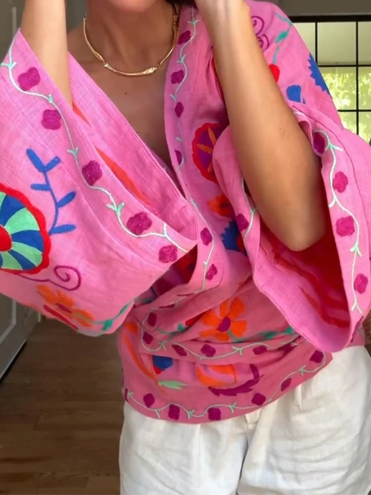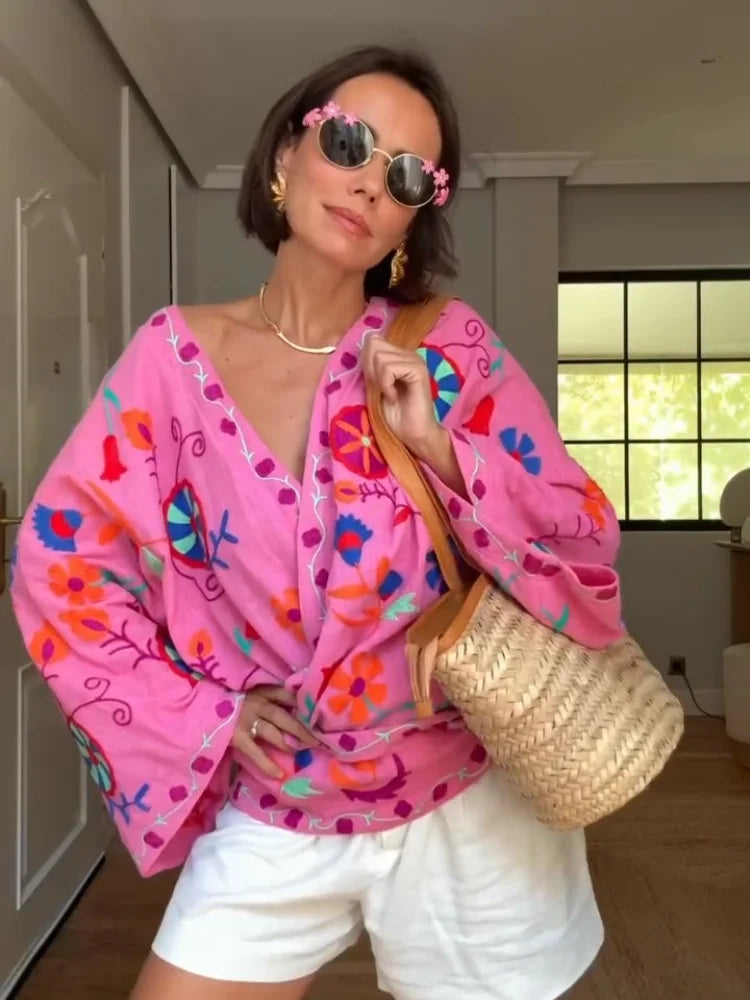 MQTIME -  Chic Embroidered Print Women's Jacket Fashion V-neck Long Sleeved Lace Up Female Coats Autumn Lady Street New Outerwear