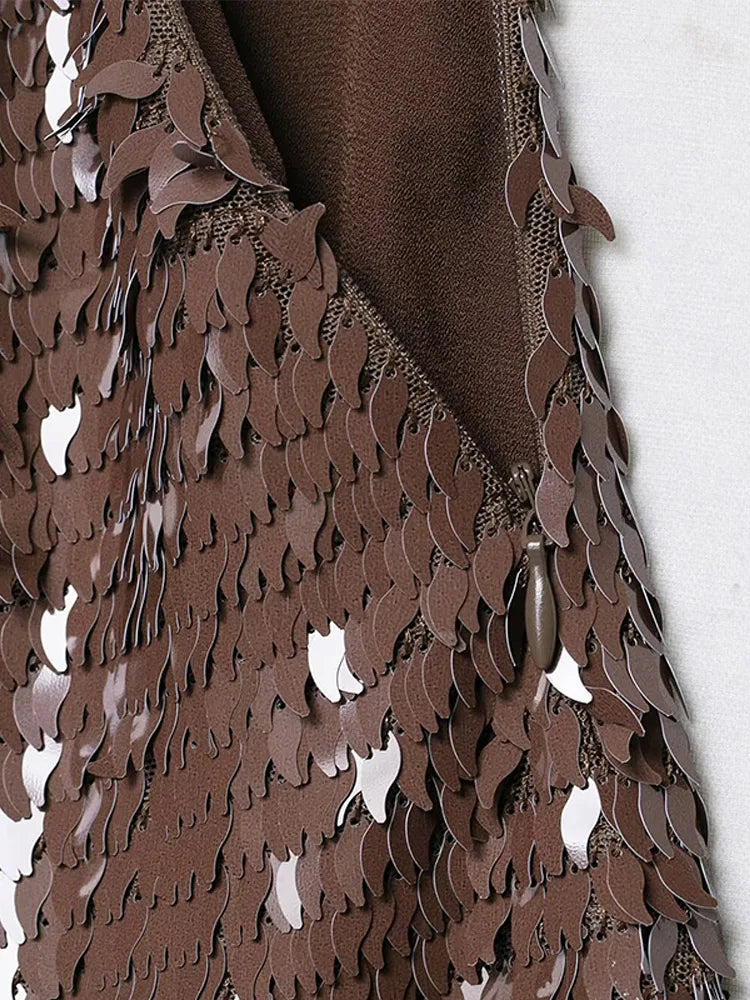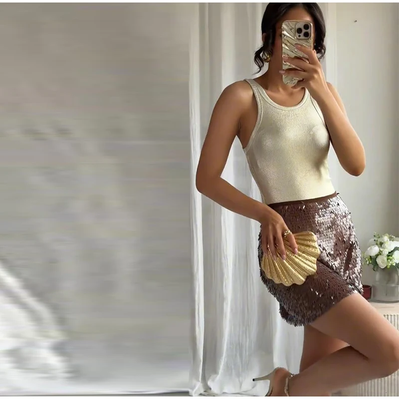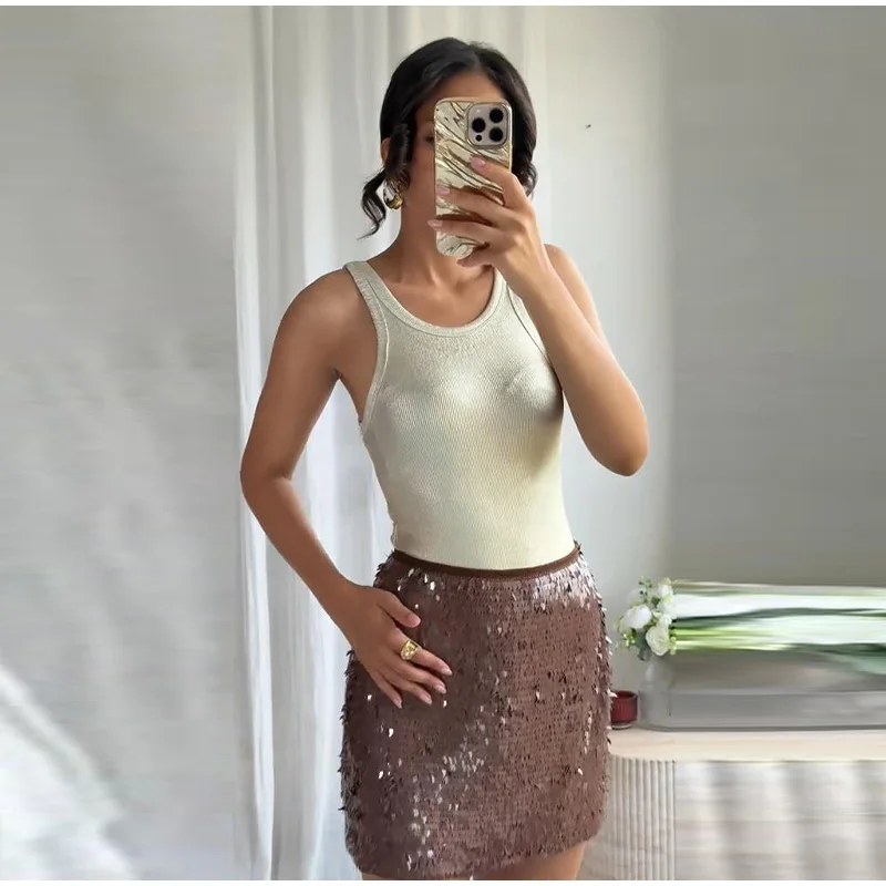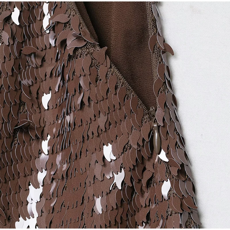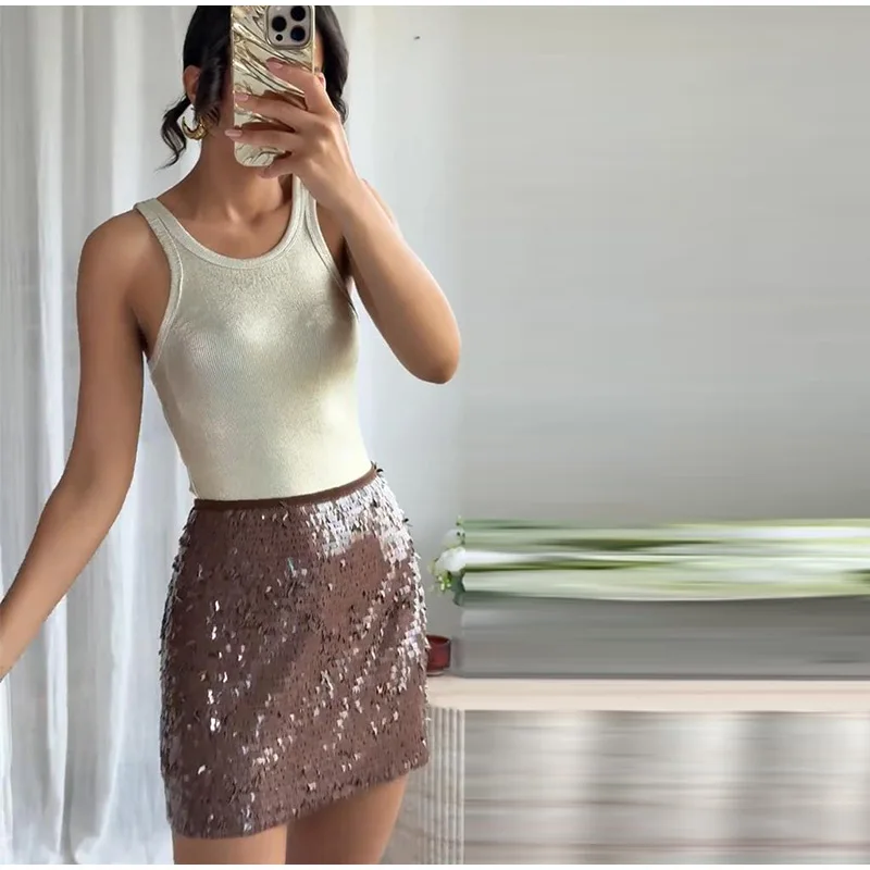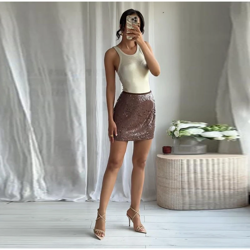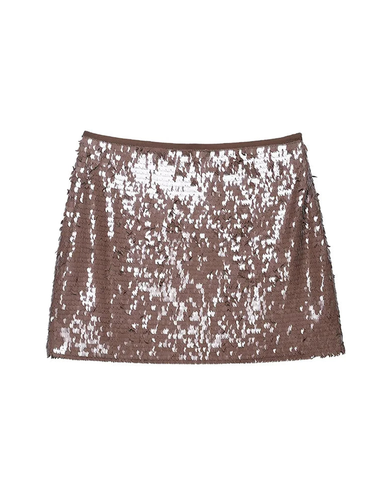 MQTIME - Chic Y2K Sequined Brown Mini Skirt Women Sexy Club Shiny Skirts 2025 Fashion Modern Birthday Night Party Music Streetwear Skirt