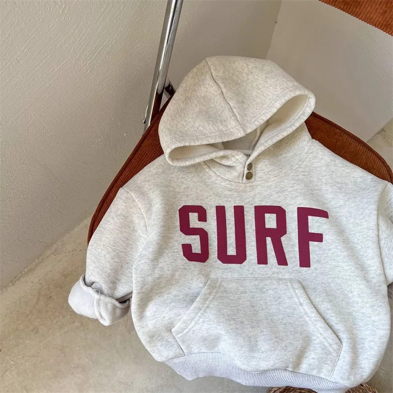 MQTIME - Children Hooded Sweatshirts Autumn Boys Girls Loose Fleece Warm Pullover Winter Letter Print Hoodie Baby Casual Top 1-6Y