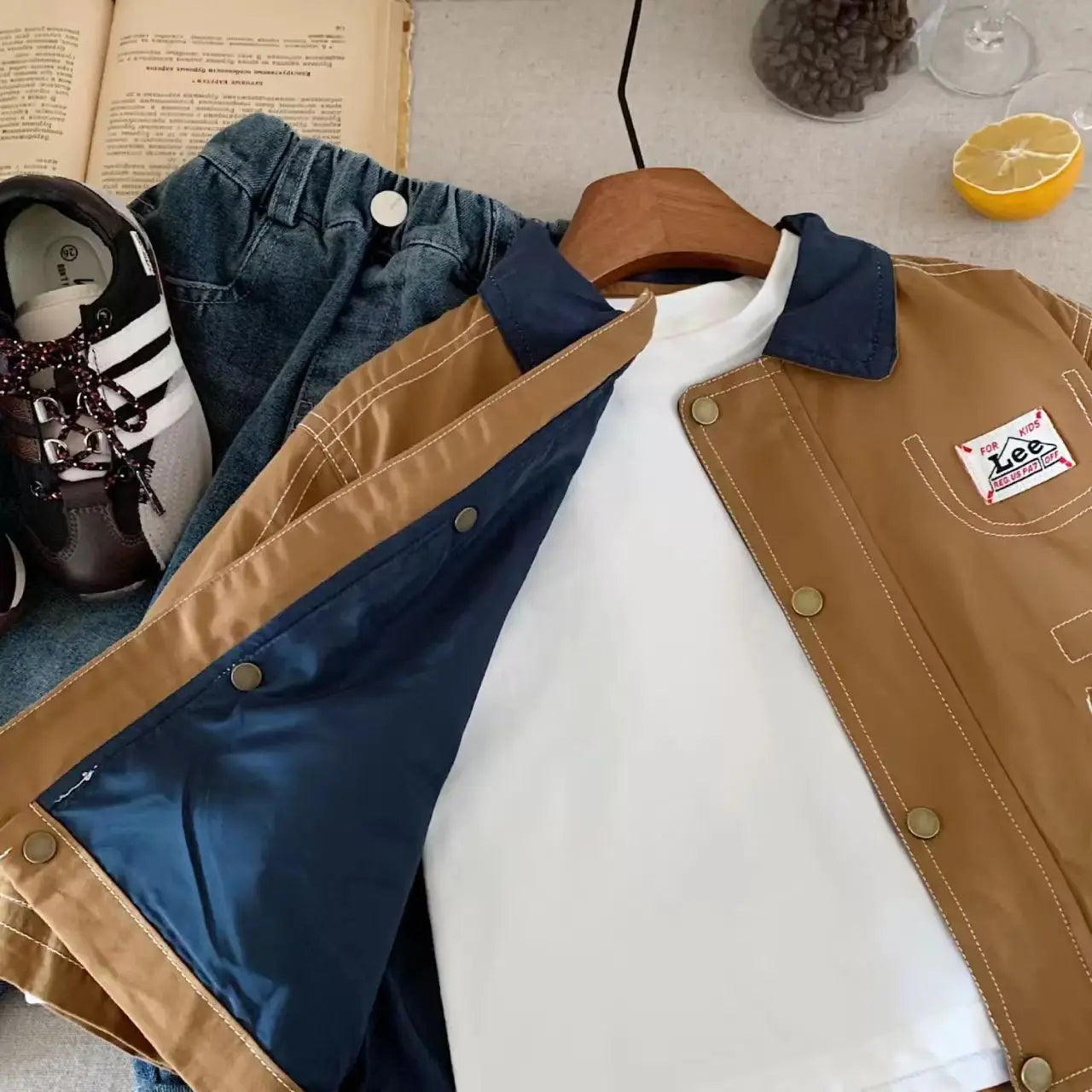 MQTIME - Children's Outerwear 2025 Spring and Autumn Season Male Child Labor Outerwear Children's Jackets Boys and Babies Lapel Tops