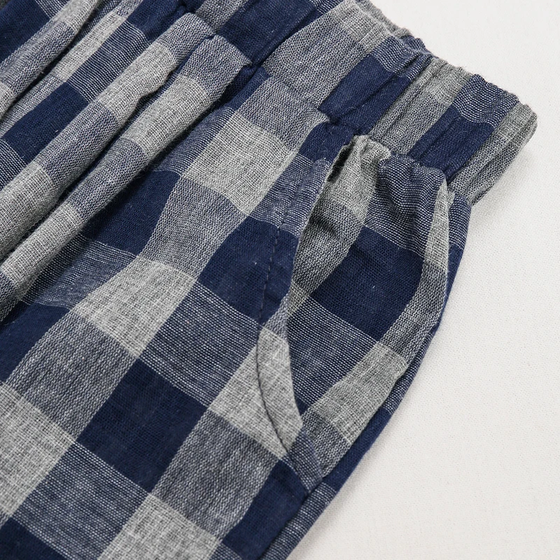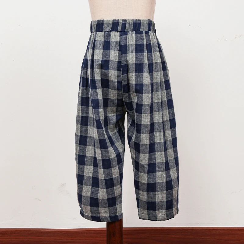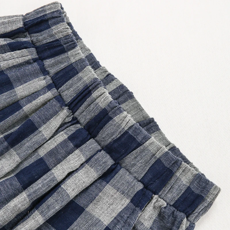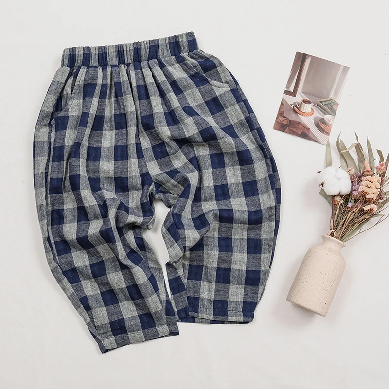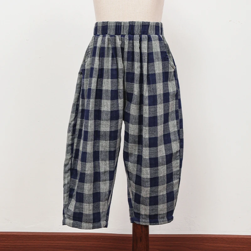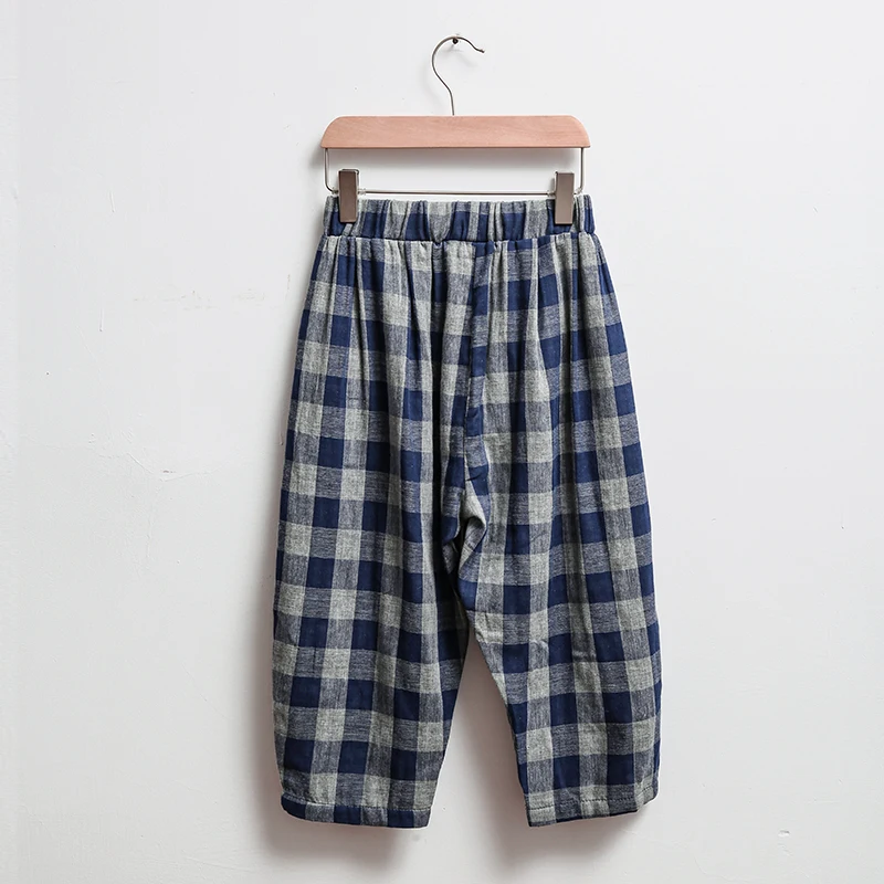 MQTIME - Children's Retro Blue Plaid Trousers Spring Autumn New Korean Boys And Girls Double-Layer Cotton Casual Harem Pants WTP121