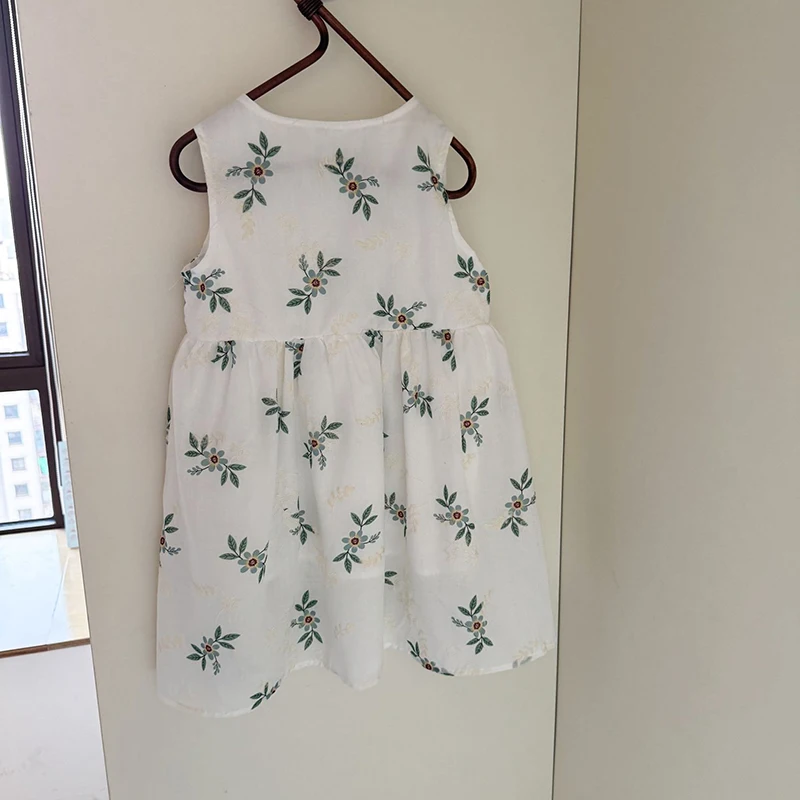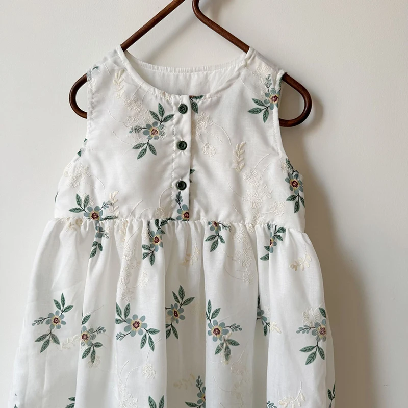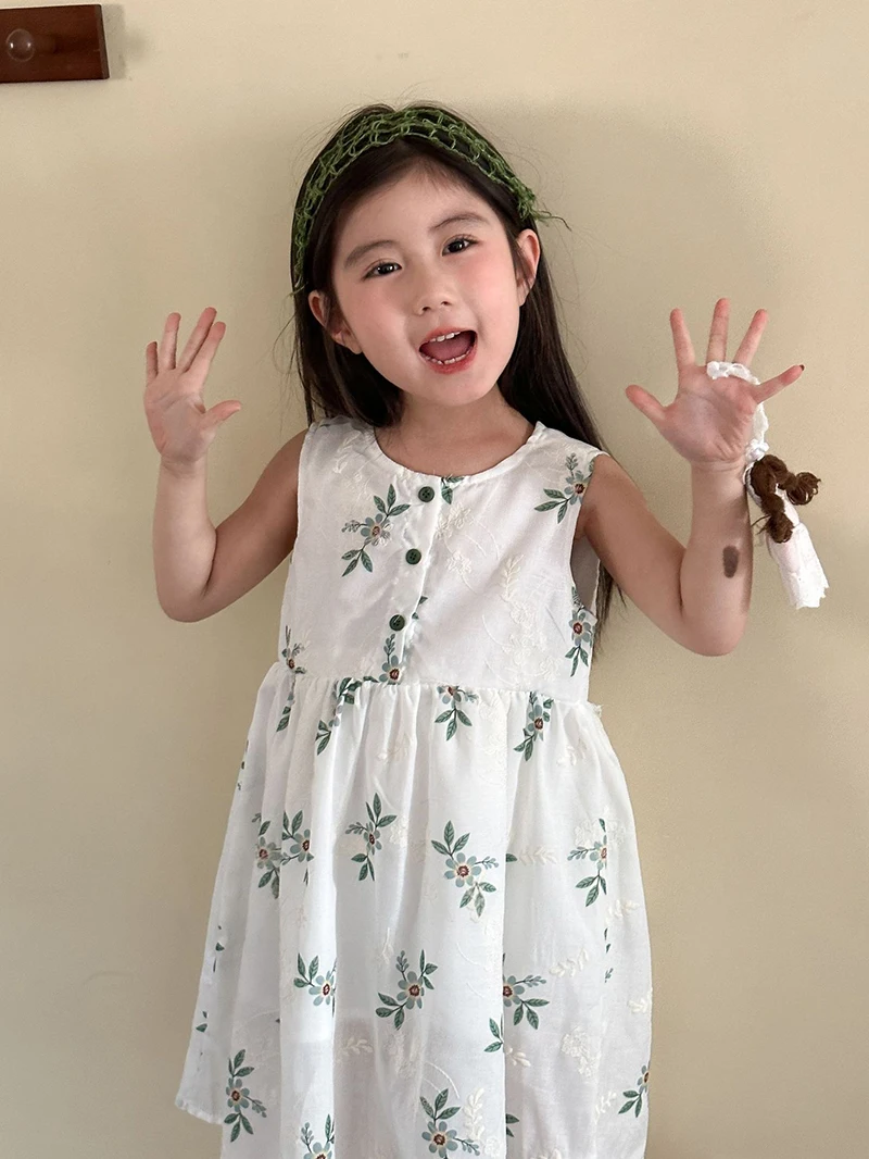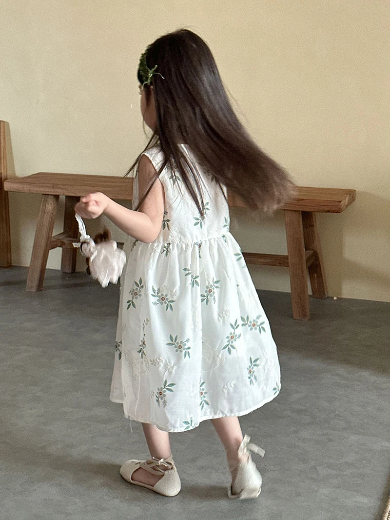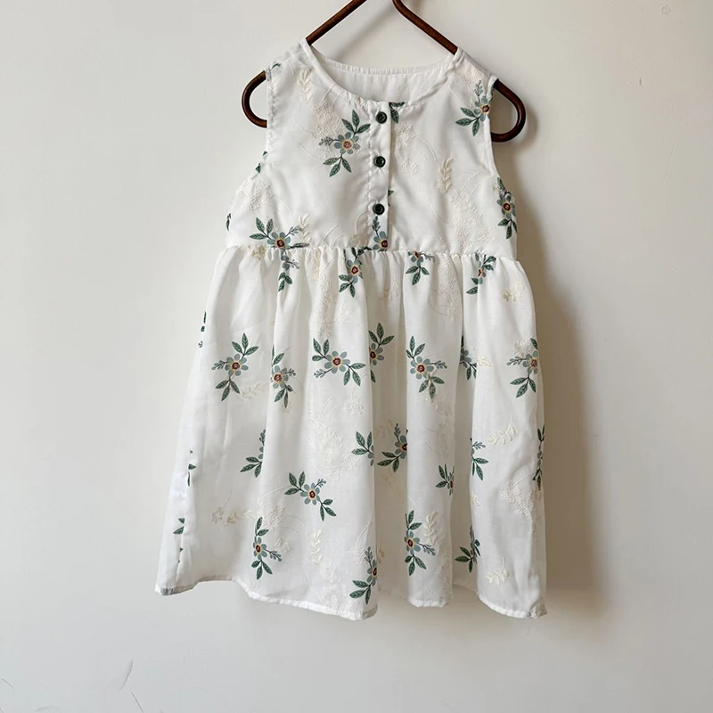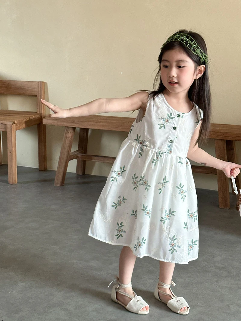 MQTIME - Children's Summer Clothing 1-10Y Elegant Girls' Flower Embroidery Vest Dress Lovely Kid's O Neck Sleeveless Dress Girls' Outfits