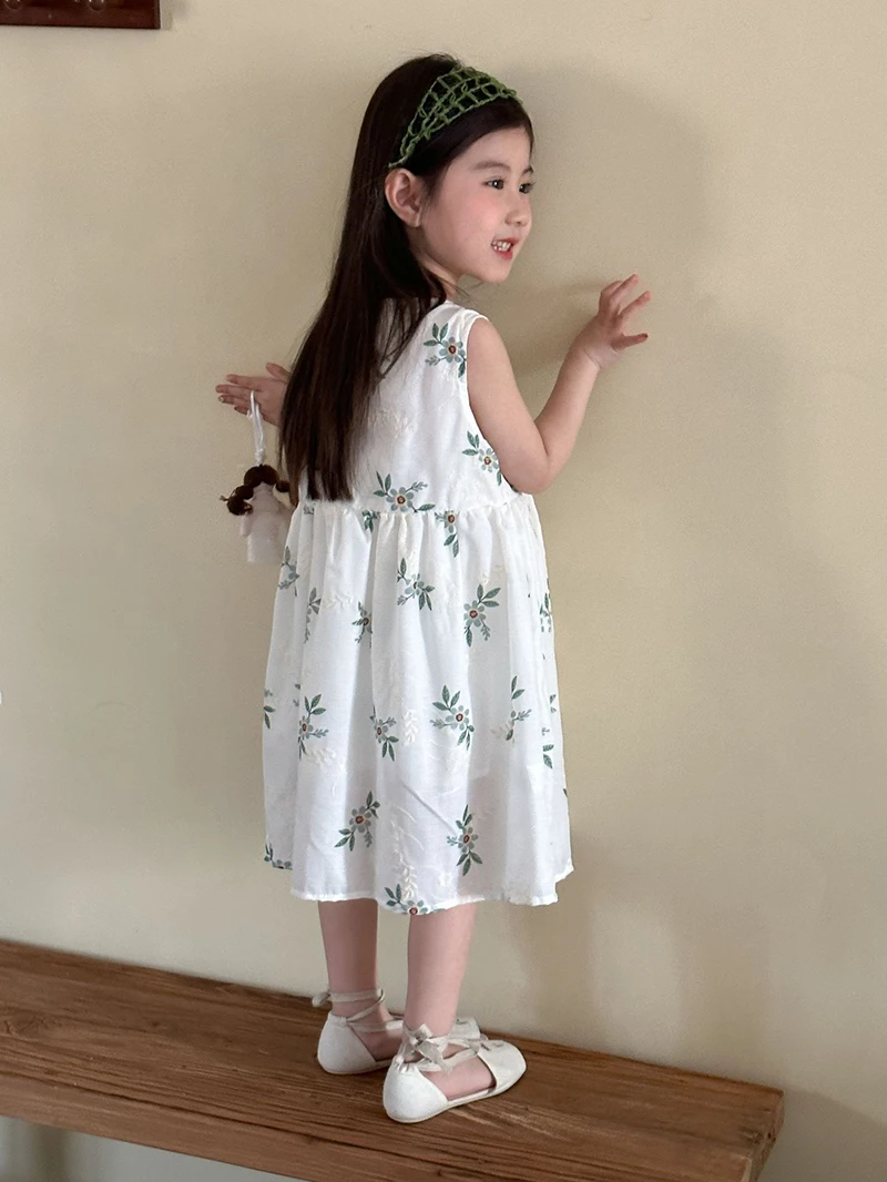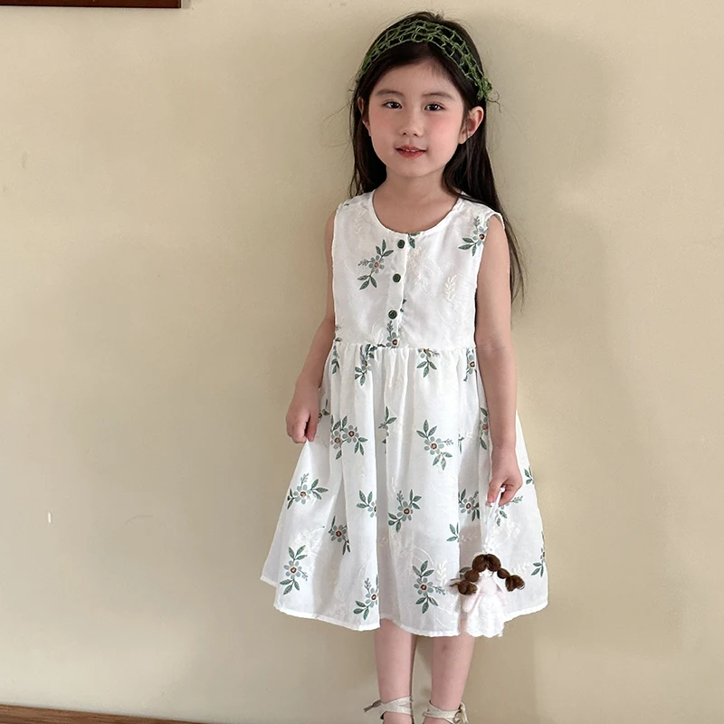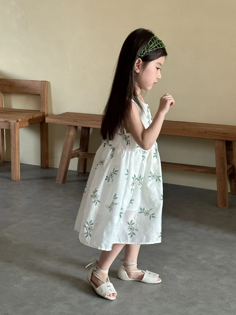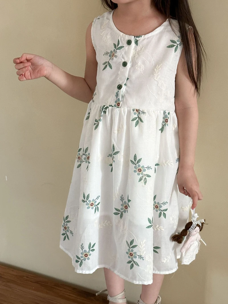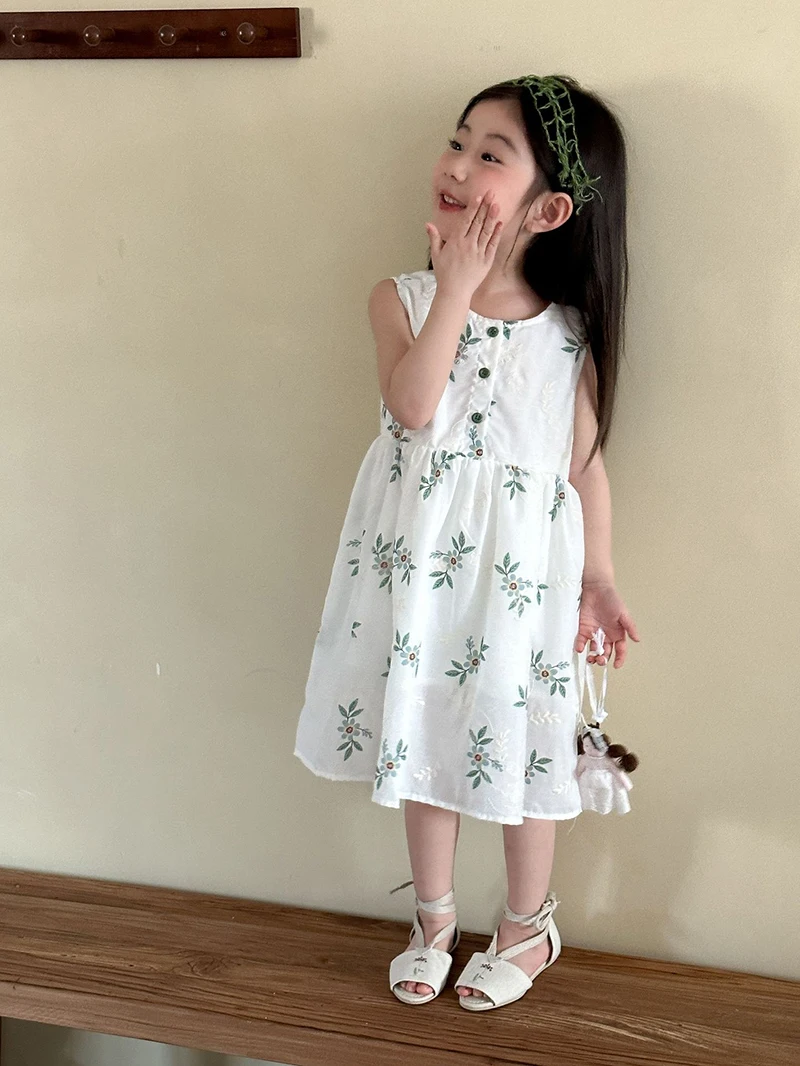 MQTIME - Children's Summer Clothing 1-10Y Elegant Girls' Flower Embroidery Vest Dress Lovely Kid's O Neck Sleeveless Dress Girls' Outfits
