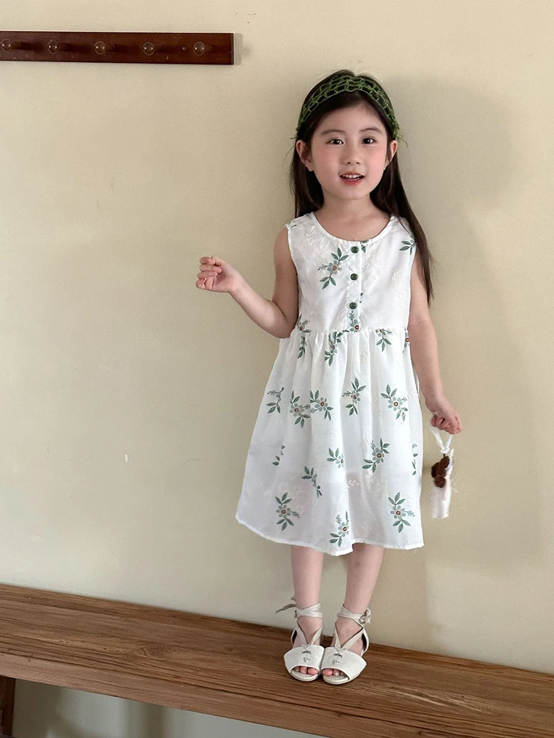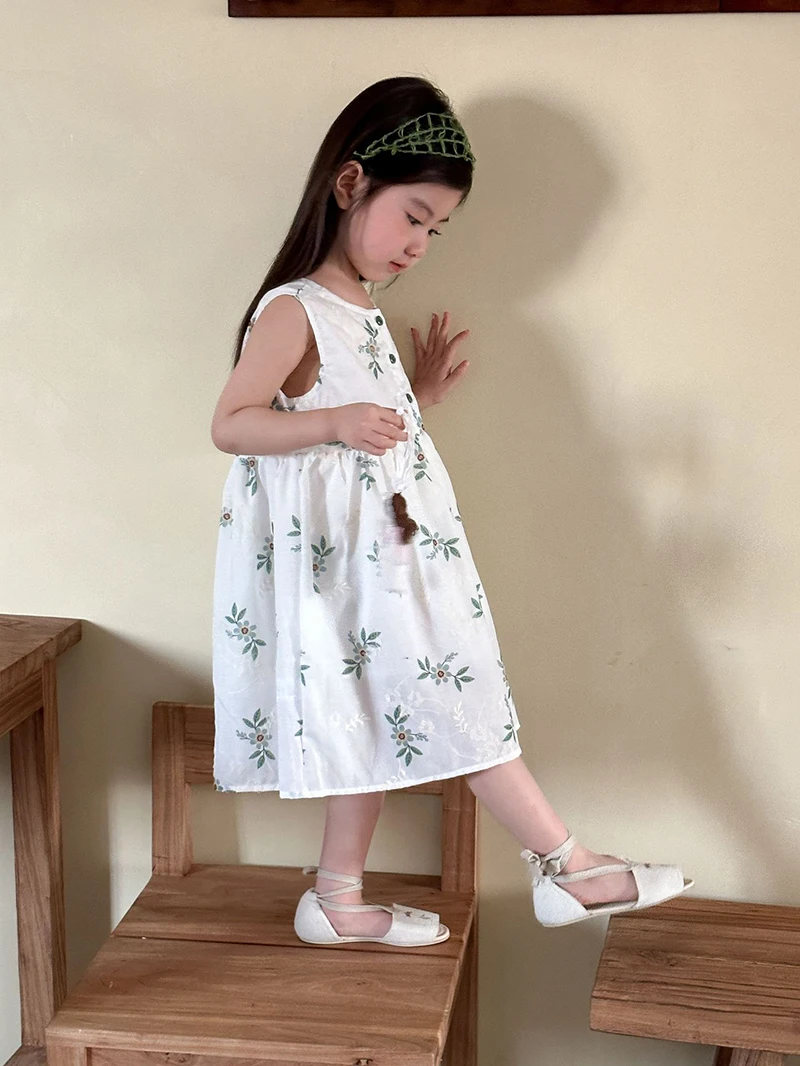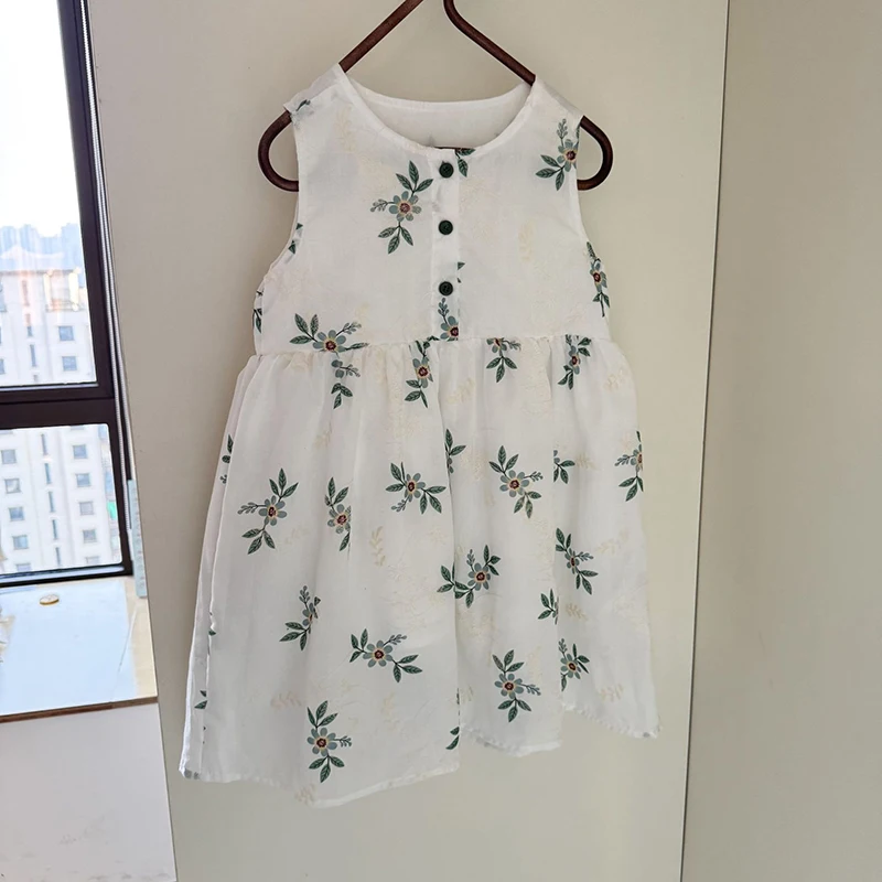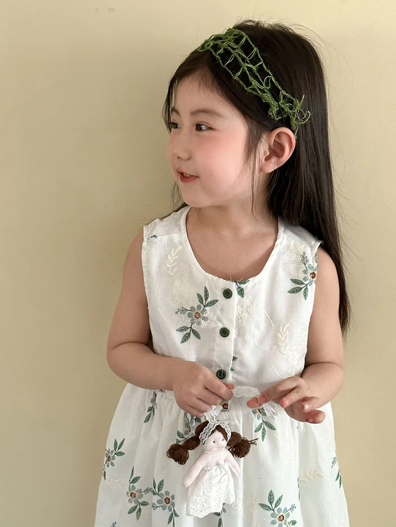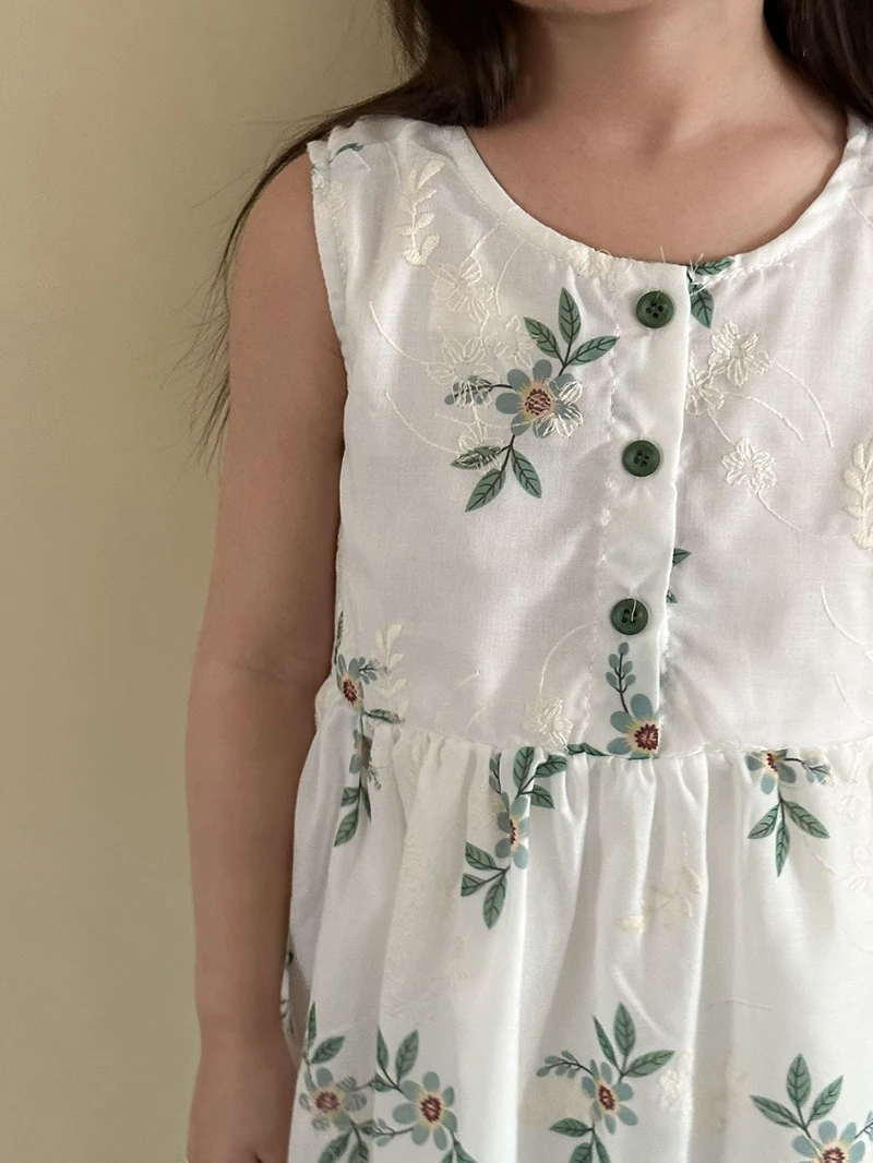 MQTIME - Children's Summer Clothing 1-10Y Elegant Girls' Flower Embroidery Vest Dress Lovely Kid's O Neck Sleeveless Dress Girls' Outfits