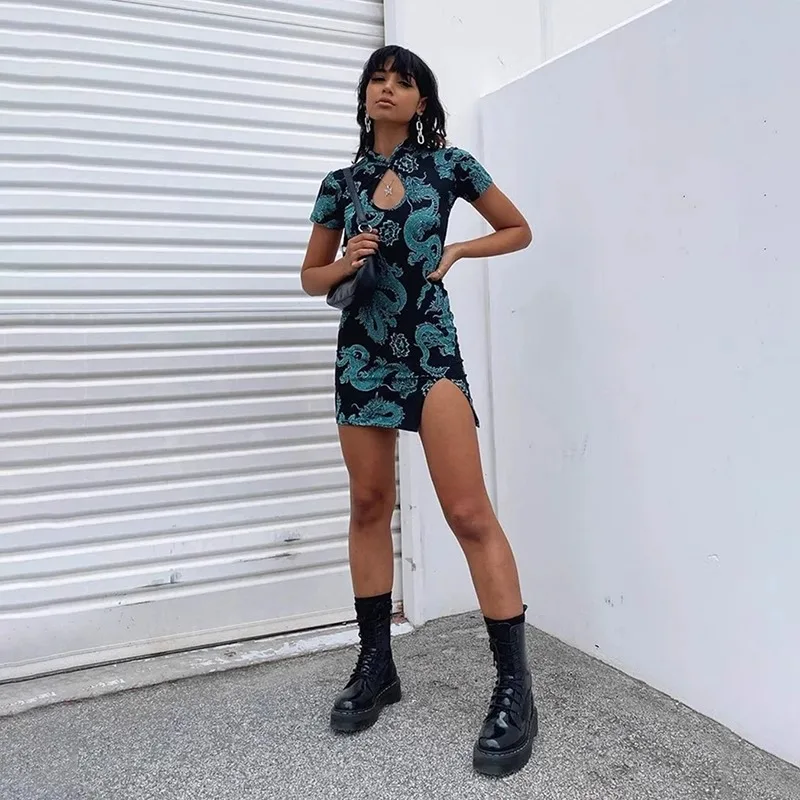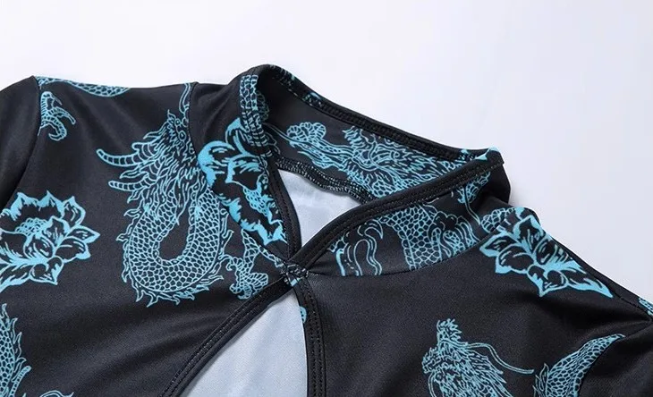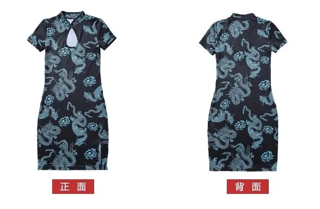 MQTIME - Chinese Style Printed Slit Dress For Women'S Summer New Hollow Out Design, Spicy Girl Improved Slim Fit Qipao Short Skirt