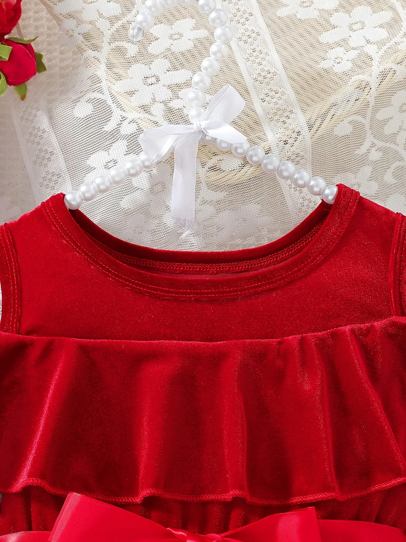 MQTIME - Christmas Girls Dress Kids with Off-the-Shoulder Design Ruffled Gown Children's Winter Long-Sleeved Vestidos Kids Autumn Clothes