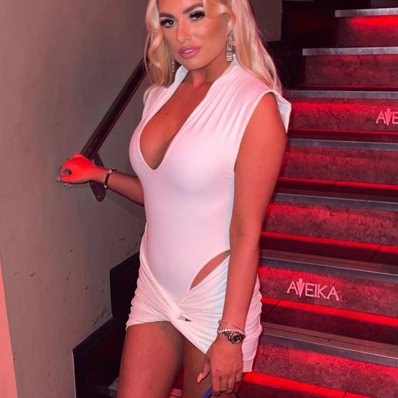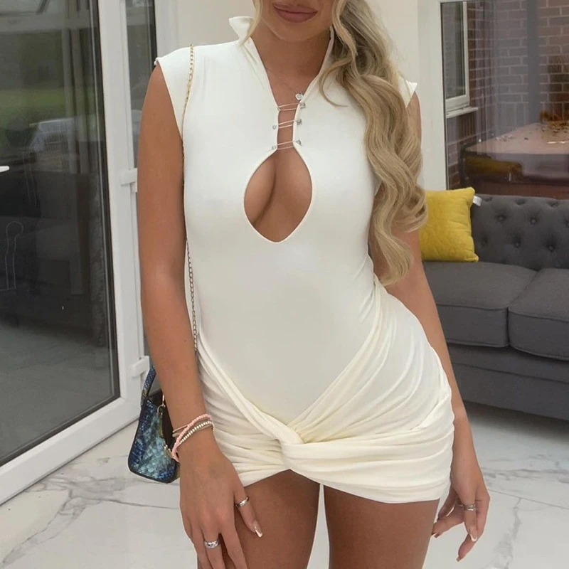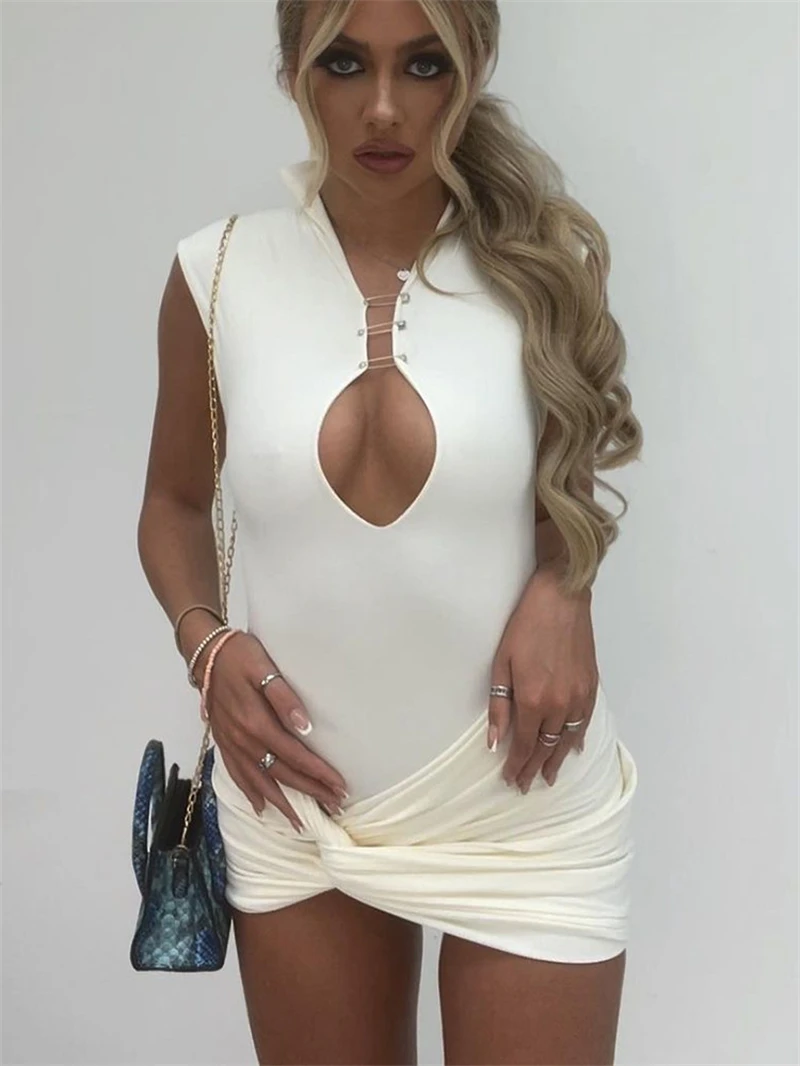 MQTIME - Clips Women Sexy 2 Piece Matching Sets Sexy Deep V Neck Sleeveless Bodysuit Top Twist Bodycon Mini Skirts Clubwear Party Outfits
