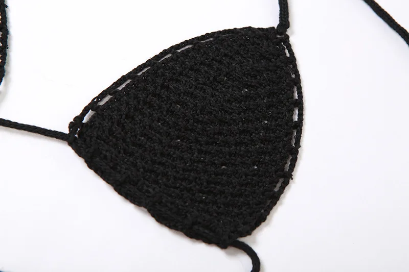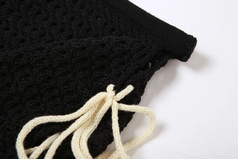 MQTIME - Crochet Knitted 2 Piece Dress Sets Women Sexy Hollow Out Lace Up Bra Top Tassel Bandage Mini Skirts Summer Beach Clothing Suits