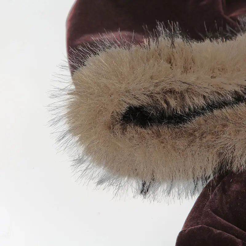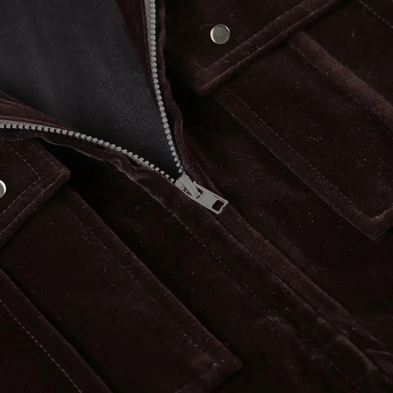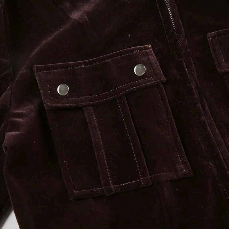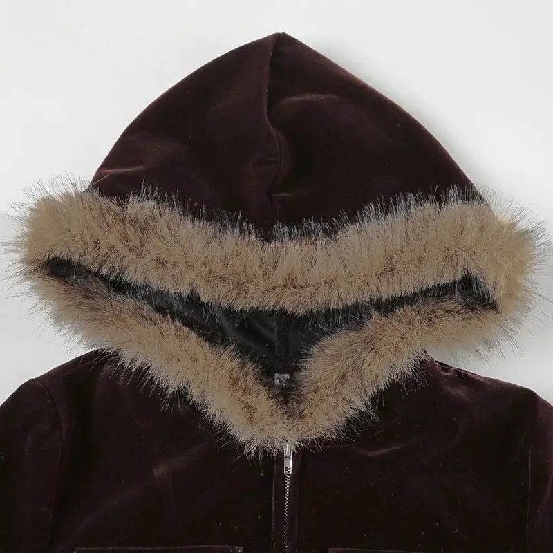 MQTIME - Cropped Trendy Velvet Pocket Cargo Jacket, High-waisted Skinny Hottie Fur Hooded Sweatshirt