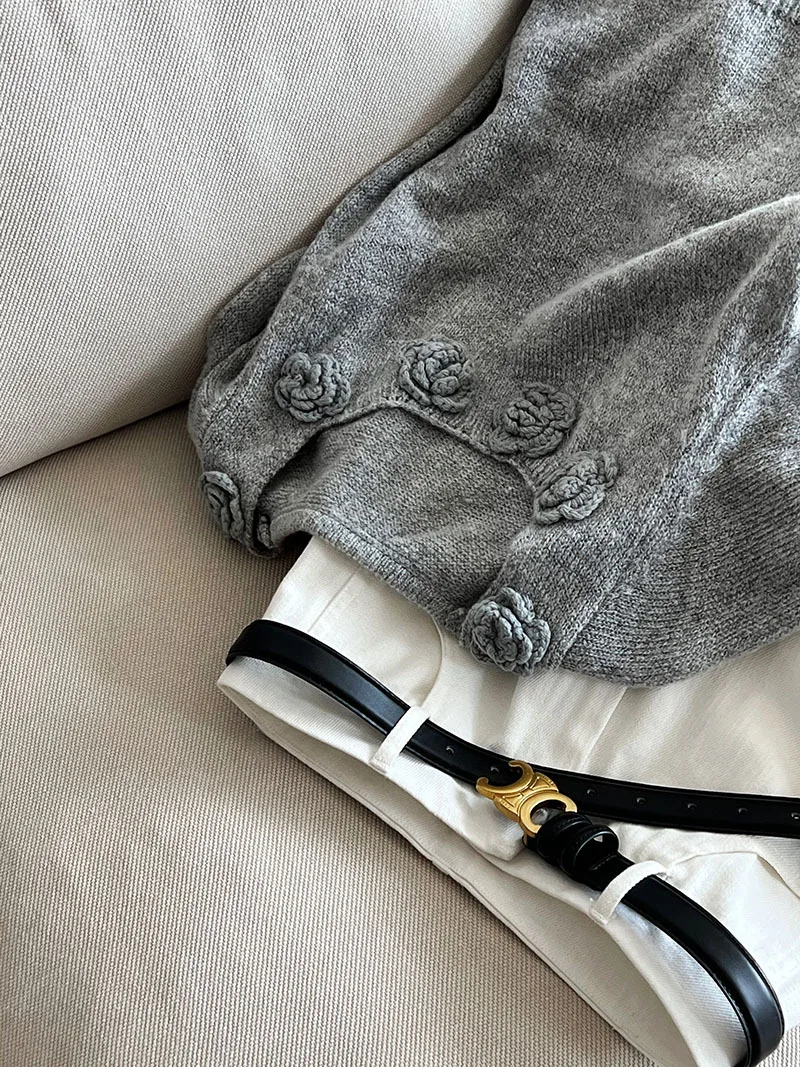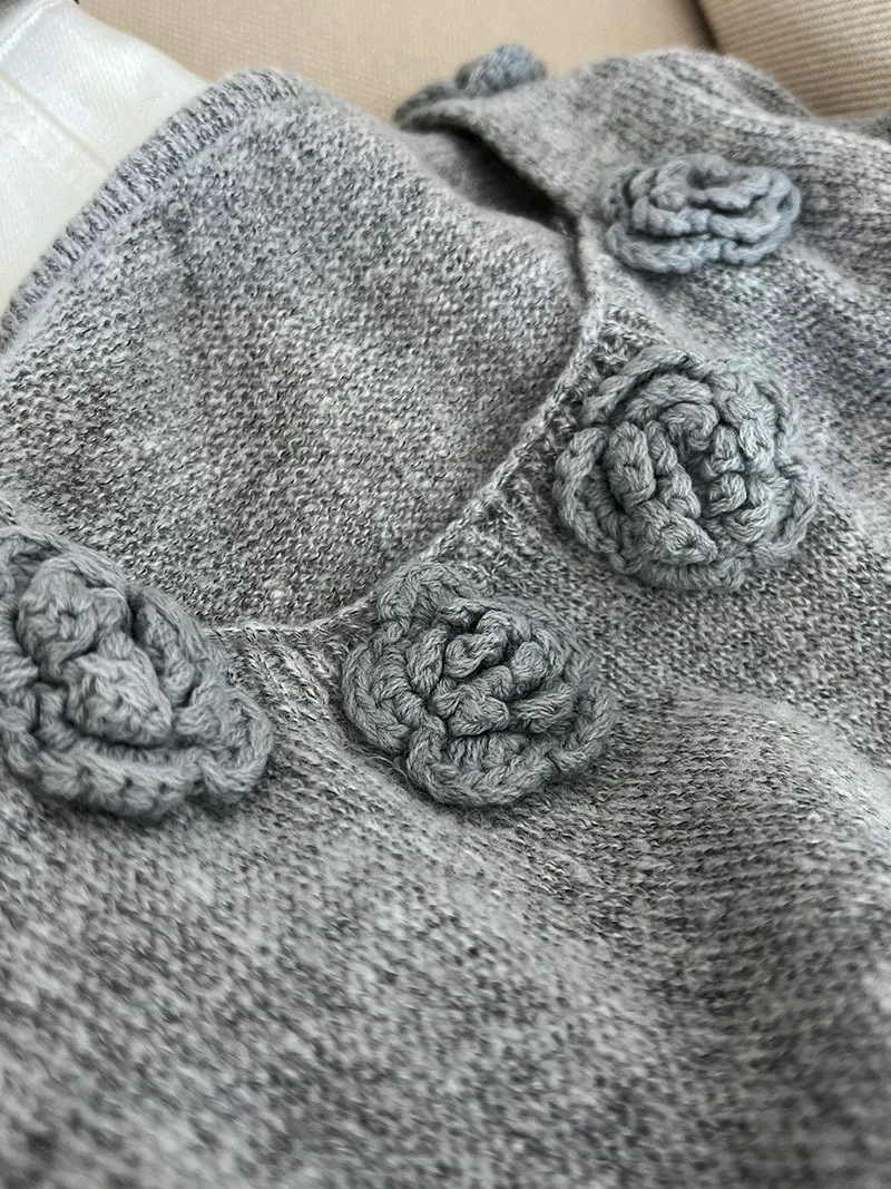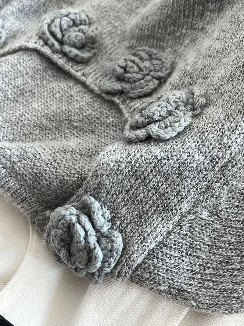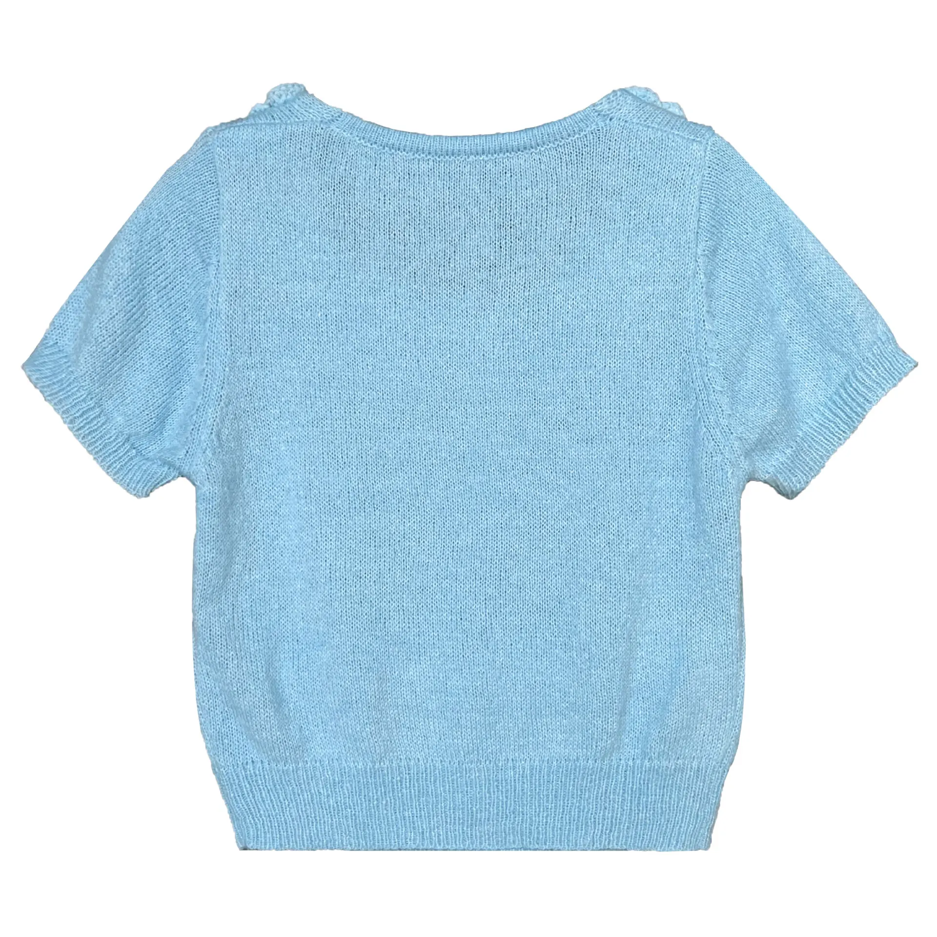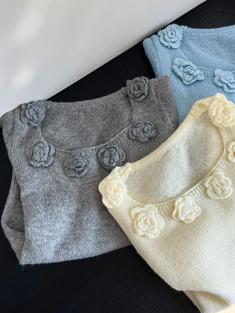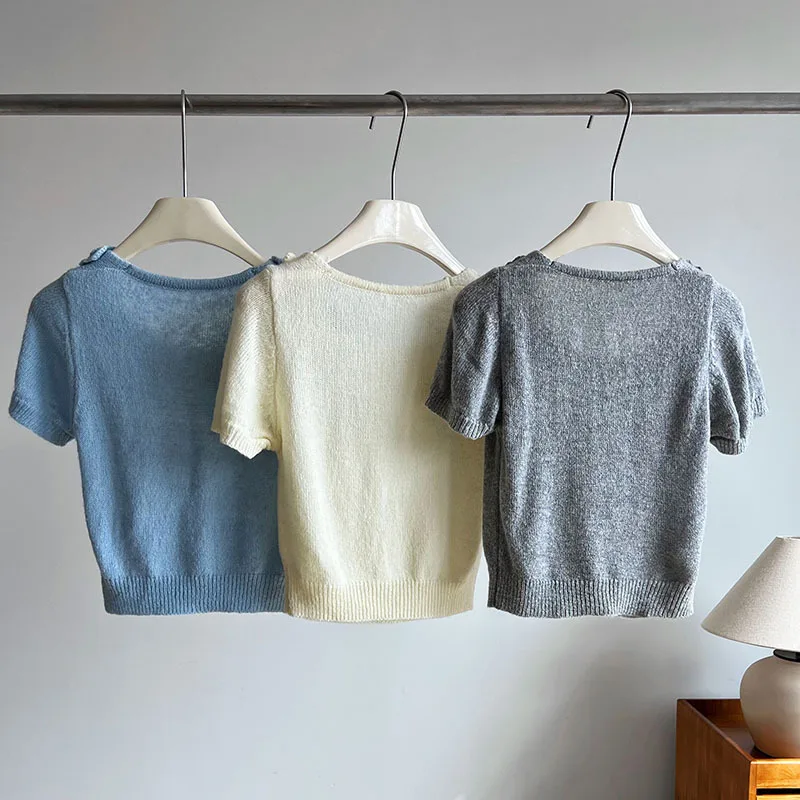 MQTIME - Cute 3d Hook Flower Short Sleeve Sweater Round Neck Knitwear for Women's 2024 Spring/summer
