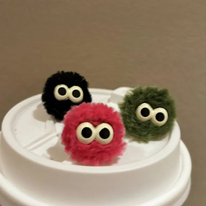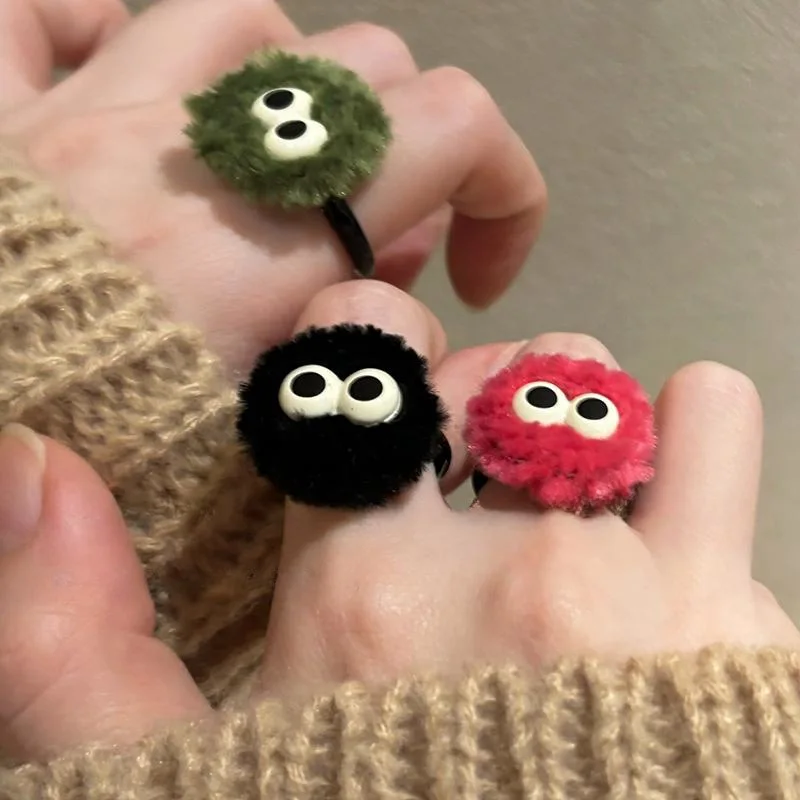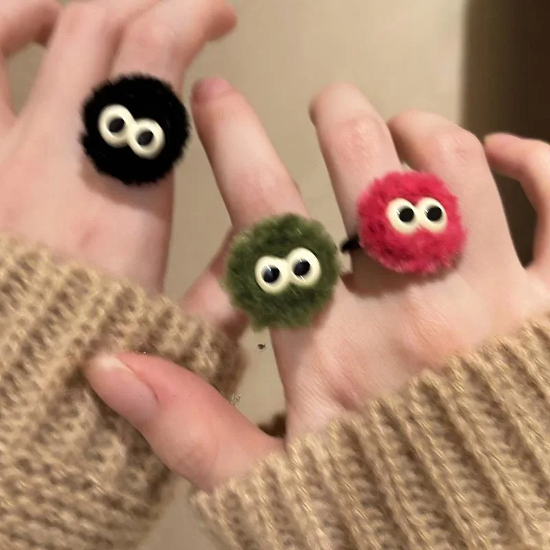 Mqtime Cute Cartoon Eye Plush Ball Ring 2024 Autumn Winter Fashion Design Korean Funny Fluffy Finger Ring Female Jewelry Wholesale