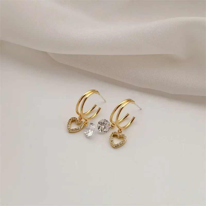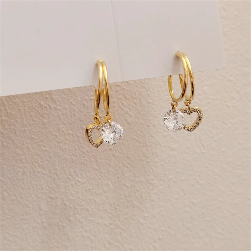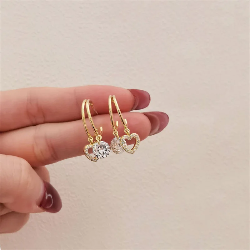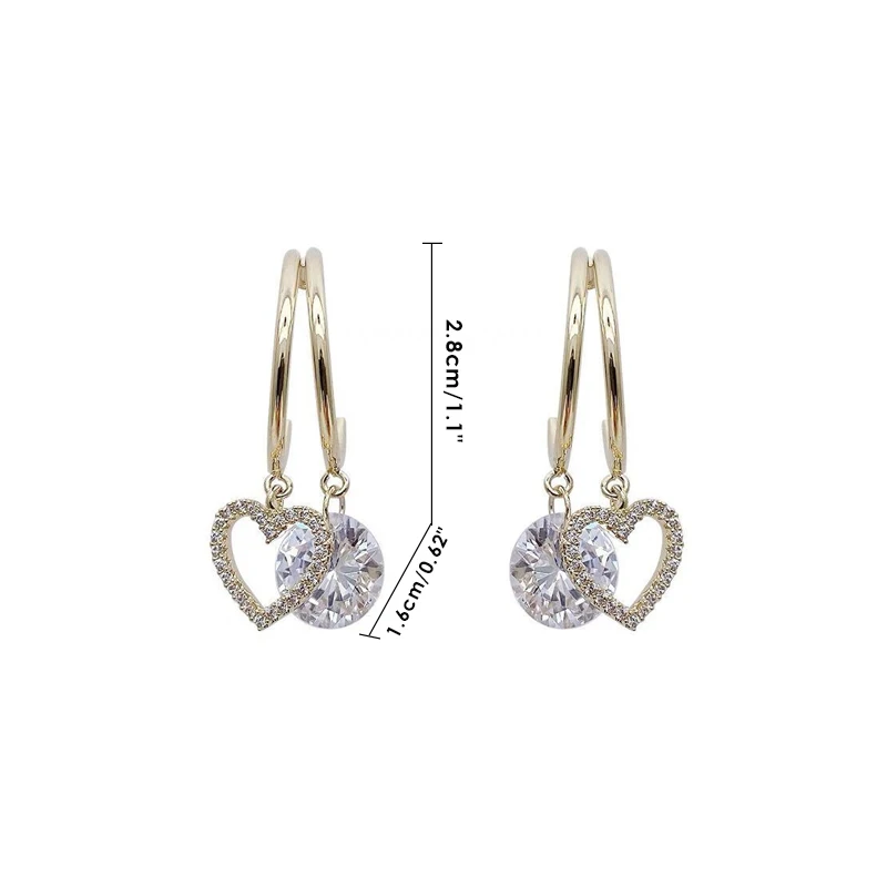 Mqtime Double Side Love Heart Hoop Cubic Zirconia Dangle Earrings Minimalist Gold Plated Huggies Simple Drop Earrings for Women