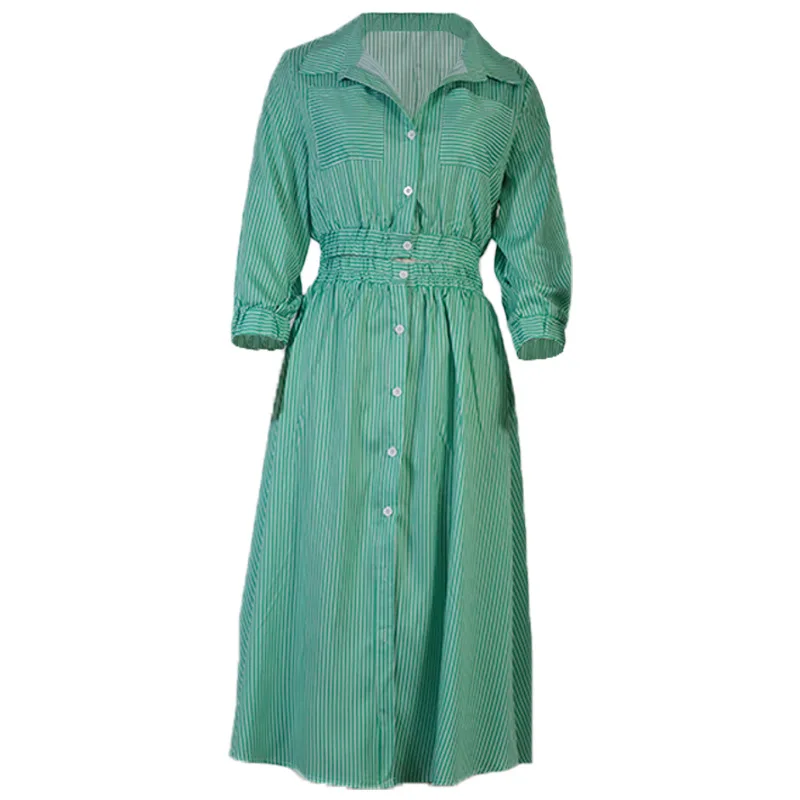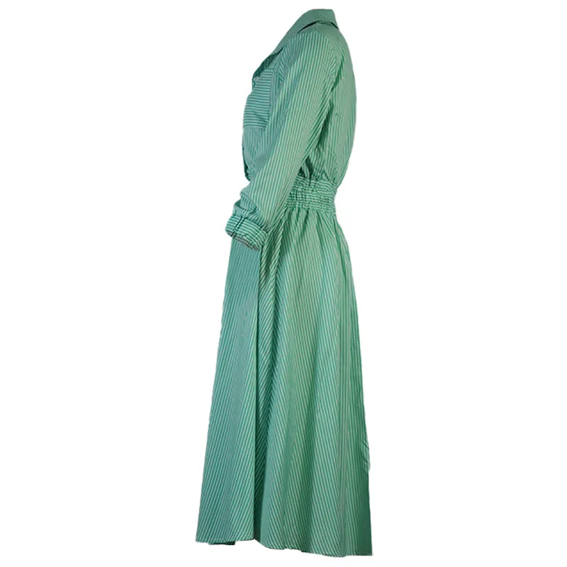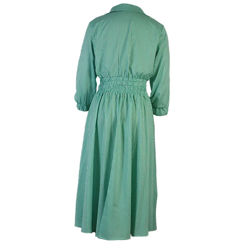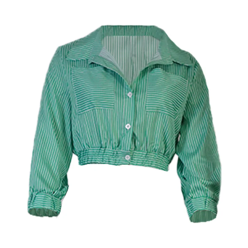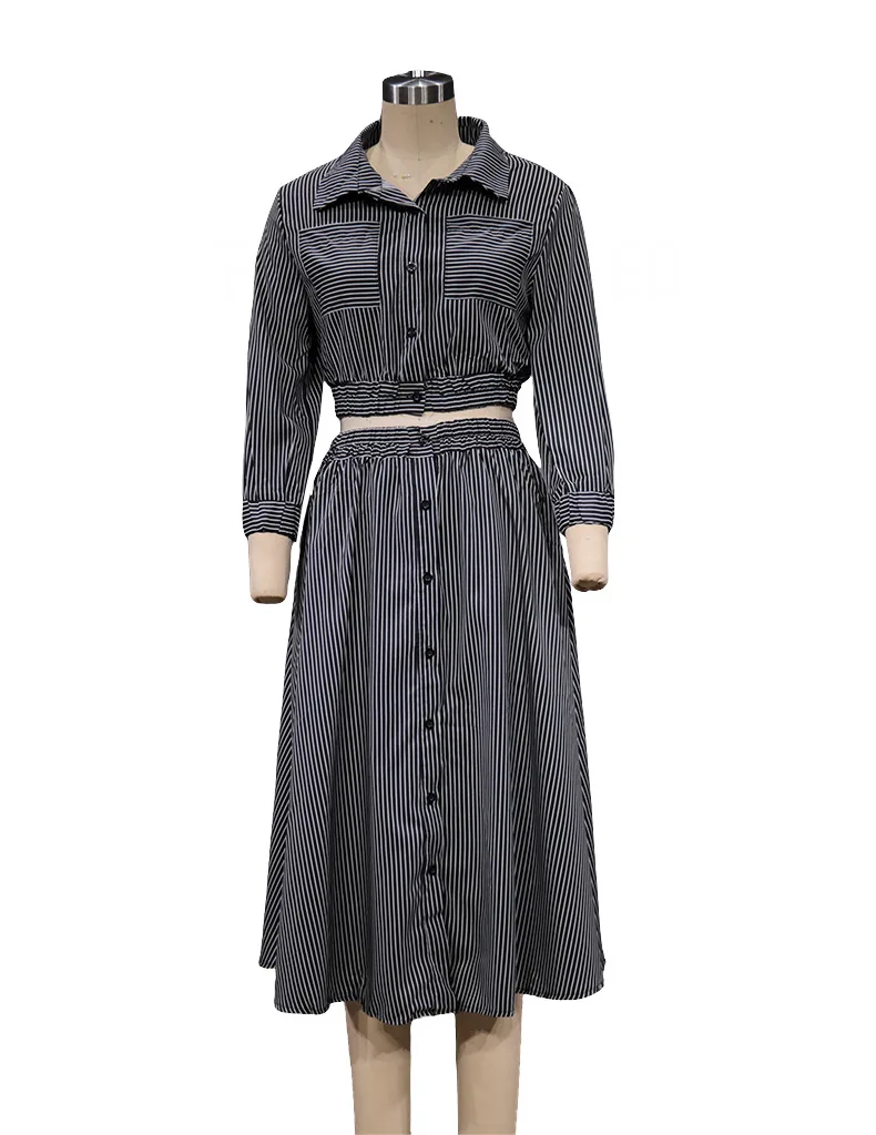 MQTIME - Elegant Blue Stripe Skirt Sets for Women 2 Pieces Fashion Long Sleeve Button Short Shirt and High Waist Pleated Skirts