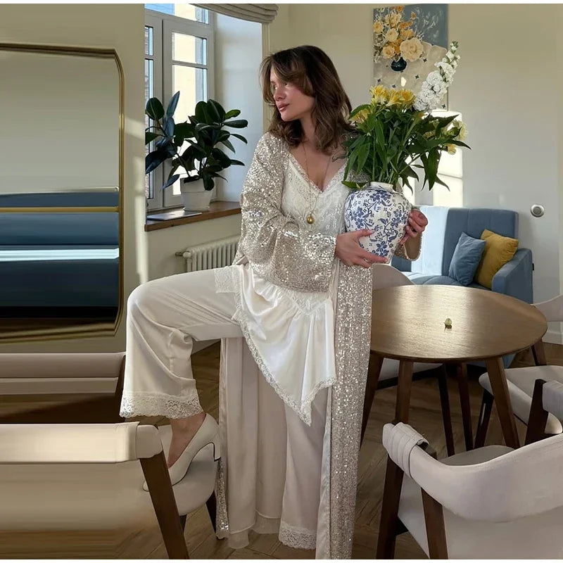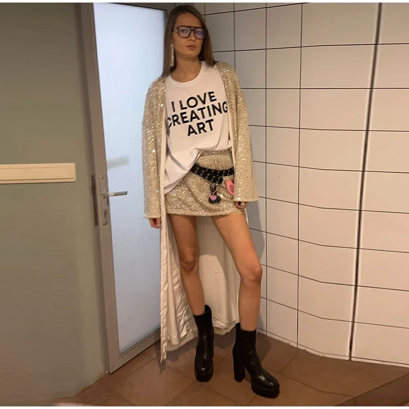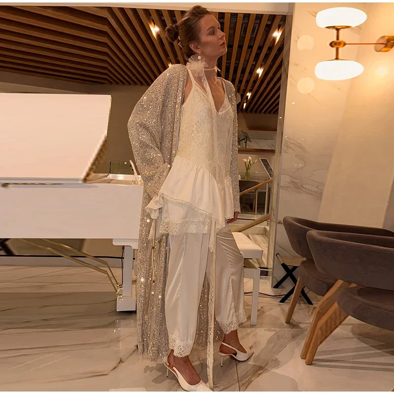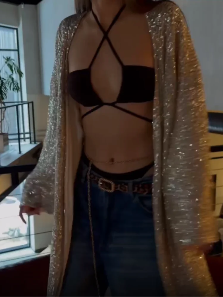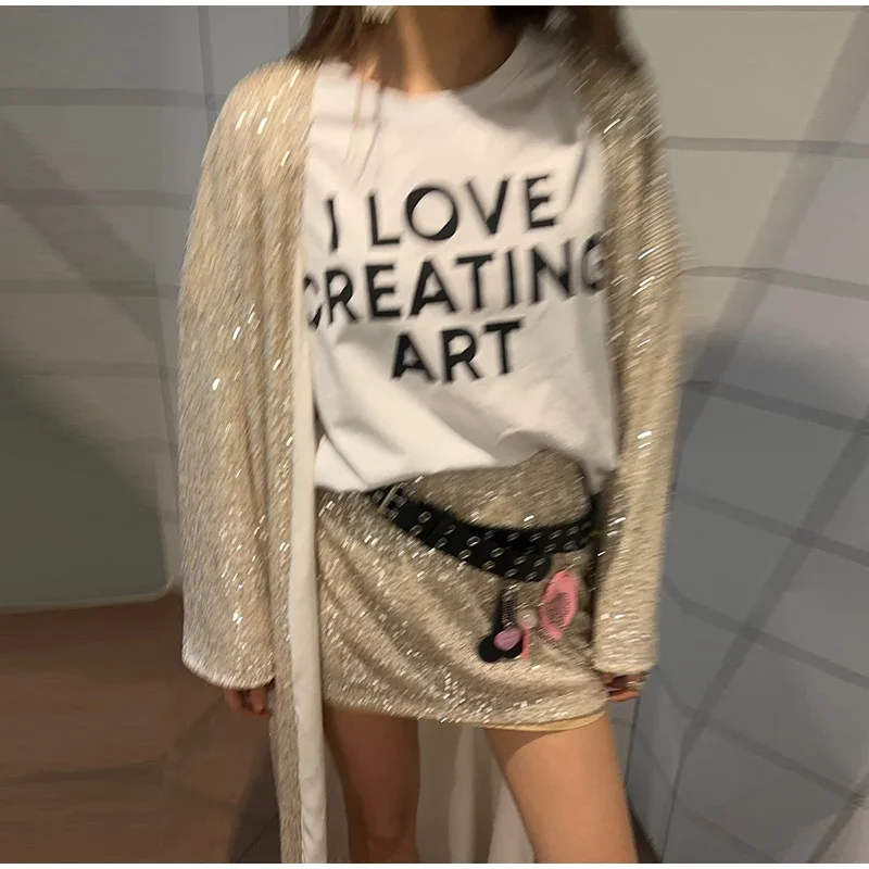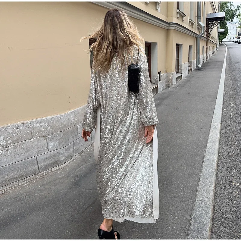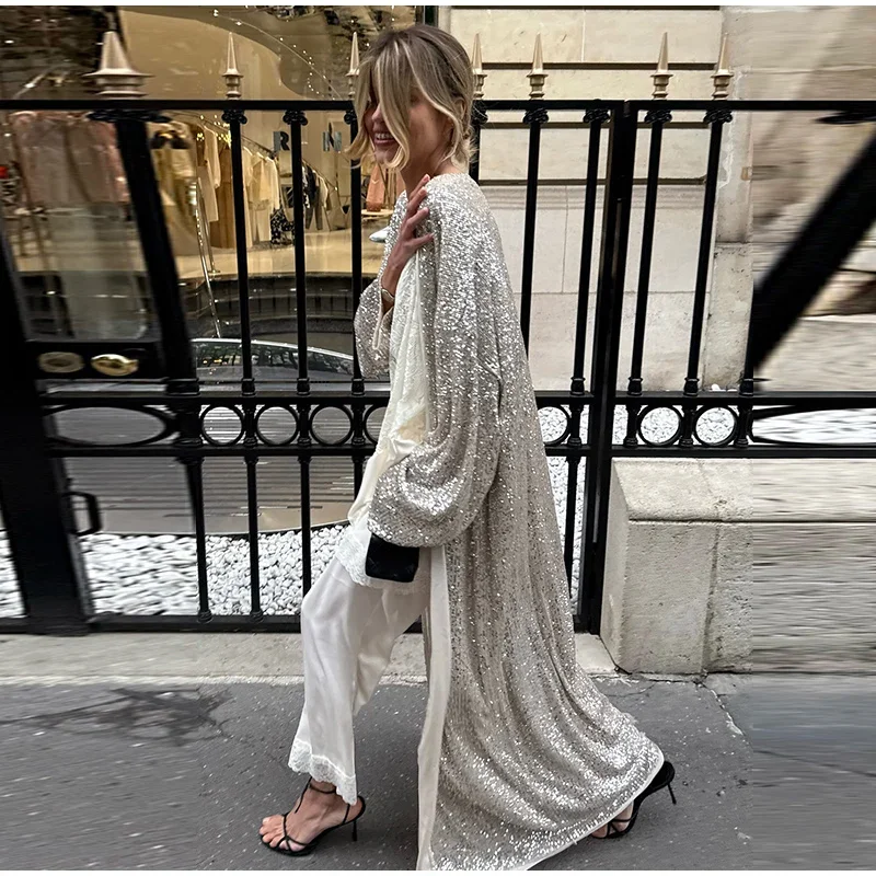 MQTIME - Elegant Sequin Women's Cardigan Chic Full Sleeve Oversize Long Jackets Female 2025 Autumn Fashion New Lady High Street Outwears