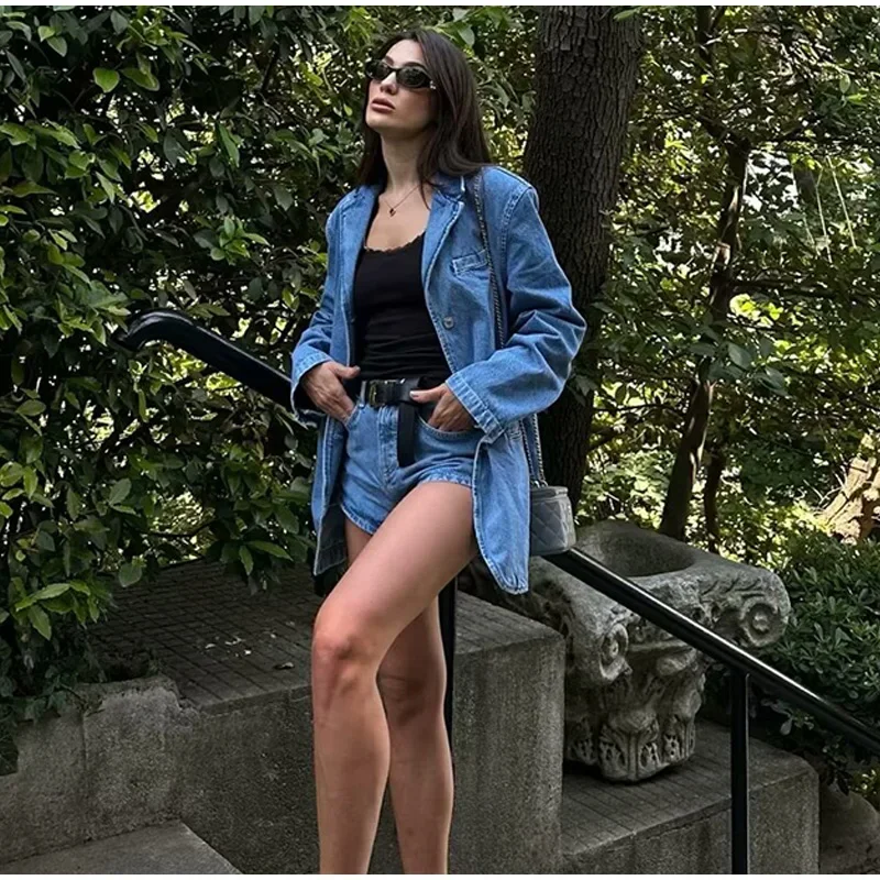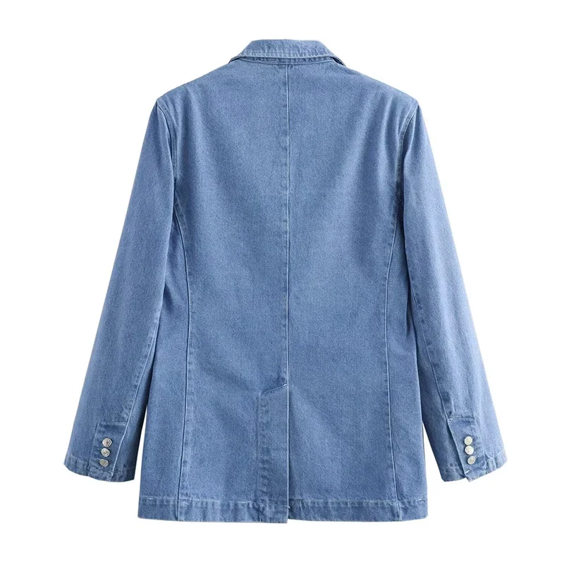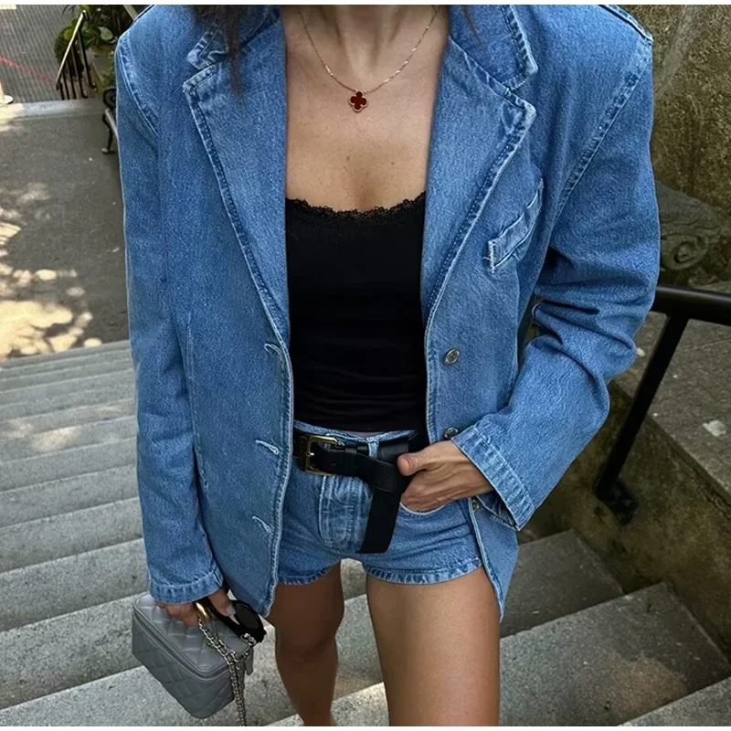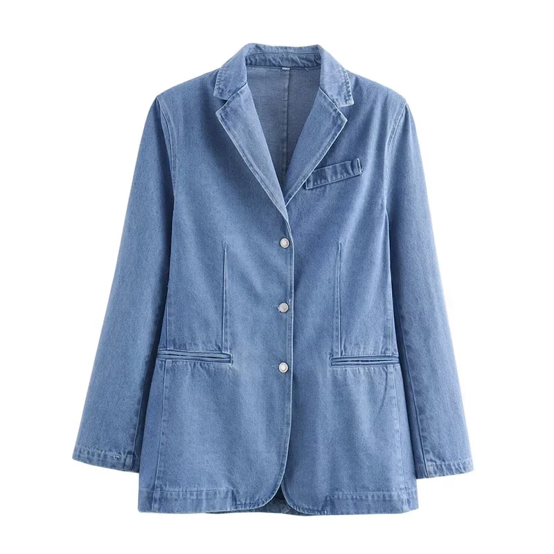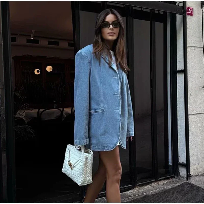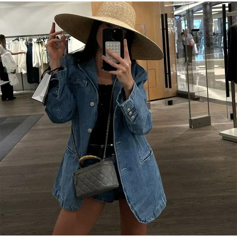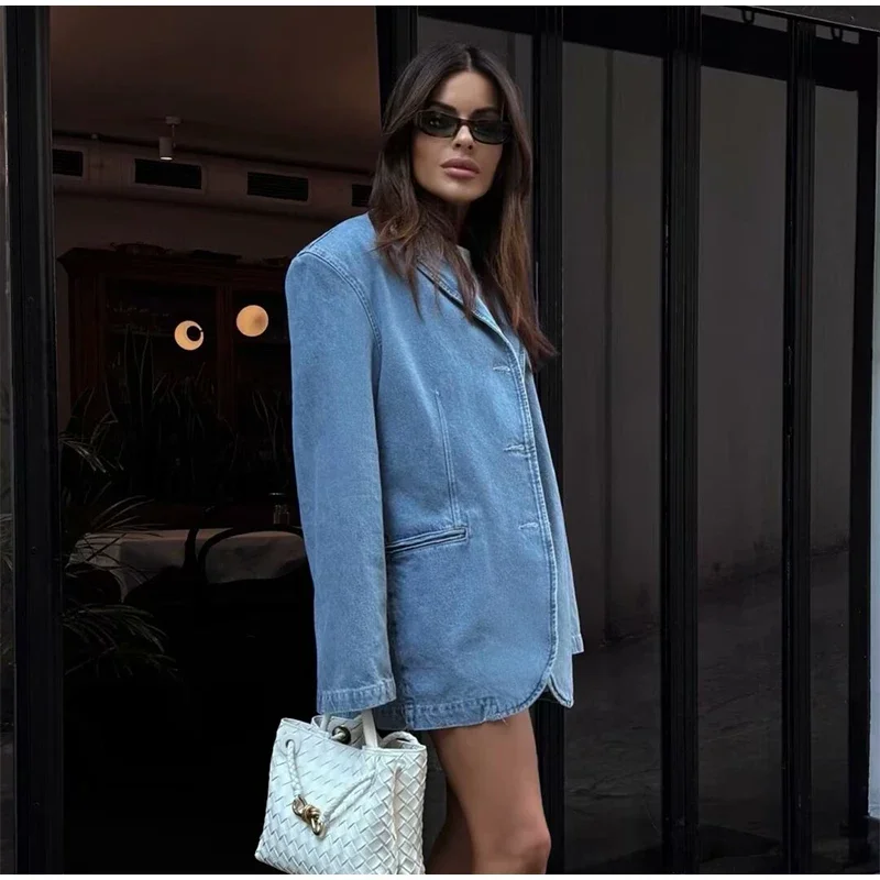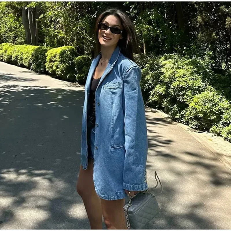 MQTIME - Elegant Solid Women Denim Coat Turn-down Collar Single Breasted Loose Female Jacket 2024 Spring Autumn New Fashion Lady Coats